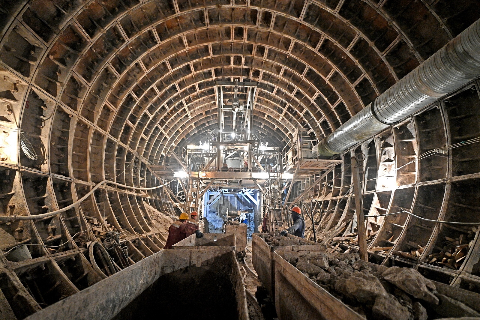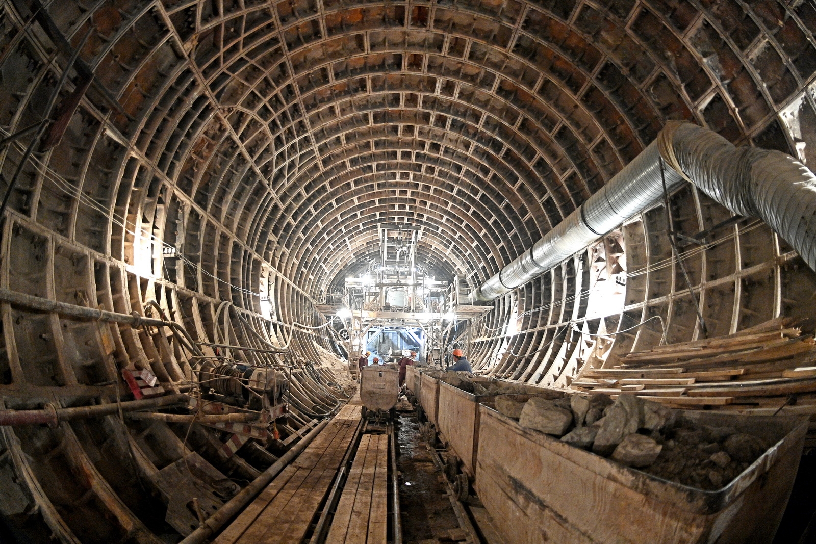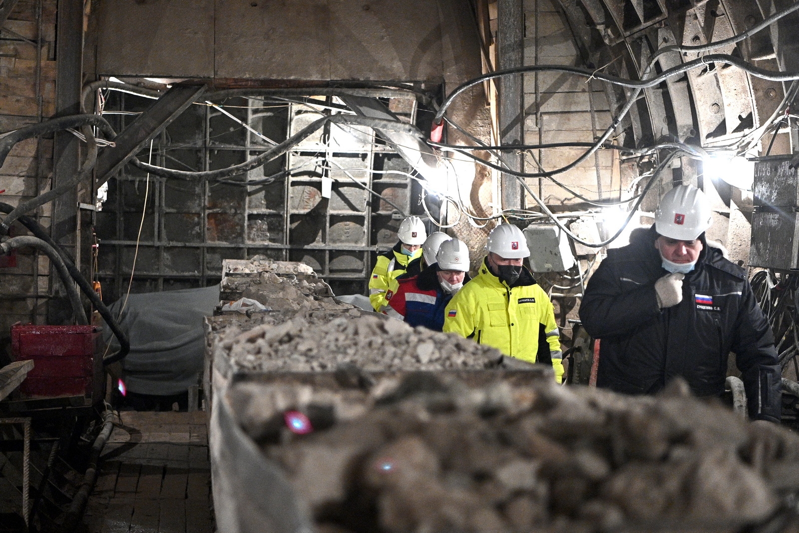 11 мар. 2021 г. Запуск ТПМК от станции БКЛ метро «Нагатинский Затон» до «Кленового бульвара». С. Собянин, А. Бочкарёв