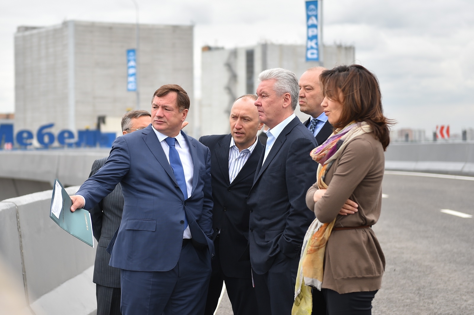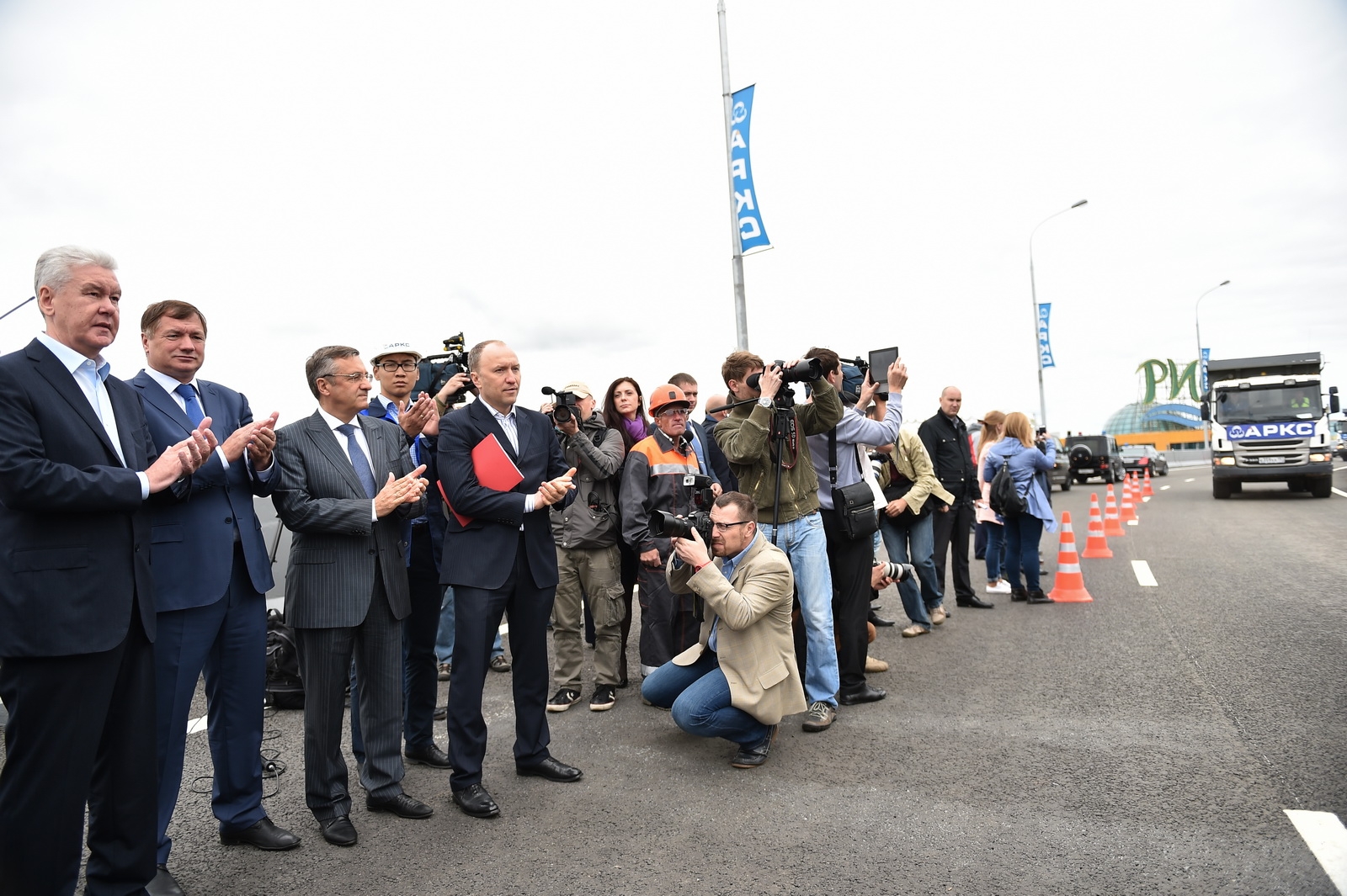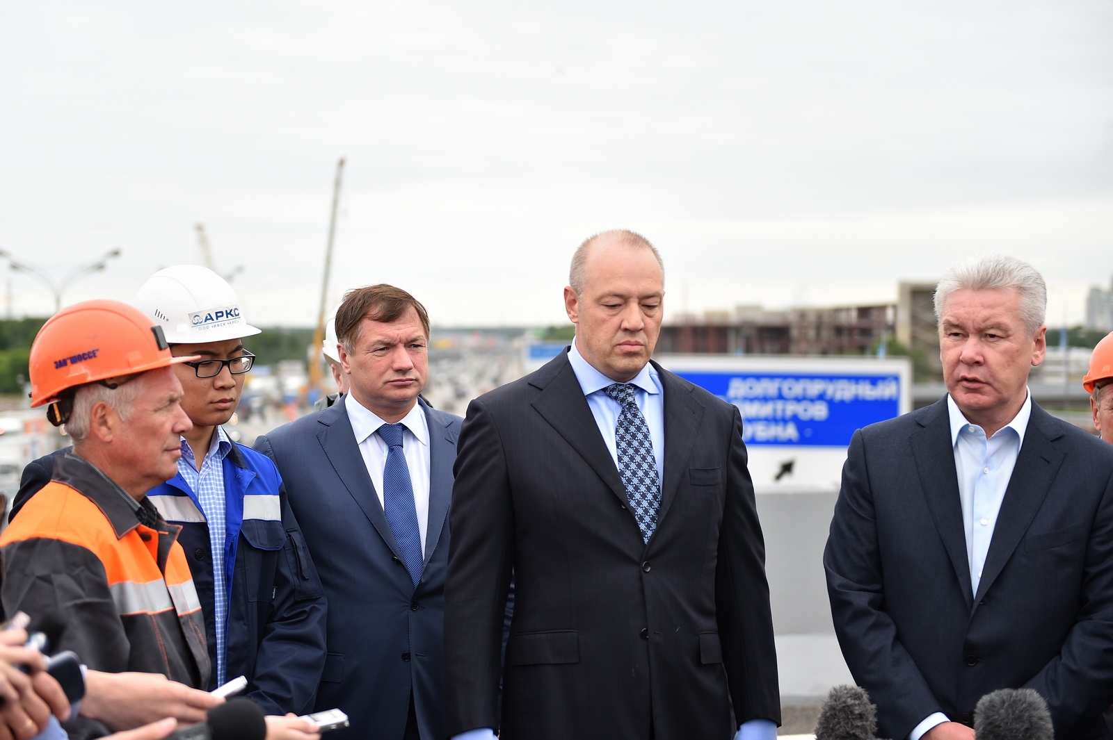 Открытие эстакады на пересечении Дмитровского шоссе и МКАД. С. Собянин, М. Хуснуллин, А. Бочкарев