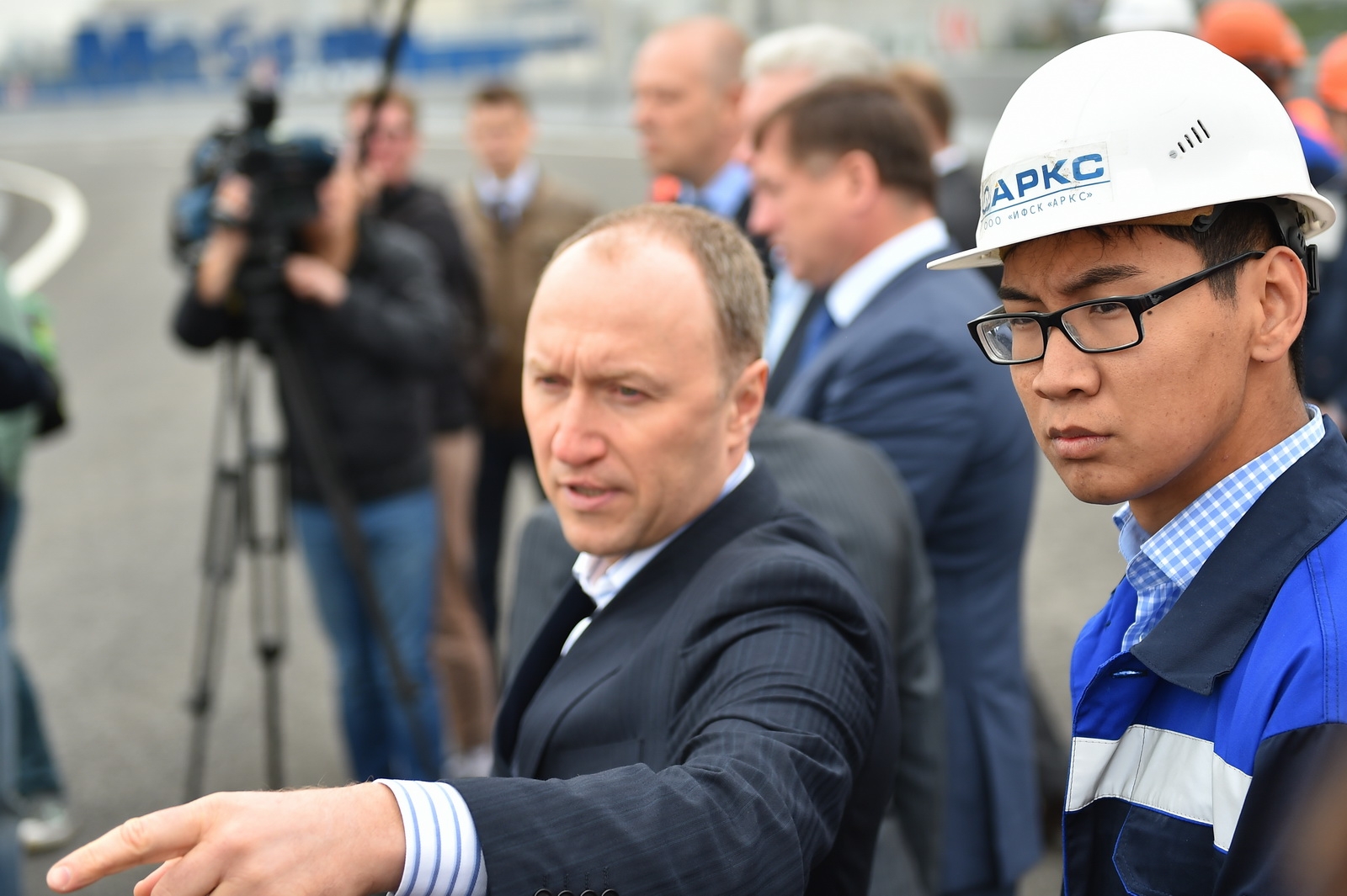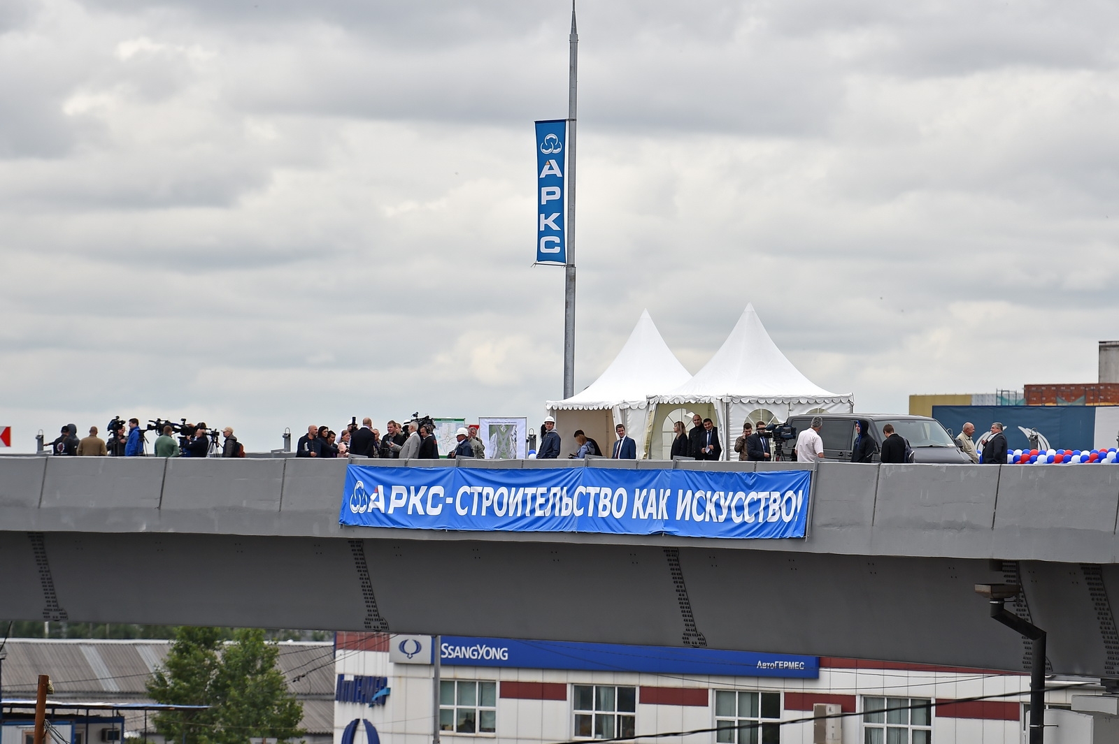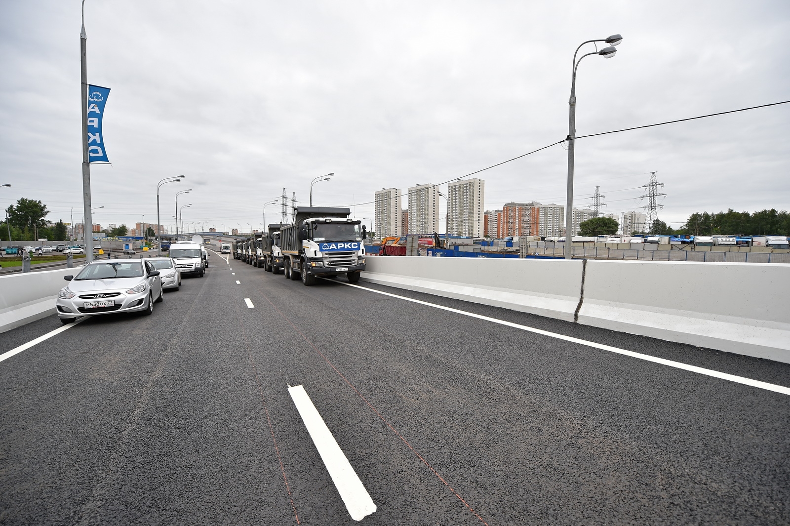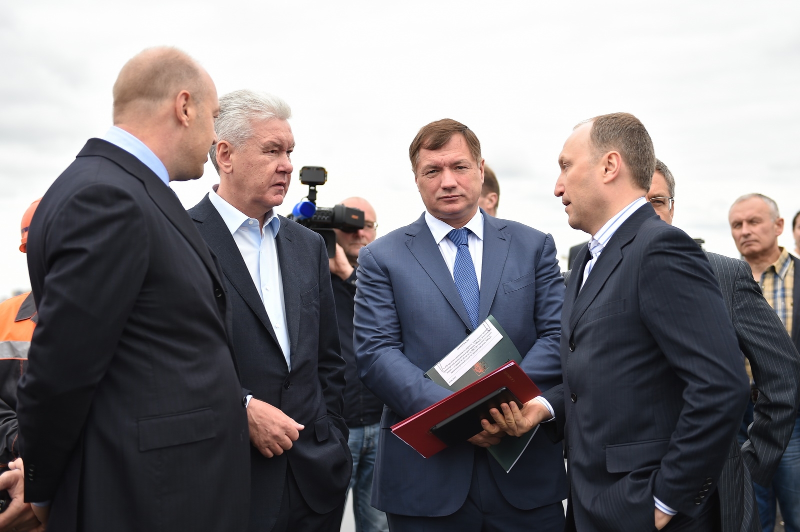Открытие эстакады на пересечении Дмитровского шоссе и МКАД. С. Собянин, М. Хуснуллин, А. Бочкарев