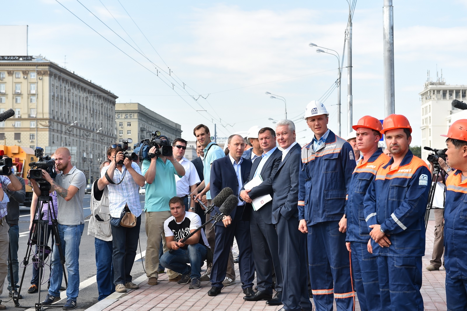18 авг. 2014 г. Открытие транспортной развязки на Варшавском шоссе. С. Собянин, М. Хуснуллин, А. Бочкарев 35 фото