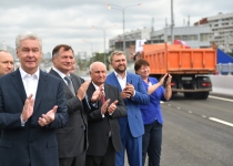 8 авг. 2014 г. Открытие движения по Можайскому путепроводу. С. Собянин, М. Хуснуллин, А. Бочкарев 25 фото