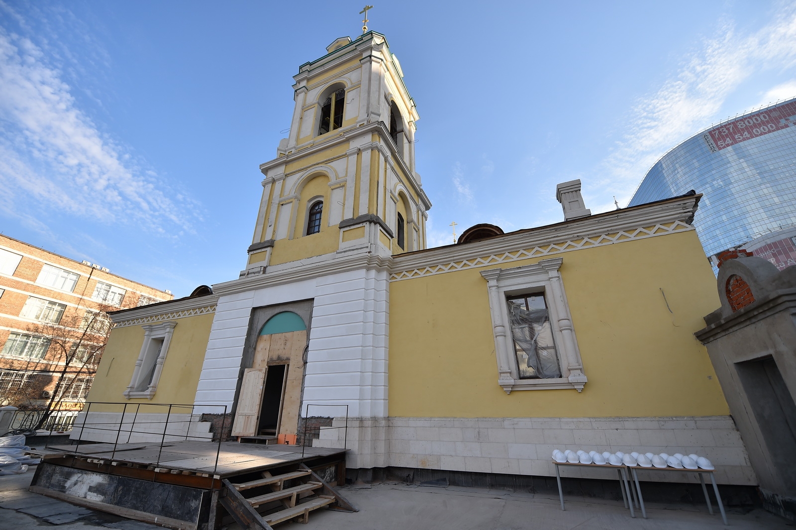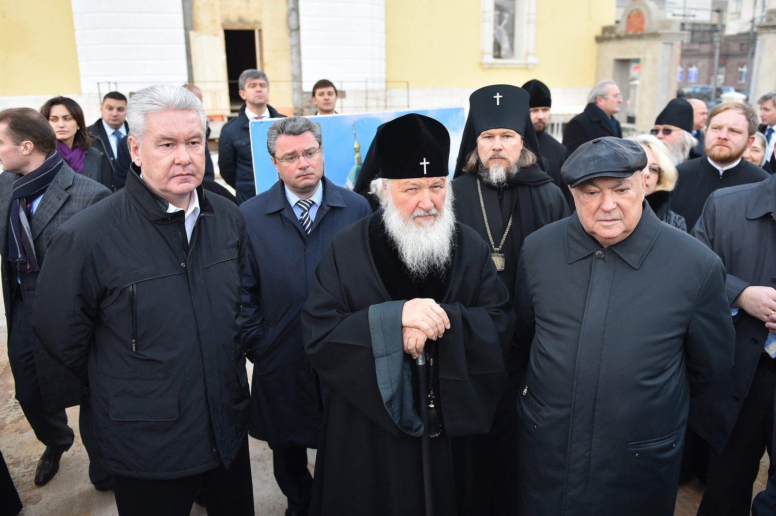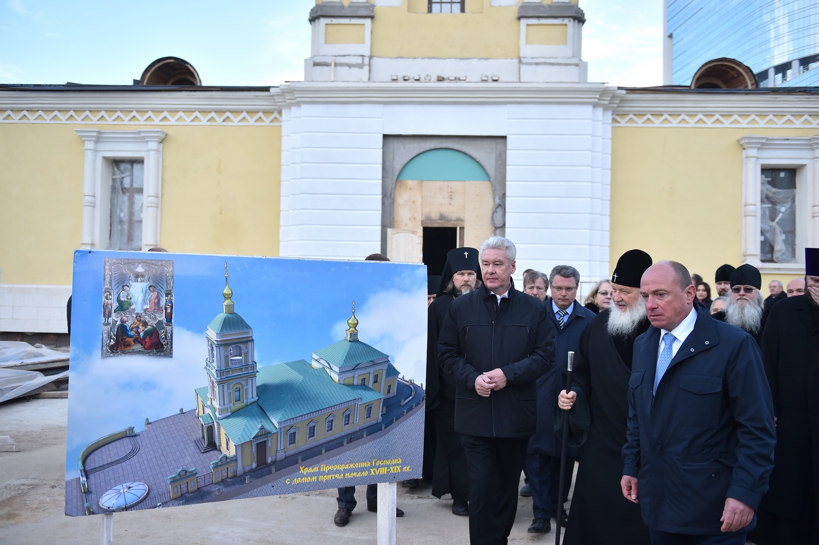 30 окт. 2014 г. Сергей Собянин и патриарх Кирилл проинспектировали ход реконструкции храма Преображения Господня