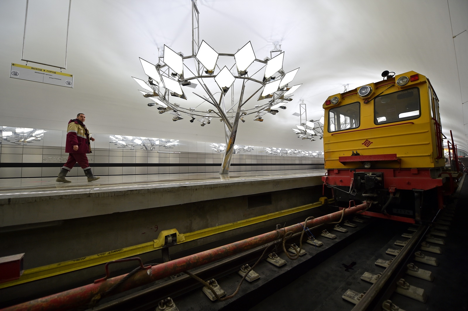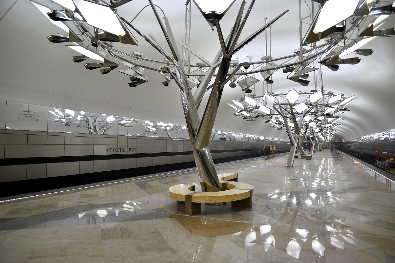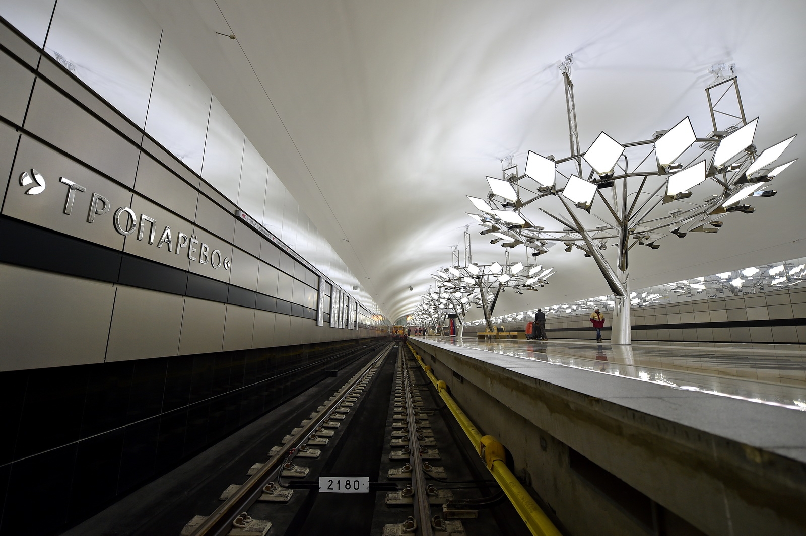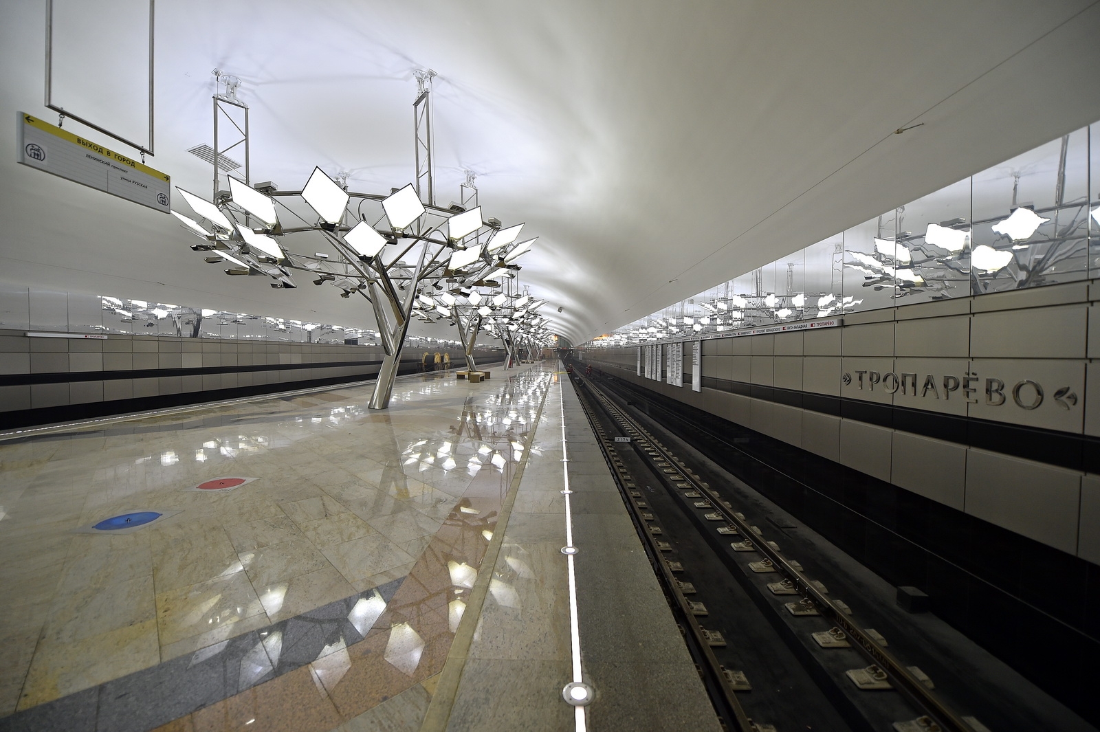 Подготовка к запуску станции метро "Тропарево" Сокольнической линии 24 нояб. 2014 г. 16:16 Теги метро метро «Тропарево» (Сокольническая линия) освещение работы Стройкомплекса Сокольническая линия станции метро строительство фотовыставка «Метро растет!» ЮЗАО Копировать ссылку Скрыть ссылку Другие материалы по теме освоение площадок для строительства объектов метрополитена (вынос инженерных коммуникаций). Сокольническая линия. "Юго-Западная" - "Тропарево" - "Румянцево". 1 этап: станция "Юго-Западная" - "Тропарево". Этап 1.2 Сокольническая линия метро Дорога из города Московский до станции метро «Филатов Луг» Сокольнической линии 8 дек. 2014 г. Фотографии с открытия станции метро «Тропарево» - на портале Стройкомплекса 8 дек. 2014 г. Открытие станции метро «Тропарёво» Сокольнической линии. С. Собянин. Источник: пресс-служба Градостроительного комплекса Москвы 46 фото 8 дек. 2014 г. Сергей Собянин открыл станцию «Тропарёво» на «красной» ветке метро 25 нояб. 2014 г. Станция метро «Тропарево» будет открыта до конца года 18 нояб. 2014 г. Станция метро «Тропарево»