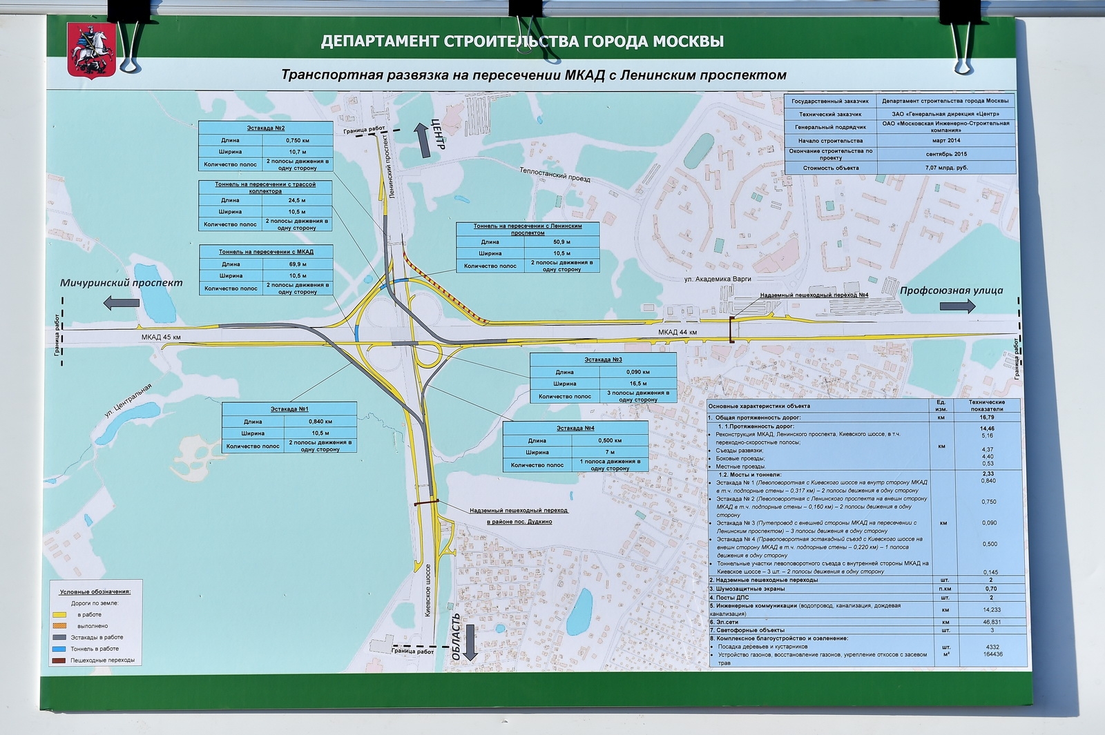 26 февр. 2015 г. Движение по развязке на пересечении Ленинского проспекта и МКАД будет запущено осенью 2015 года - Собянин