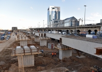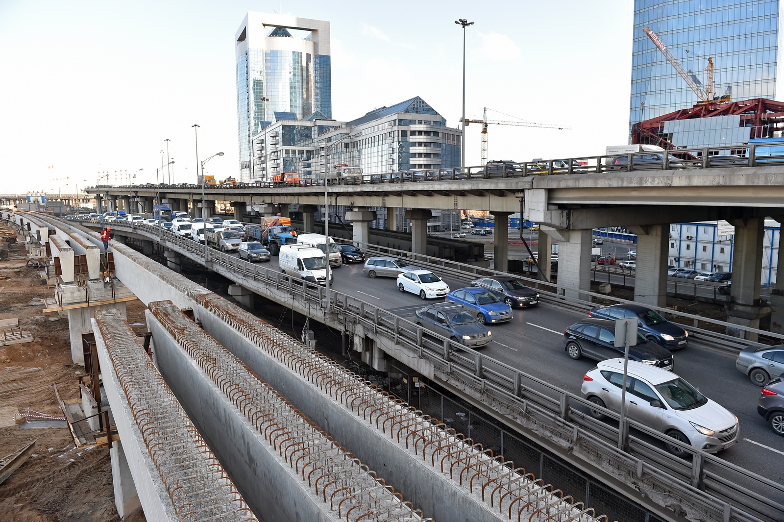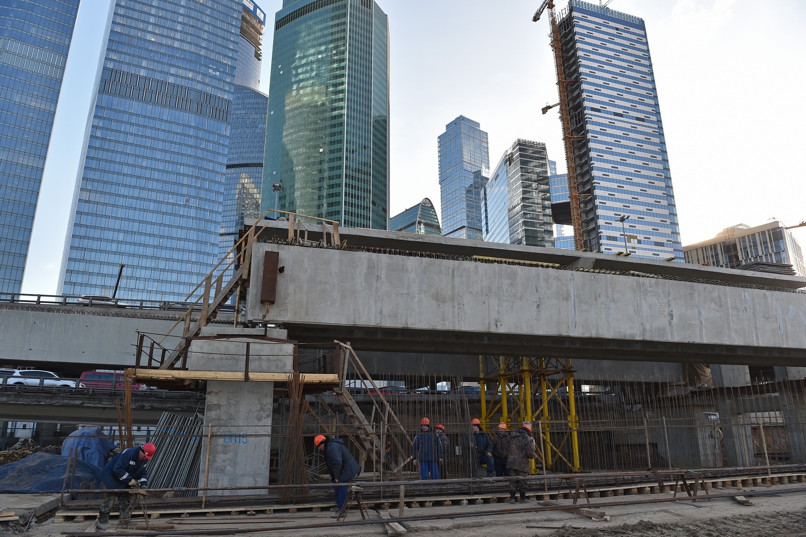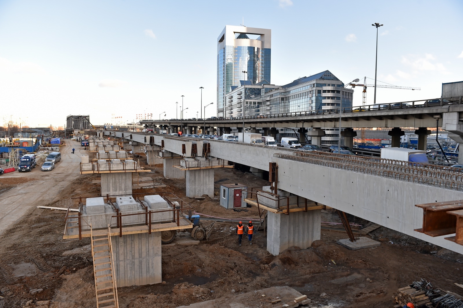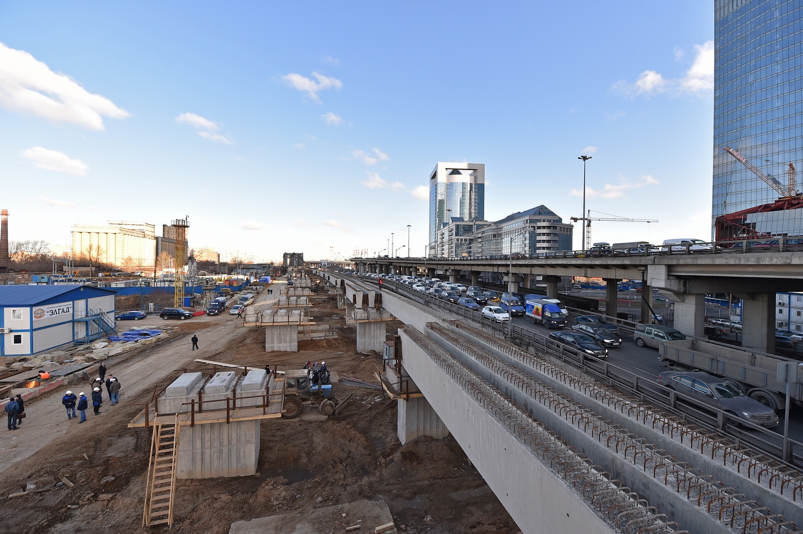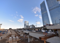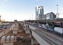 Кольцевая транспортная эстакада с устройством проезда на уровне 129,70 м, 4 пандусами и Юго-Западным въездом с городских магистралей в Центральное ядро (2-й пусковой комплекс в 1-й очереди строительства центрального ядра ММДЦ "Москва-Сити") 6 этап
