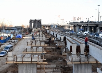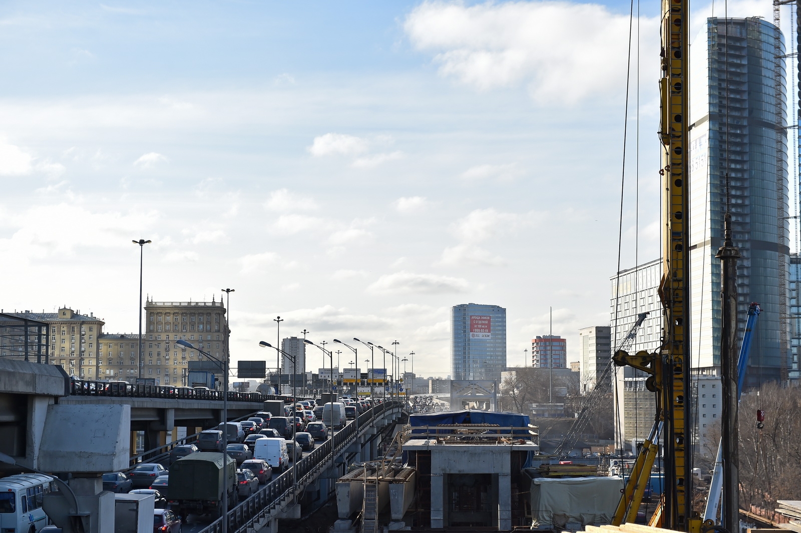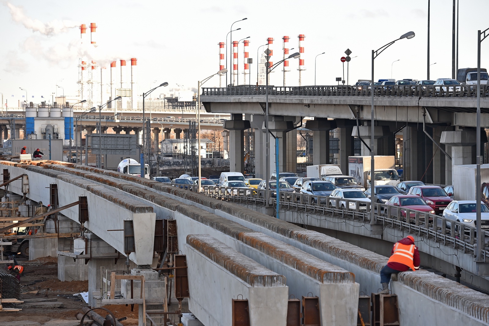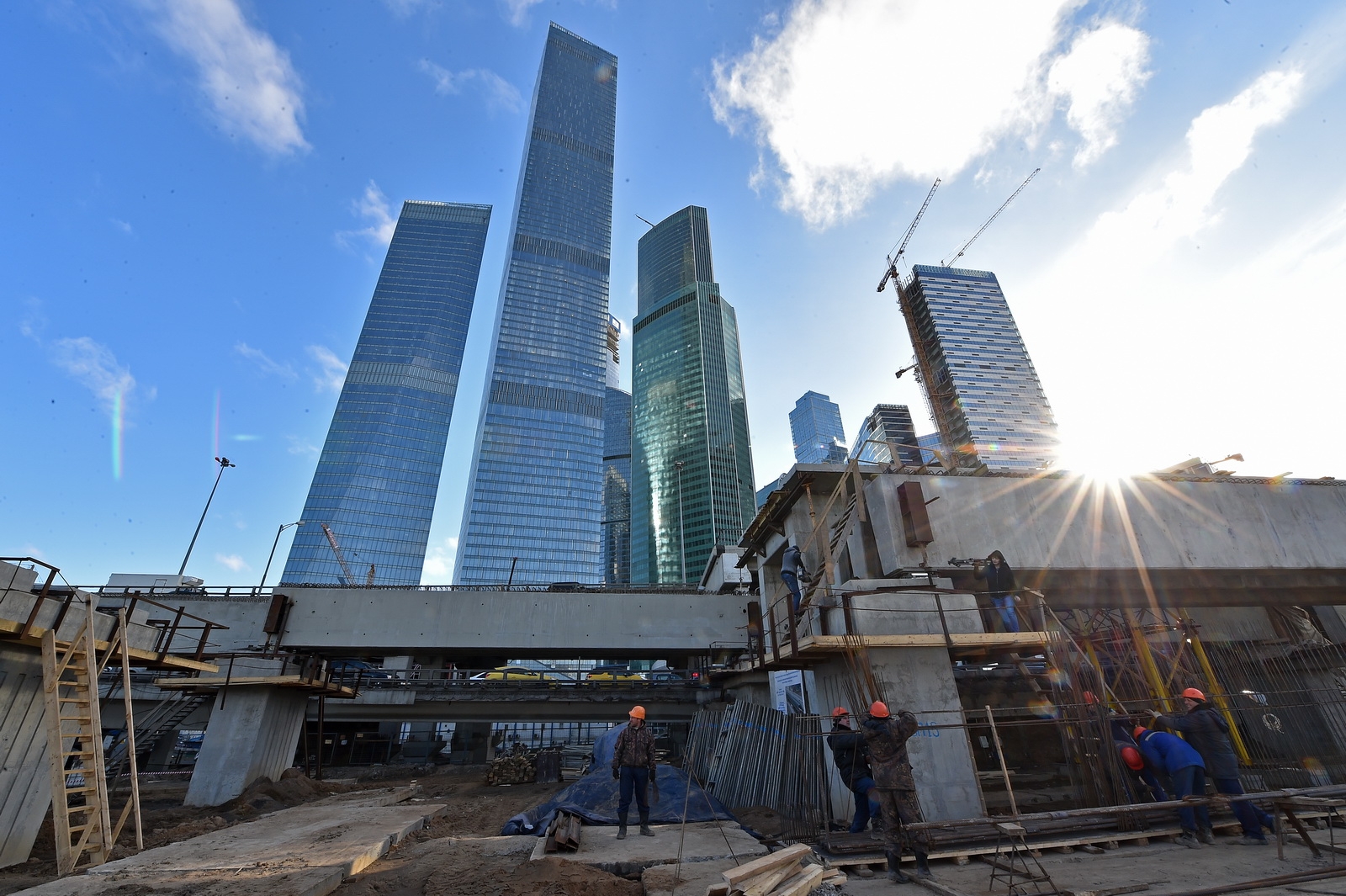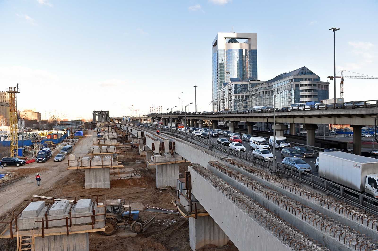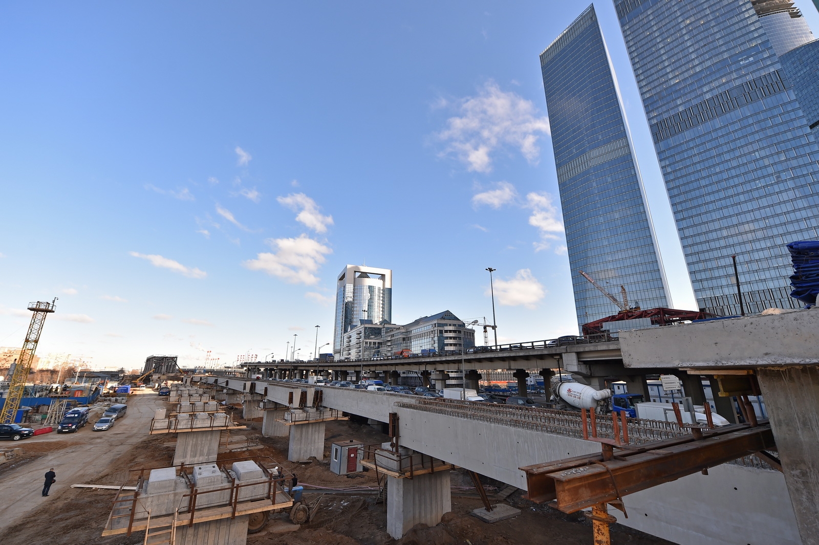 Кольцевая транспортная эстакада с устройством проезда на уровне 129,70 м, 4 пандусами и Юго-Западным въездом с городских магистралей в Центральное ядро (2-й пусковой комплекс в 1-й очереди строительства центрального ядра ММДЦ "Москва-Сити") 6 этап