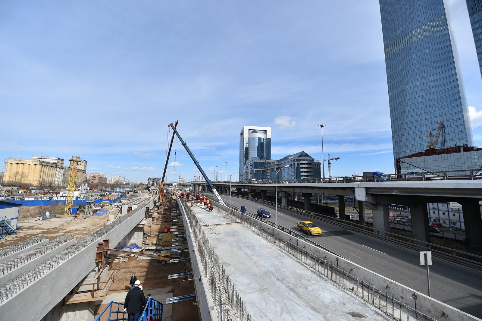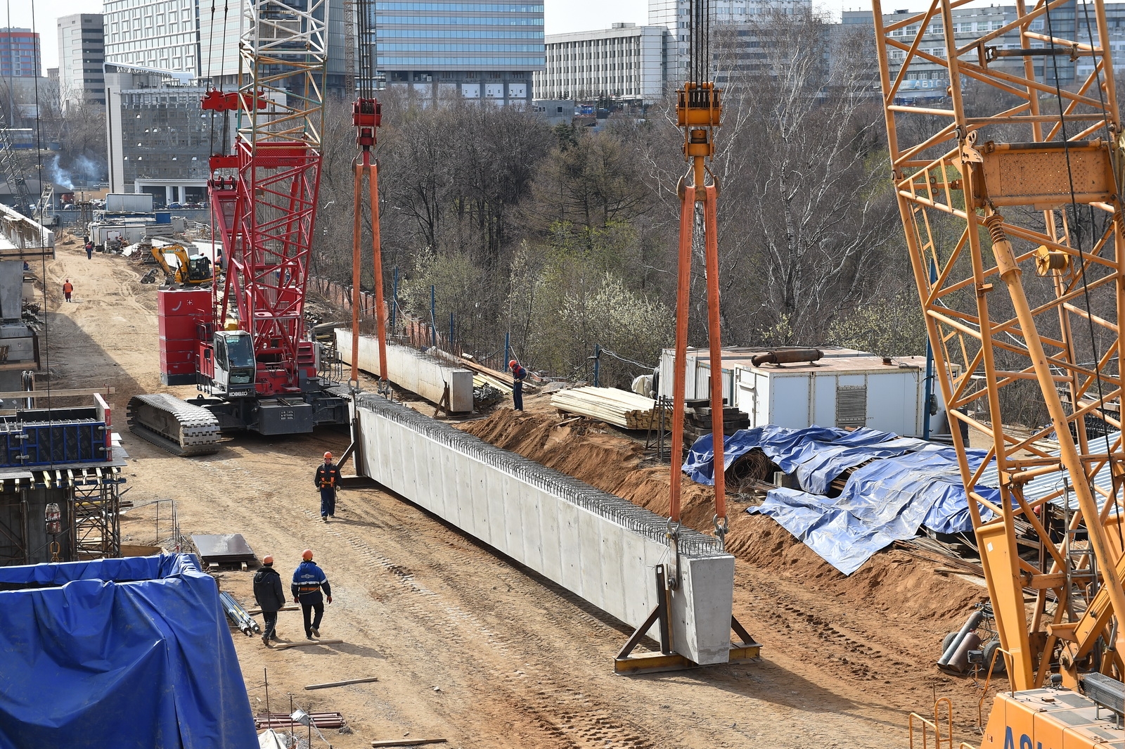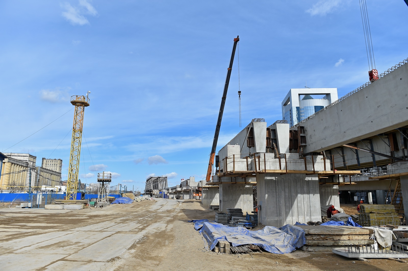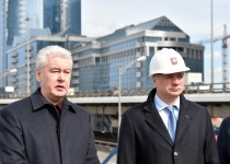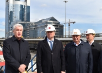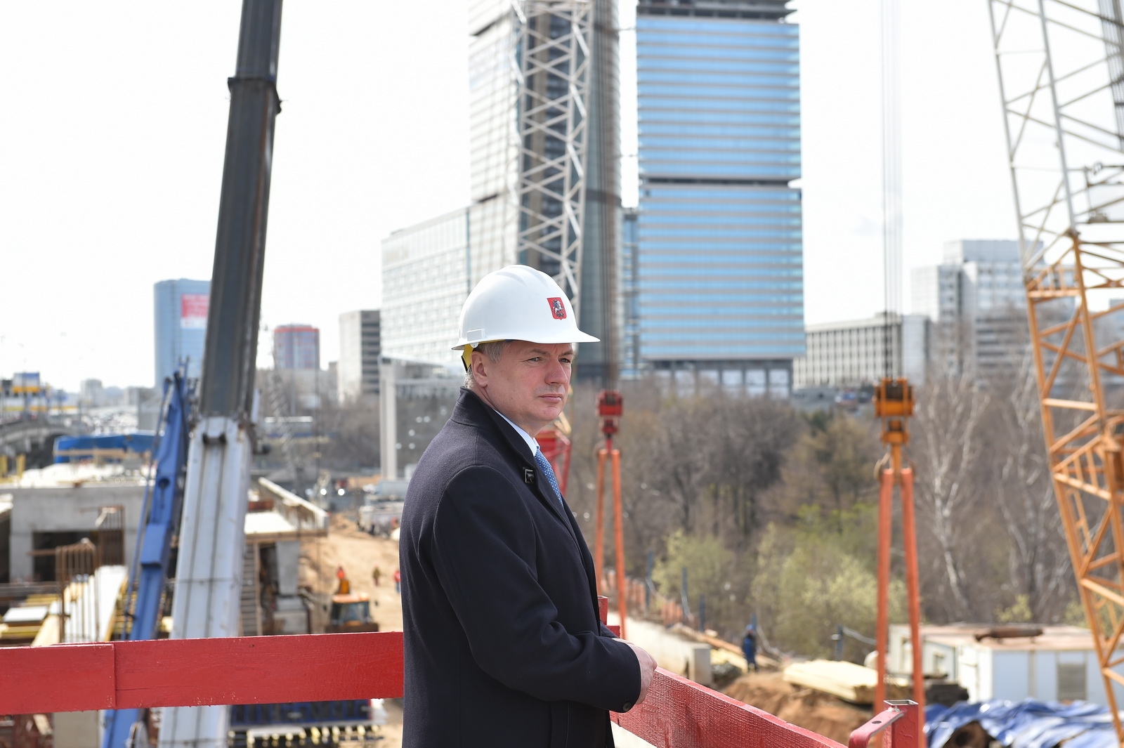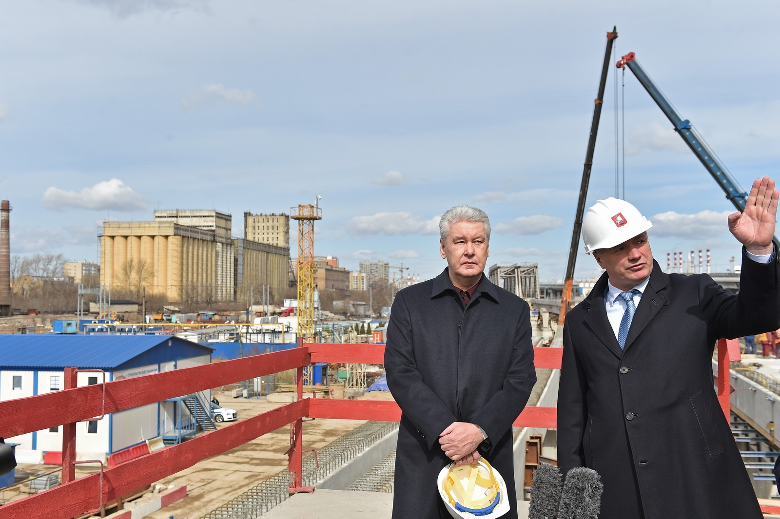 13 апр. 2015 г. Осмотр хода строительства железнодорожной эстакады над Смоленским направлением Московской железной дороги. С. Собянин, М. Хуснуллин