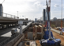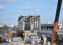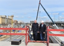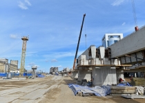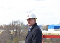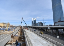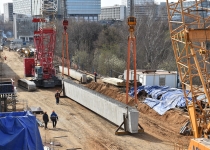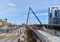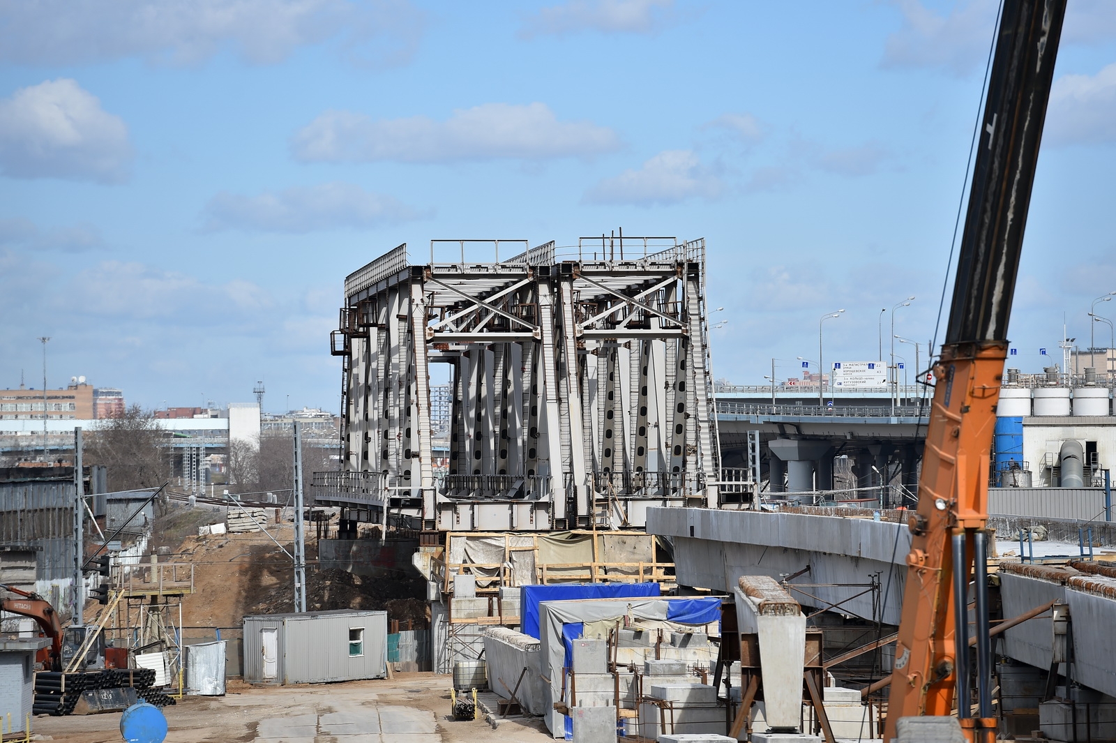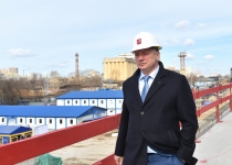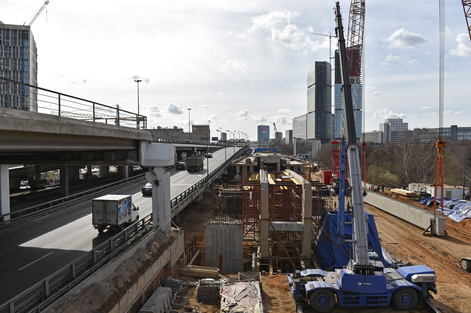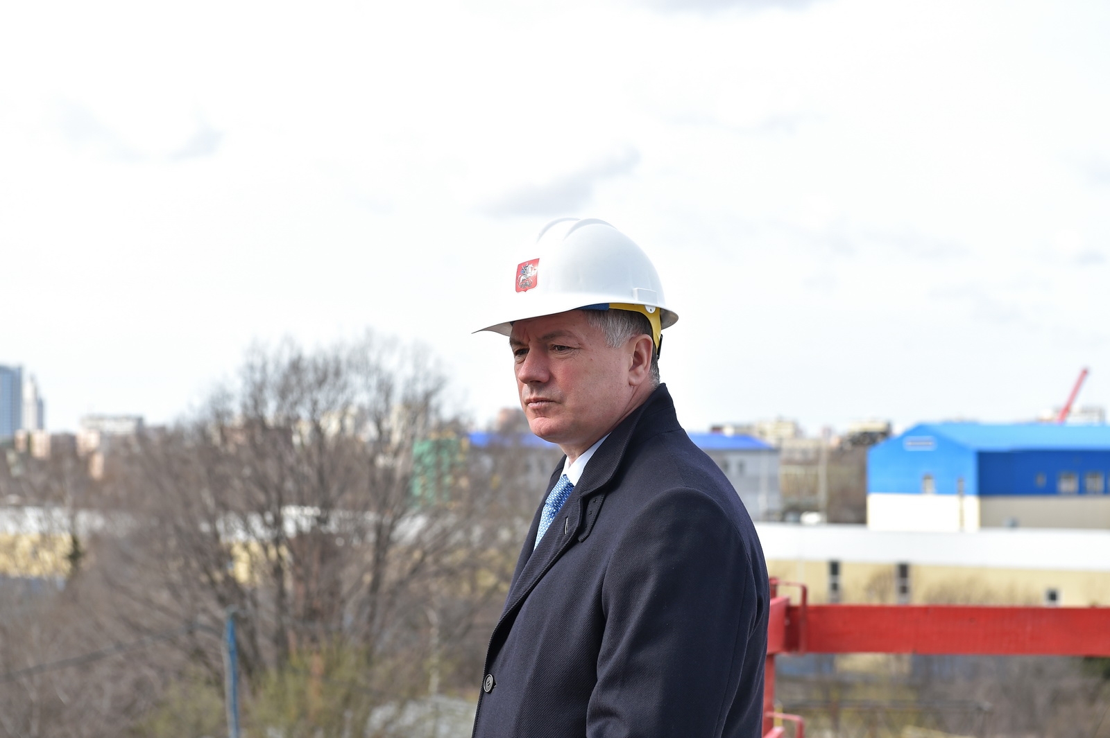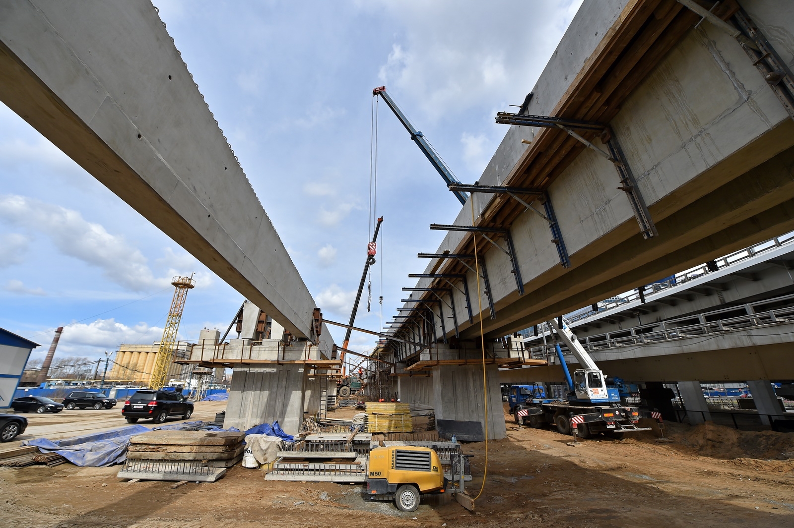 13 апр. 2015 г. Осмотр хода строительства железнодорожной эстакады над Смоленским направлением Московской железной дороги. С. Собянин, М. Хуснуллин