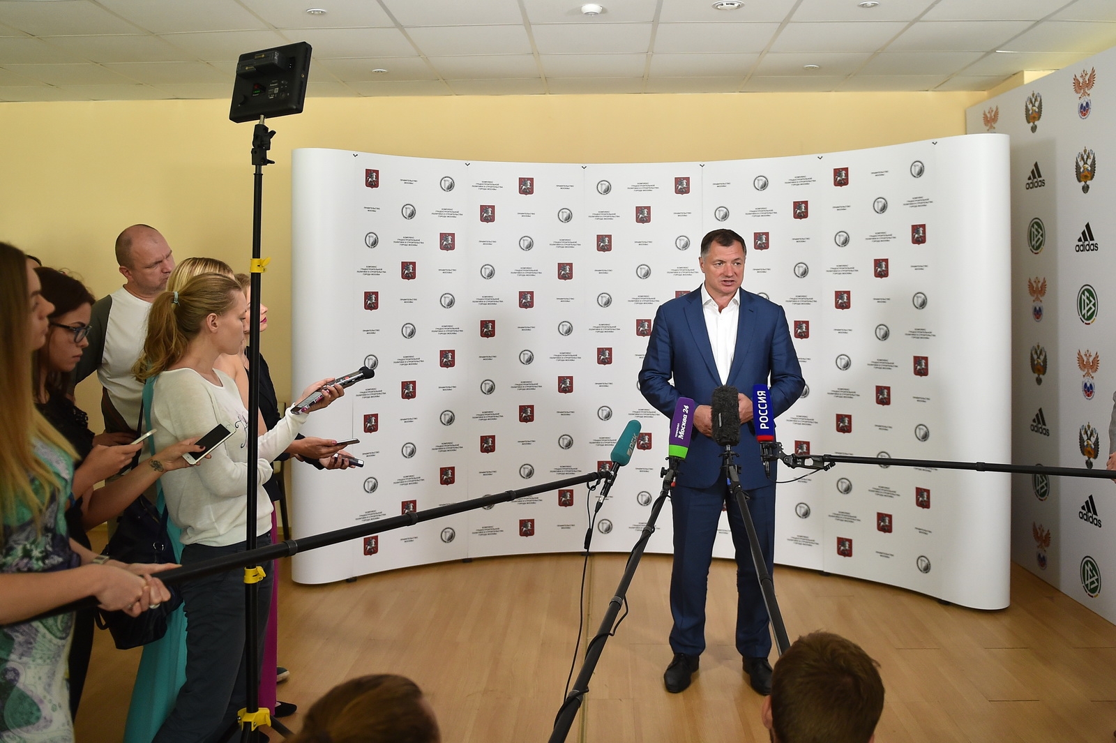 Коллегия Стройкомплекса Москвы и вручение наград сотрудникам пресс-служб. М. Хуснуллин 8 авг. 2015 г. 22:52 Теги коллегия Стройкомплекса Константин Тимофеев Марат Хуснуллин Москва Копировать ссылку Скрыть ссылку Другие материалы по теме Пресс-служба Пресс-служба Пресс-служба Пресс-служба Пресс-служба Пресс-служба 8 авг. 2015 г. Вручение наград победителям конкурса "Лучший реализованный проект в области инвестиций и строительства". С. Собянин, М. Хуснуллин. 45 фото 8 авг. 2015 г. Экскурсия для жителей Москвы на стадион "Лужники". М. Хуснуллин. Источник: пресс-служба Градостроительного комплекса Москвы 36 фото