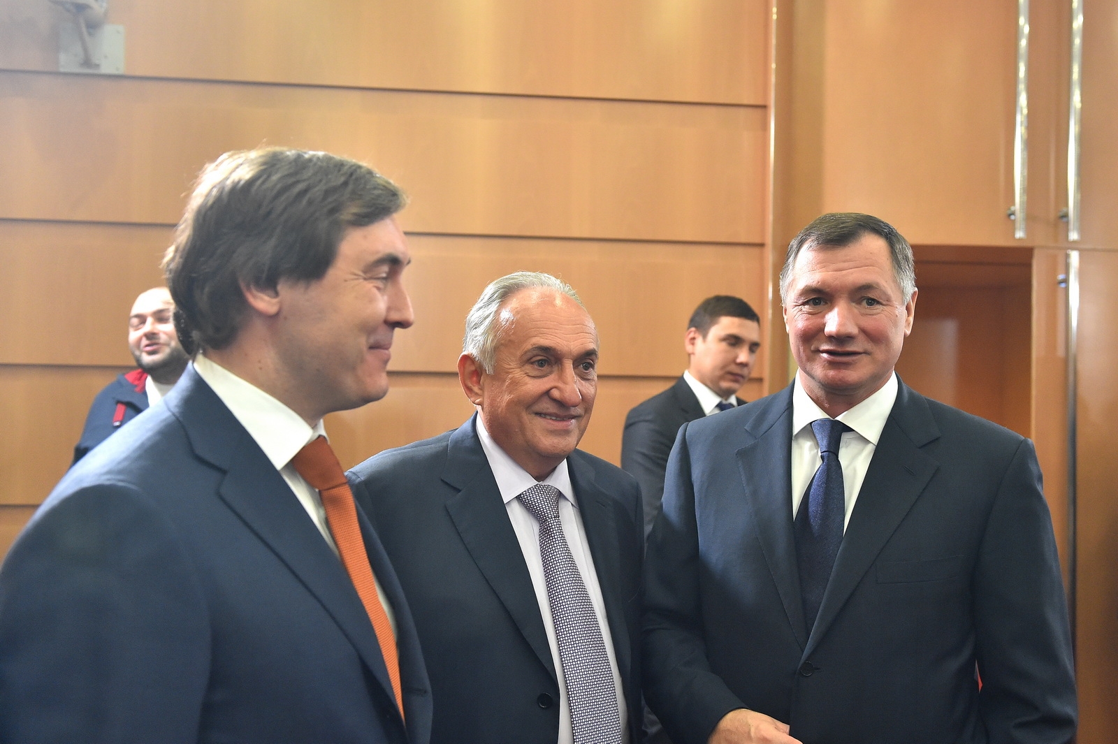 15 февр. 2016 г. Награждение строителей в честь открытия станции метро "Саларьево". С.Собянин, М. Хуснуллин, А. Бочкарев 65 фото