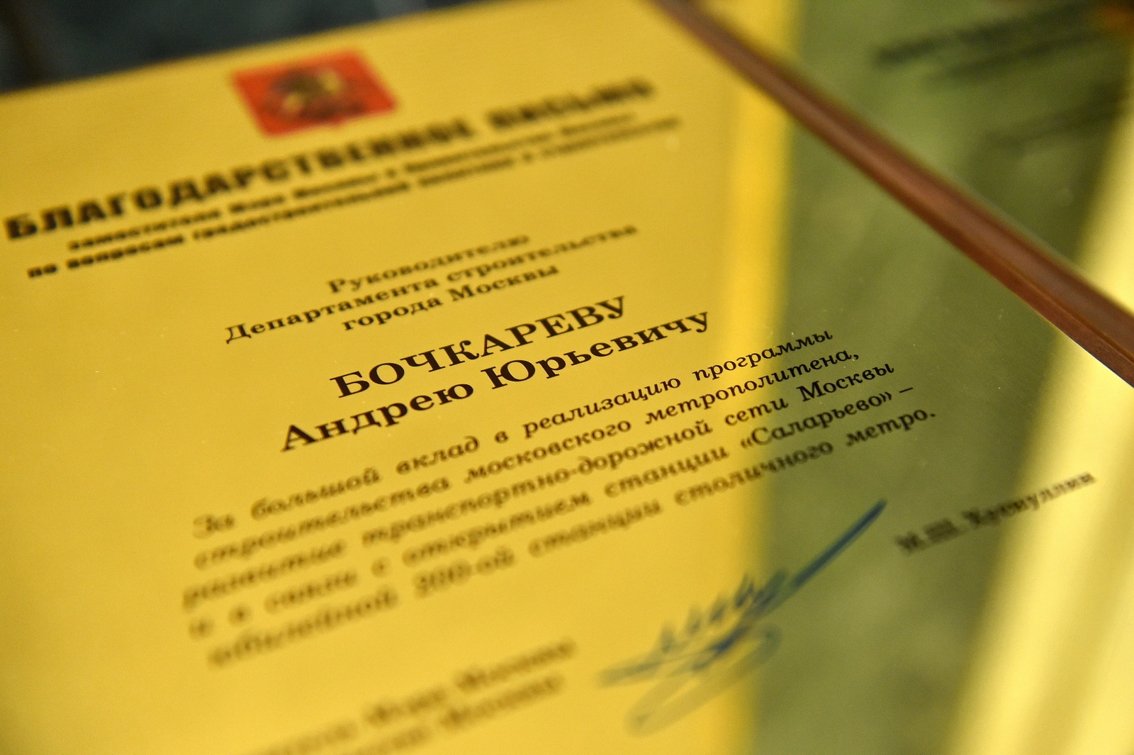 15 февр. 2016 г. Награждение строителей в честь открытия станции метро "Саларьево". С.Собянин, М. Хуснуллин, А. Бочкарев 65 фото