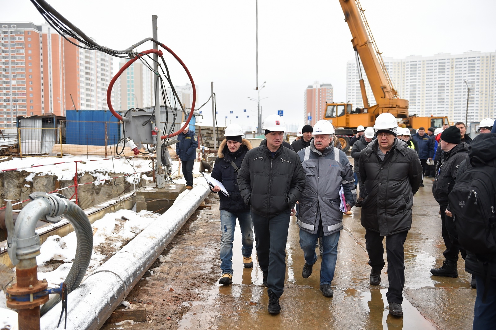 8 февр. 2016 г. Строительство станции метро "Ховрино" Замоскворецкой линии. С.Собянин, М. Хуснуллин 28 фото