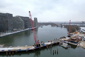 Строительство велопешеходного моста через старое русло Москвы-реки в Нагатинском Затоне. С. Собянин. Источник: пресс-служба Градостроительного комплекса Москвы