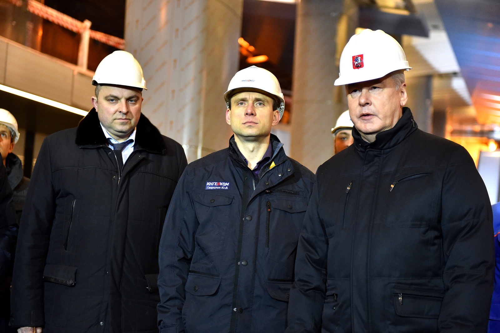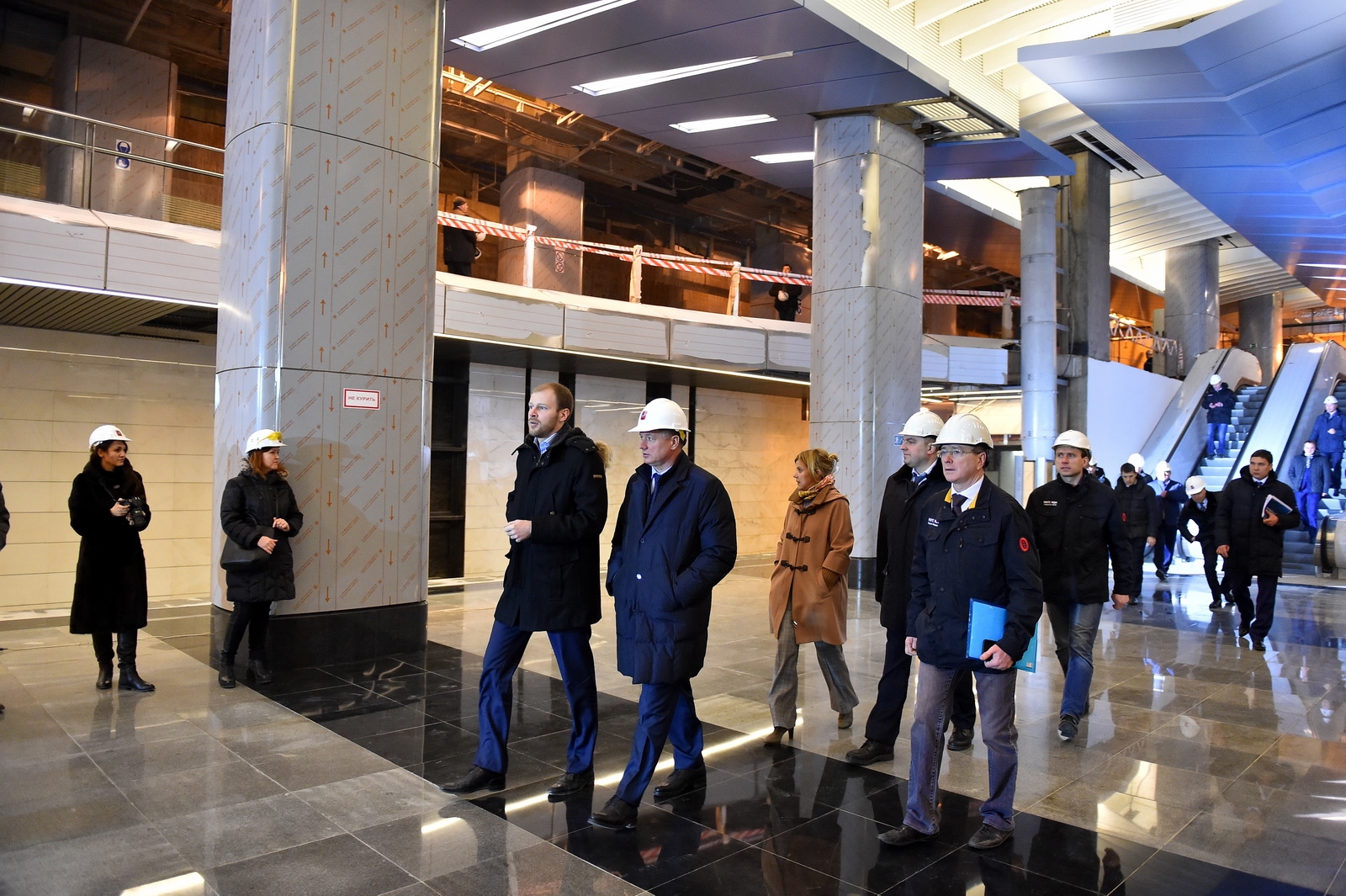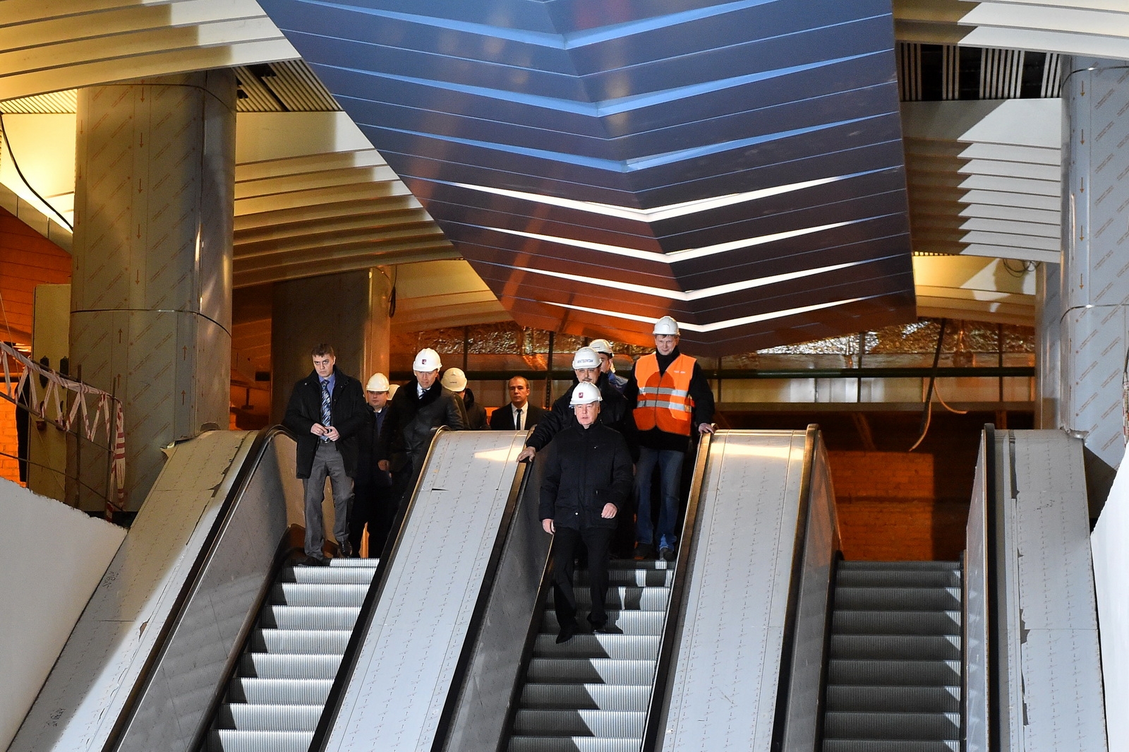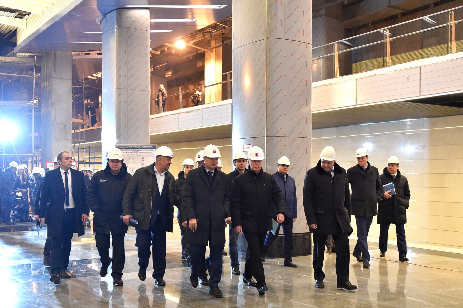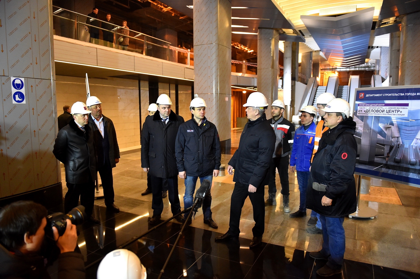 31 мар. 2016 г. Осмотр хода строительства станции «Деловой центр» Третьего пересадочного контура метро. С. Собянин