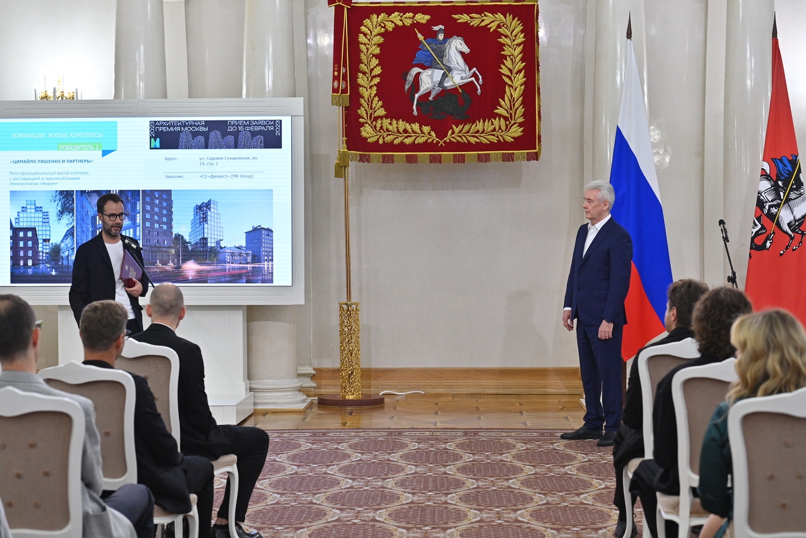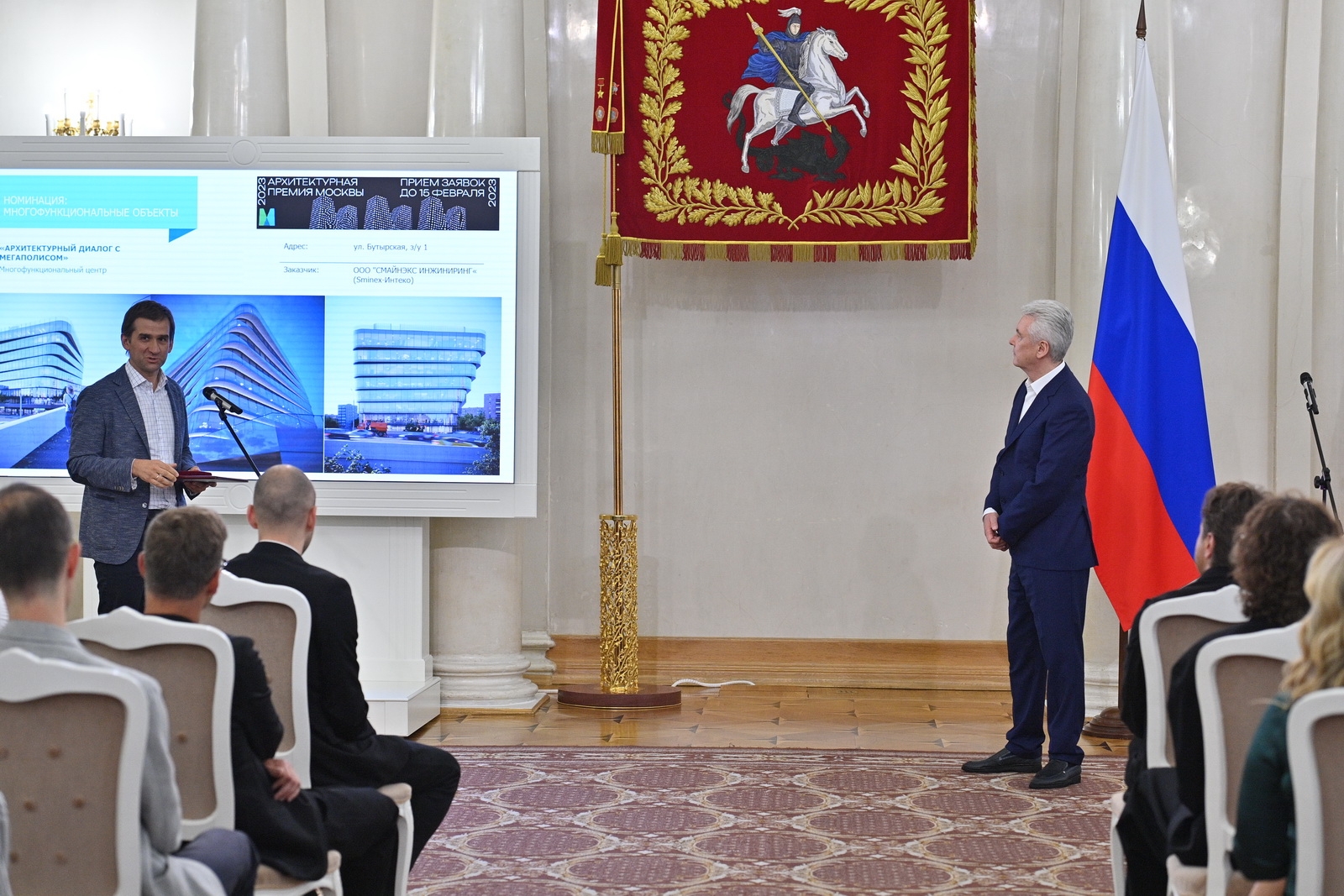 Архпремия Москвы – 2023. С. Собянин, С. Кузнецов. Источник: пресс-служба Градостроительного комплекса Москвы Темы в материале: Градостроительная политика 29 июн. 2023 г. 23:43 Теги награждения Копировать ссылку Скрыть ссылку Другие материалы по теме 6 июл. 2023 г. Открытие электробусного парка в районе Митино. С. Собянин. Источник: Градостроительный комплекс Москвы 36 фото 5 июл. 2023 г. Проект общественно-делового комплекса «Тверская Застава» на ул. Грузинский Вал, д. 4 (ЦАО). Источник: пресс-служба Градостроительного комплекса Москвы 4 фото 30 июн. 2023 г. Строительство станции «Корниловская» на Троицкой линии метро. С. Собянин. Источник: пресс-служба Градостроительного комплекса Москвы 28 фото 30 июн. 2023 г. Собянин наградил победителей премии Москвы в области архитектуры и строительства 27 июн. 2023 г. Строительство станции метро «Лианозово» на Люблинско-Дмитровской линии. С. Собянин. Источник: пресс-служба Градостроительного комплекса Москвы 29 фото 14 июн. 2023 г. Открытие лечебно-диагностического комплекса МКНЦ им. А.С. Логинова. С. Собянин. Источник: пресс-служба Градостроительного комплекса Москвы 45 фото 13 июн. 2023 г. Поликлиника на Игральной улице, д. 8 в районе Богородское. С. Собянин. Источник: пресс-служба Градостроительного комплекса Москвы 28 фото Контакты пресс-службы Комплекса градостроительной политики и строительства города Москвы