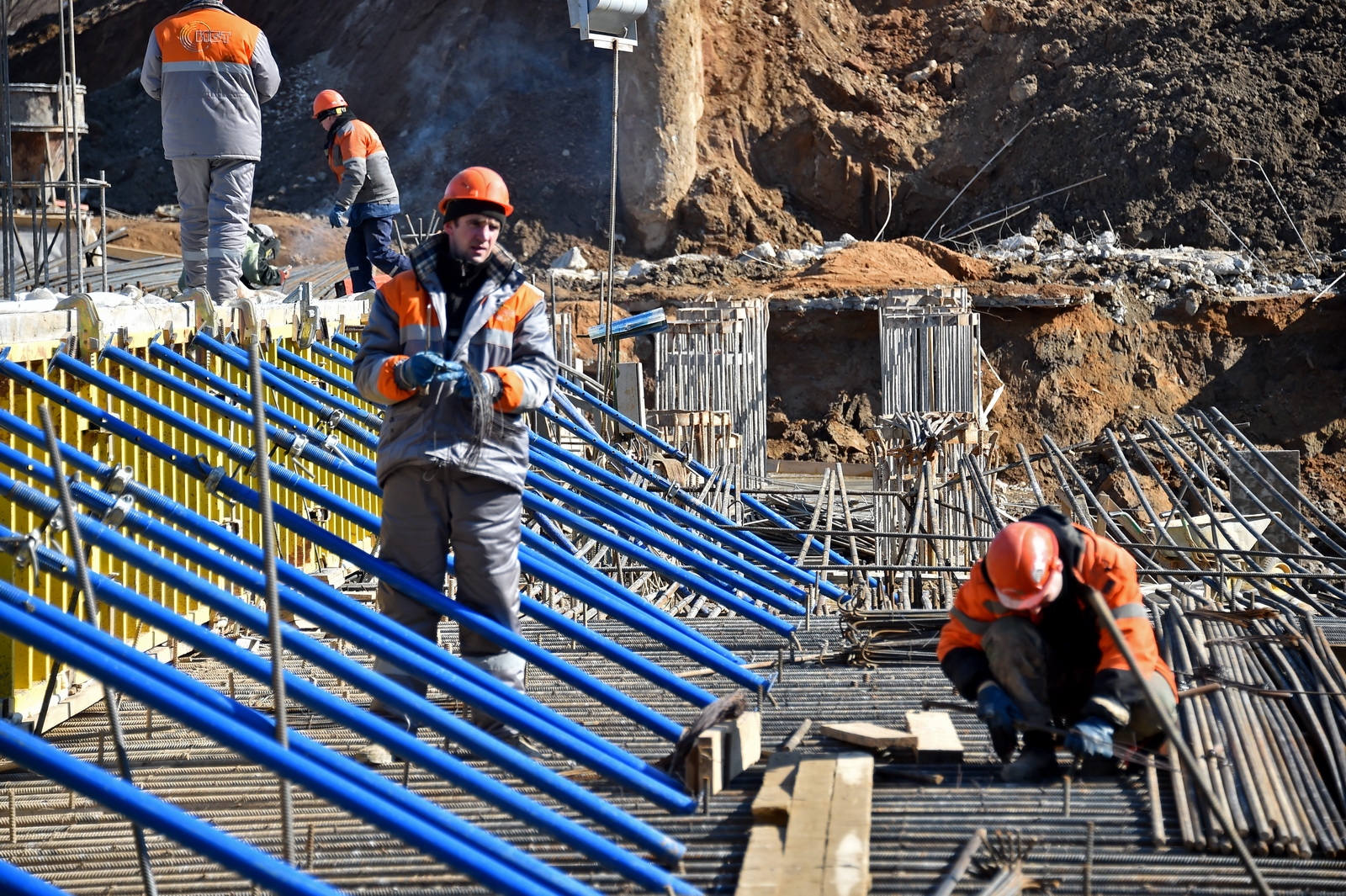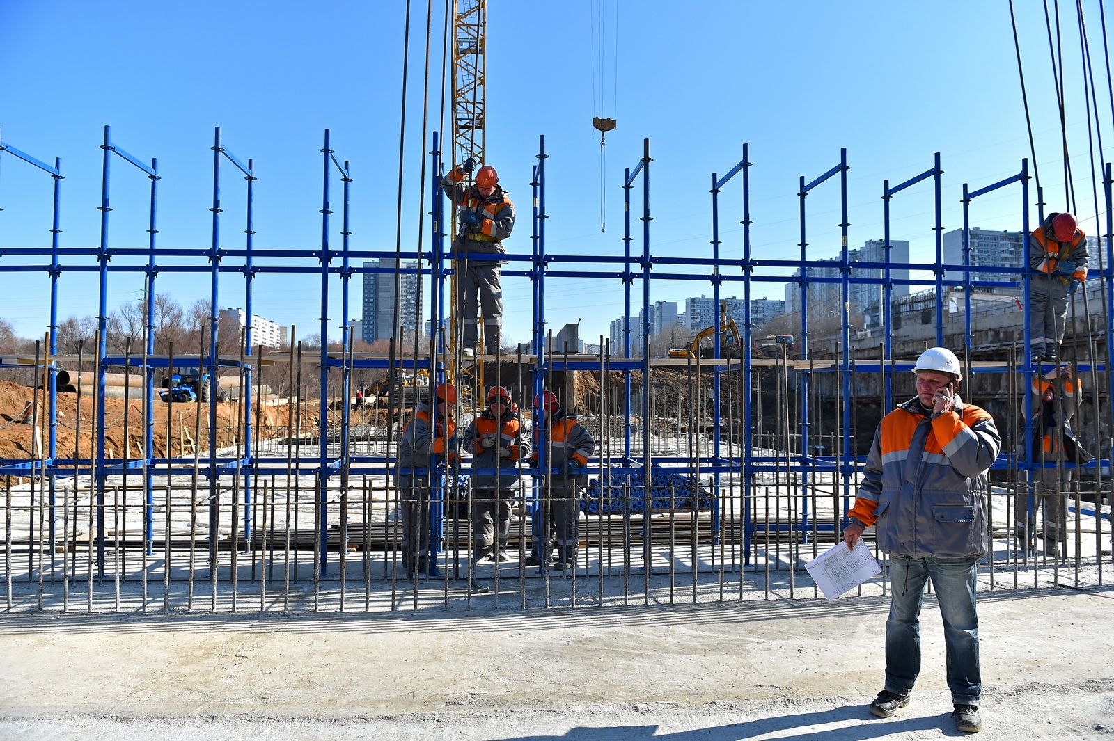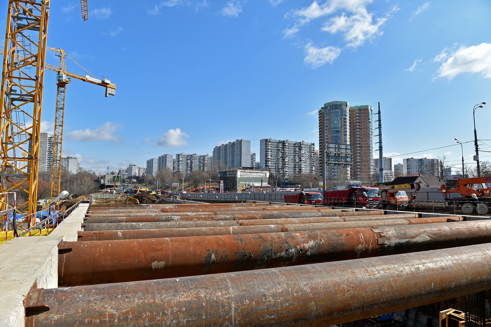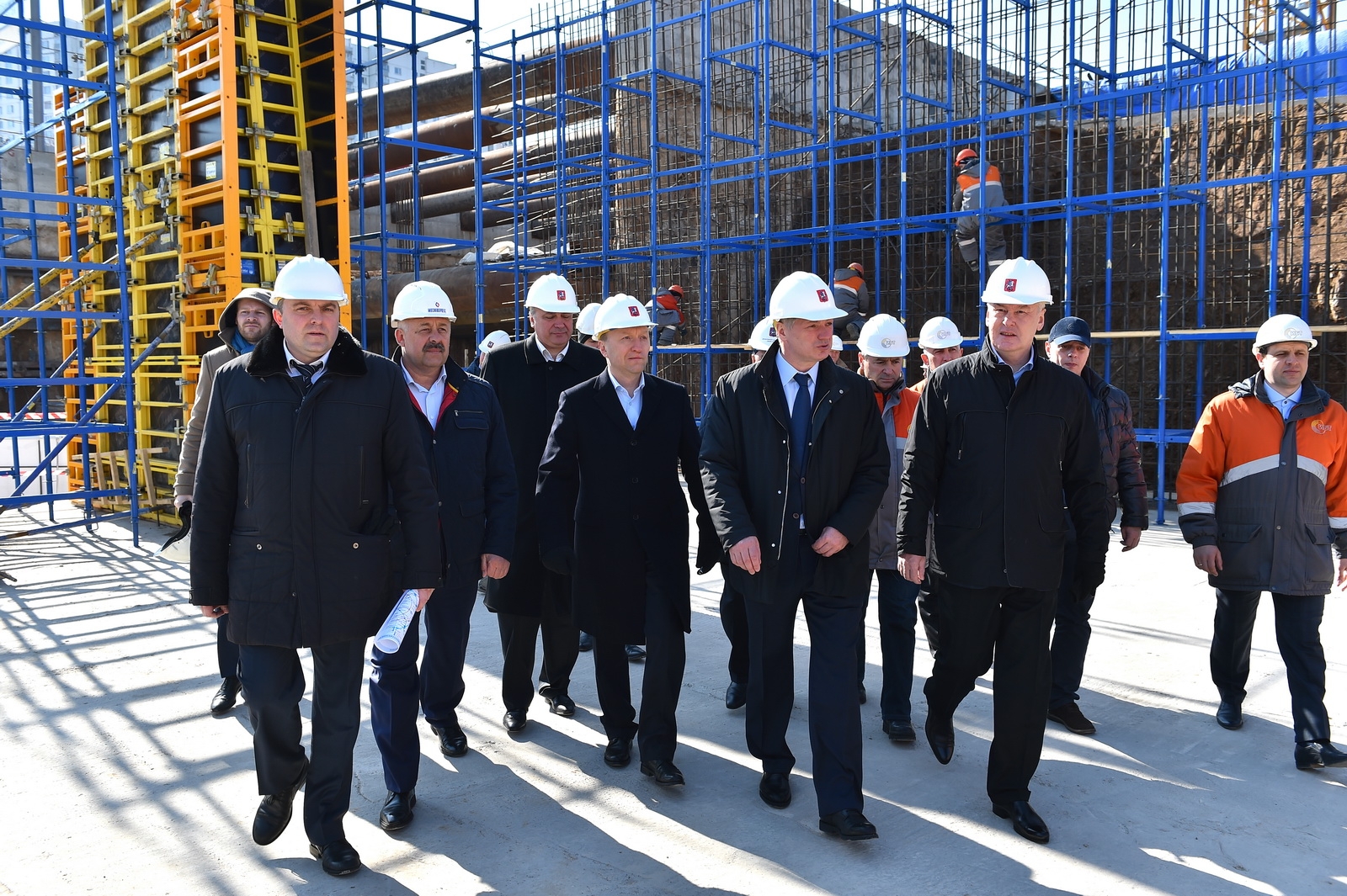 4 апр. 2016 г. Осмотр хода строительства станции «Мичуринский проспект» Калининско-Солнцевской линии метрополитена. С. Собянин, М. Хуснуллин