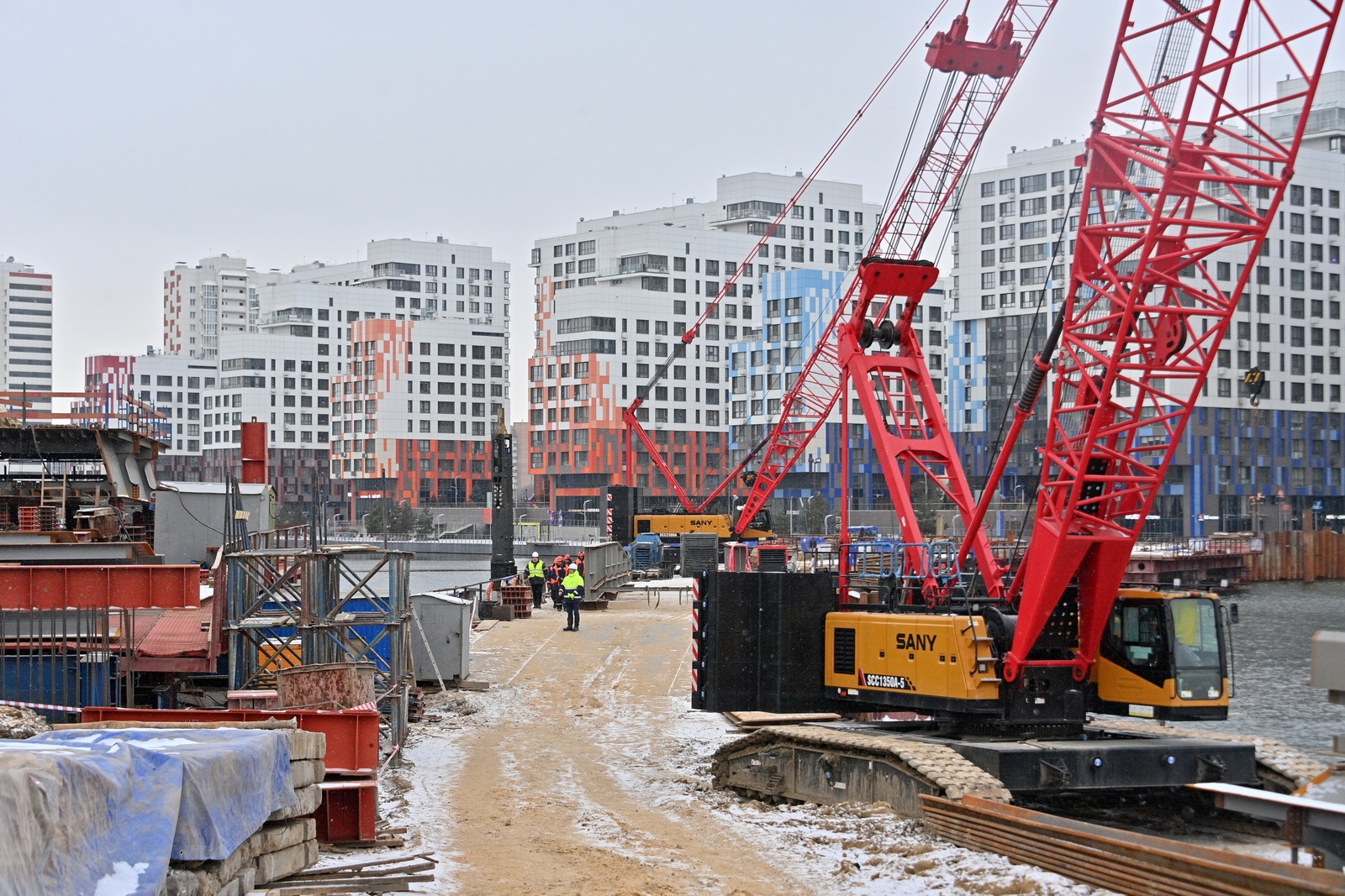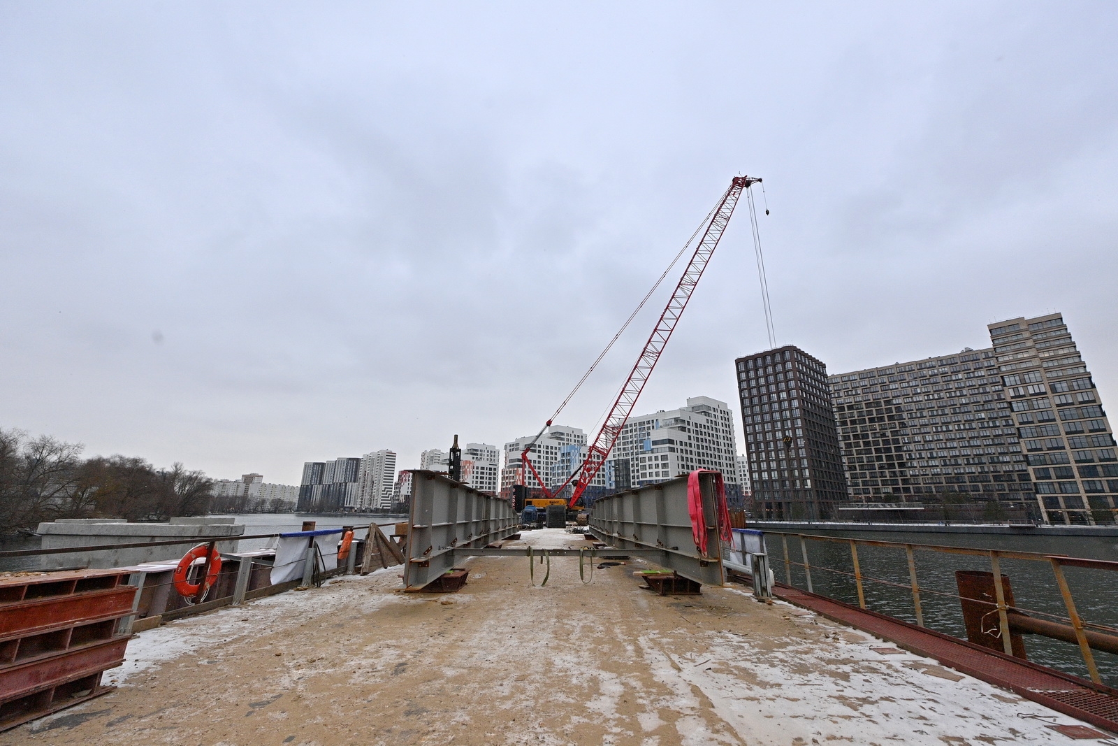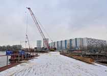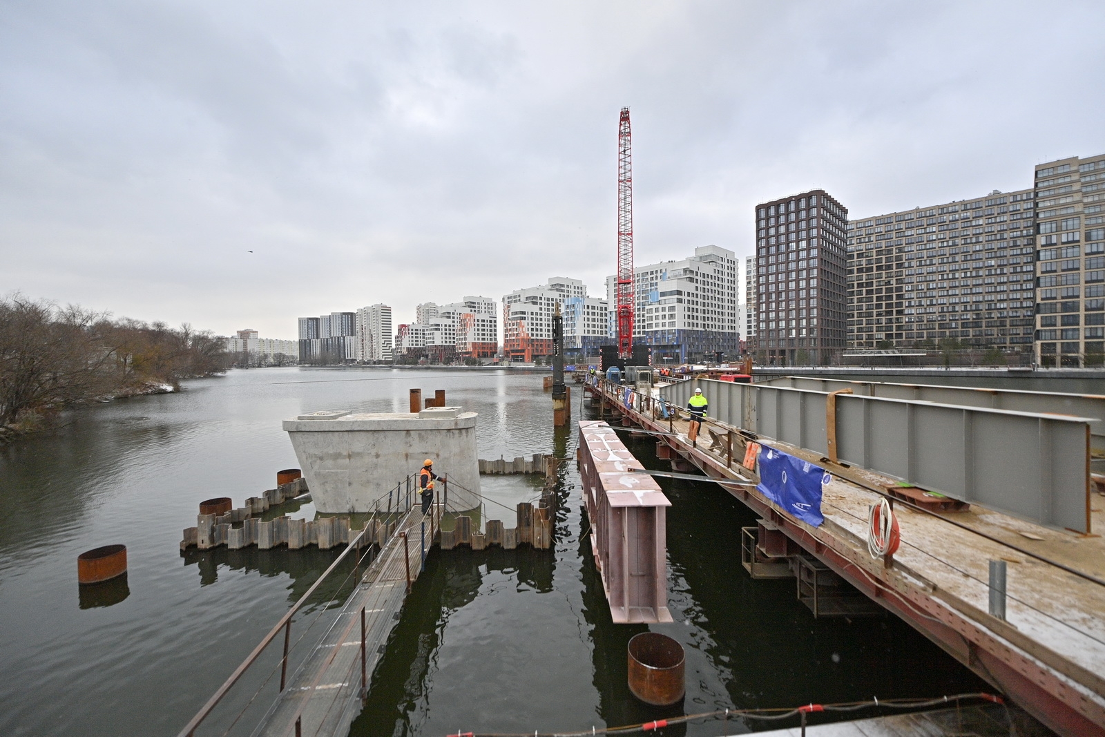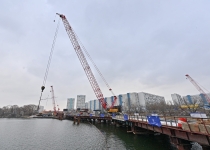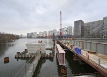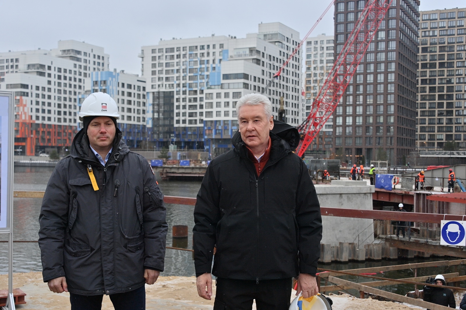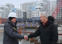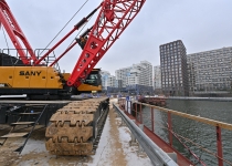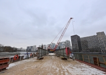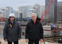 Строительство велопешеходного моста через старое русло Москвы-реки в Нагатинском Затоне. С. Собянин. Источник: пресс-служба Градостроительного комплекса Москвы