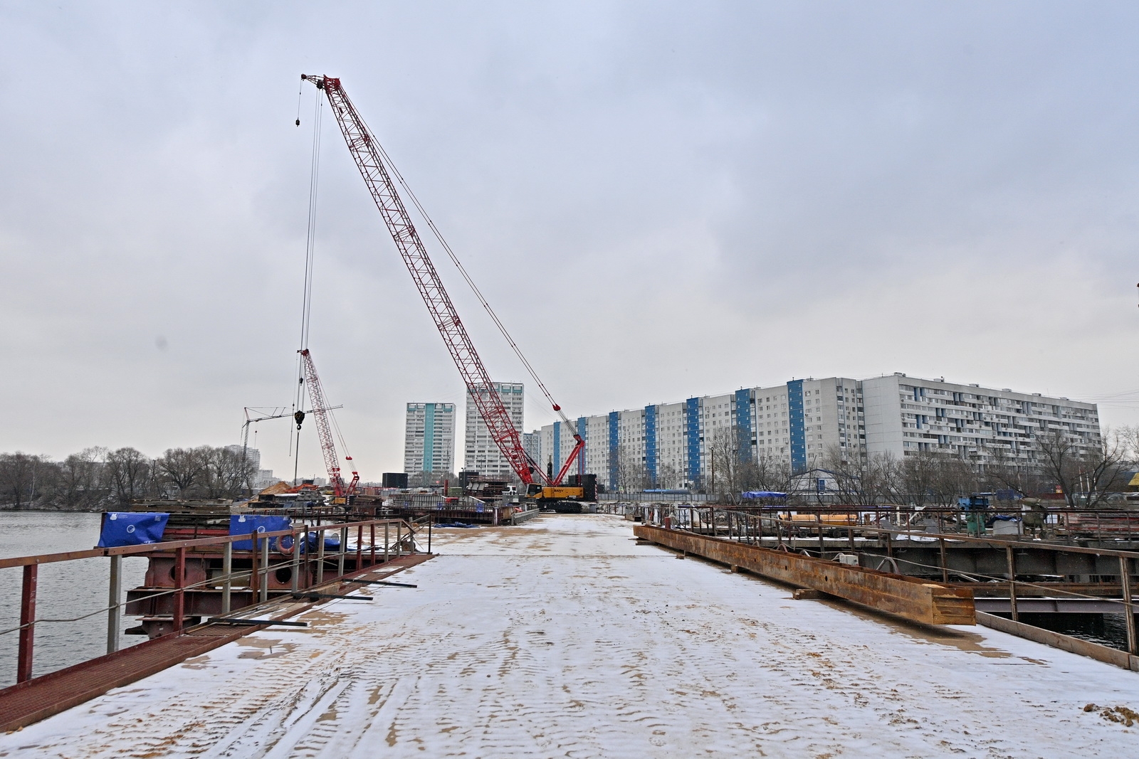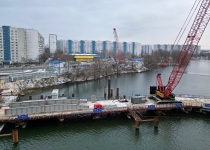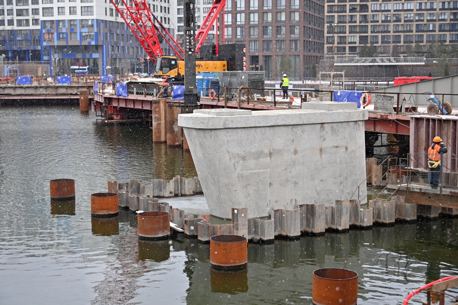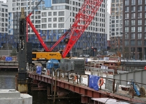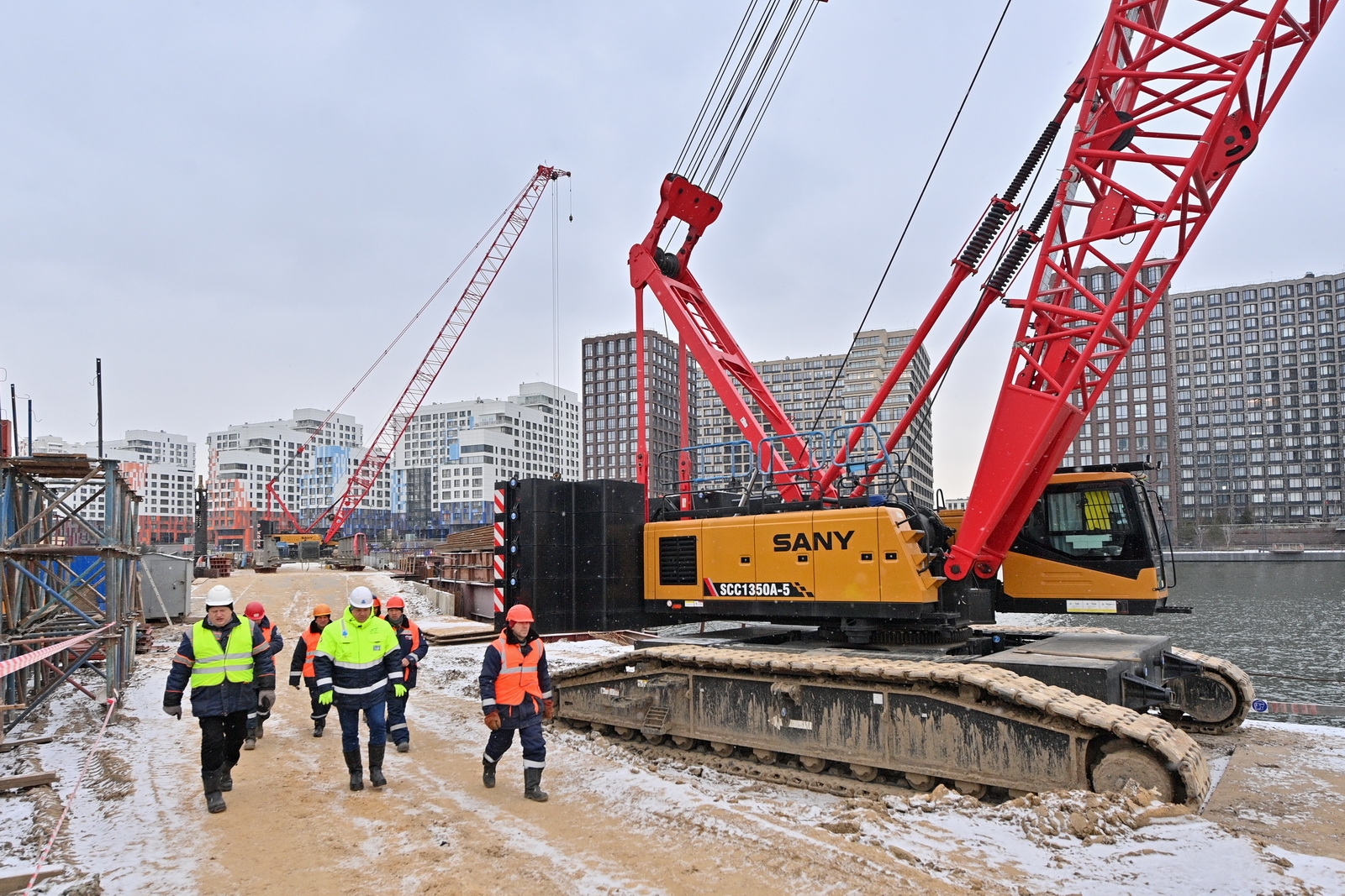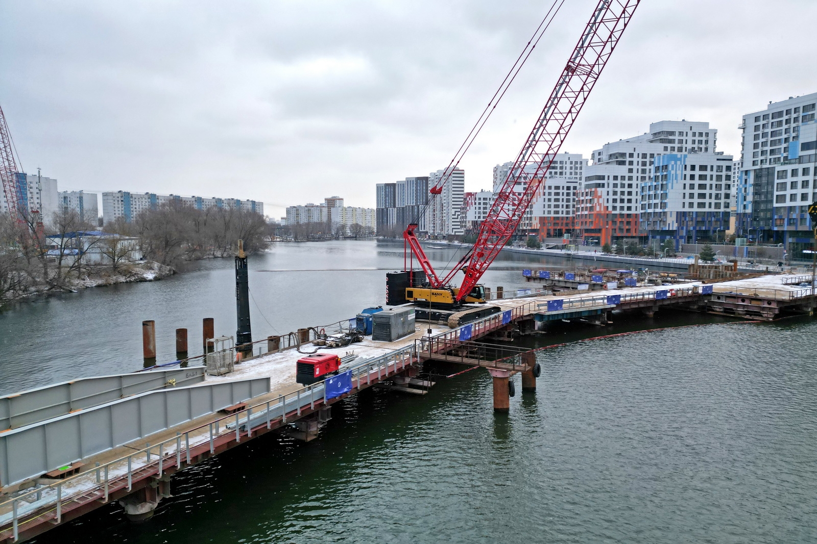 Строительство велопешеходного моста через старое русло Москвы-реки в Нагатинском Затоне. С. Собянин. Источник: пресс-служба Градостроительного комплекса Москвы