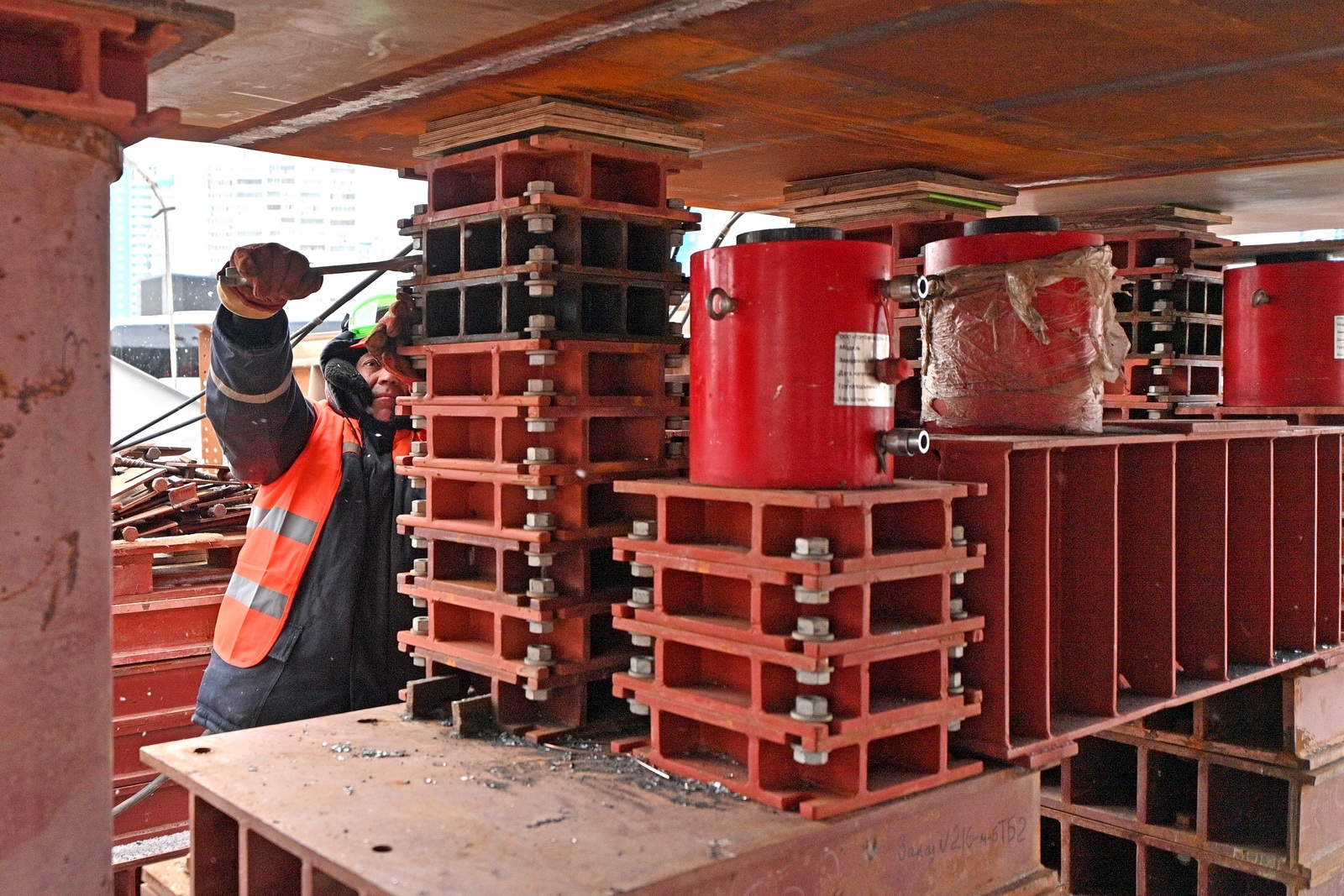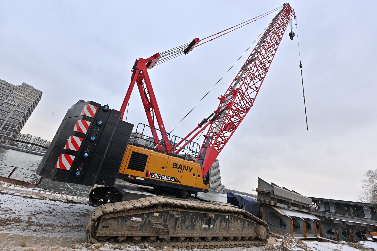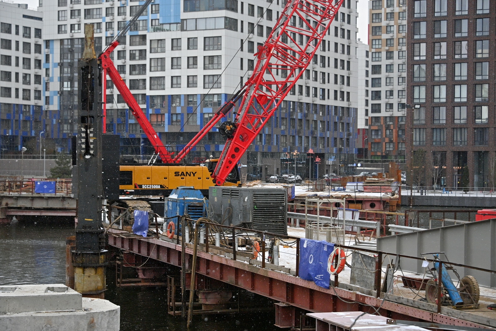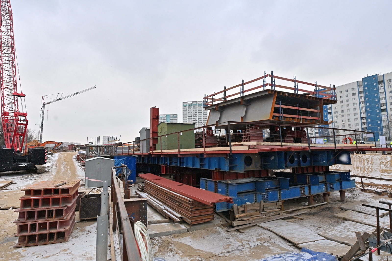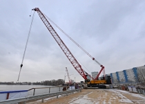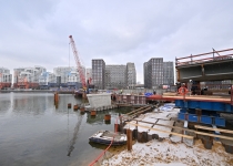 Строительство велопешеходного моста через старое русло Москвы-реки в Нагатинском Затоне. С. Собянин. Источник: пресс-служба Градостроительного комплекса Москвы