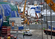 Строительство эстакады-съезда с МСД на Каширское шоссе. С. Собянин. Источник: пресс-служба Градостроительного комплекса Москвы