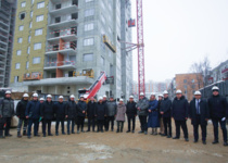 Делегация из Узбекистана на осмотре строящегося дома по реновации по адресу: Коровинское шоссе, з/у 29 в районе Западное Дугунино (САО). Источник: пресс-служба Градостроительного комплекса Москвы