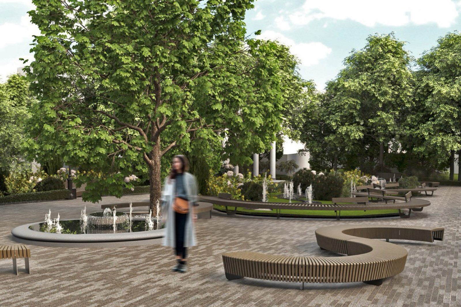 19 мар. 2024 г. Проект благоустройства сквера в ЖК «River Park Towers Кутузовский» в районе Дорогомилово (ЗАО). Источник: Аеон Девелопмент 9 фото