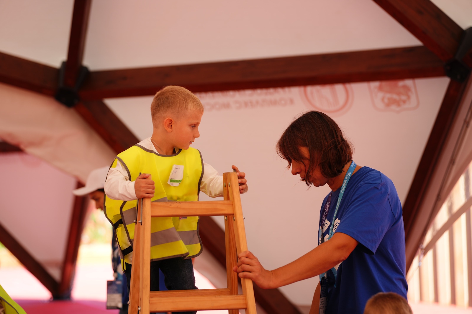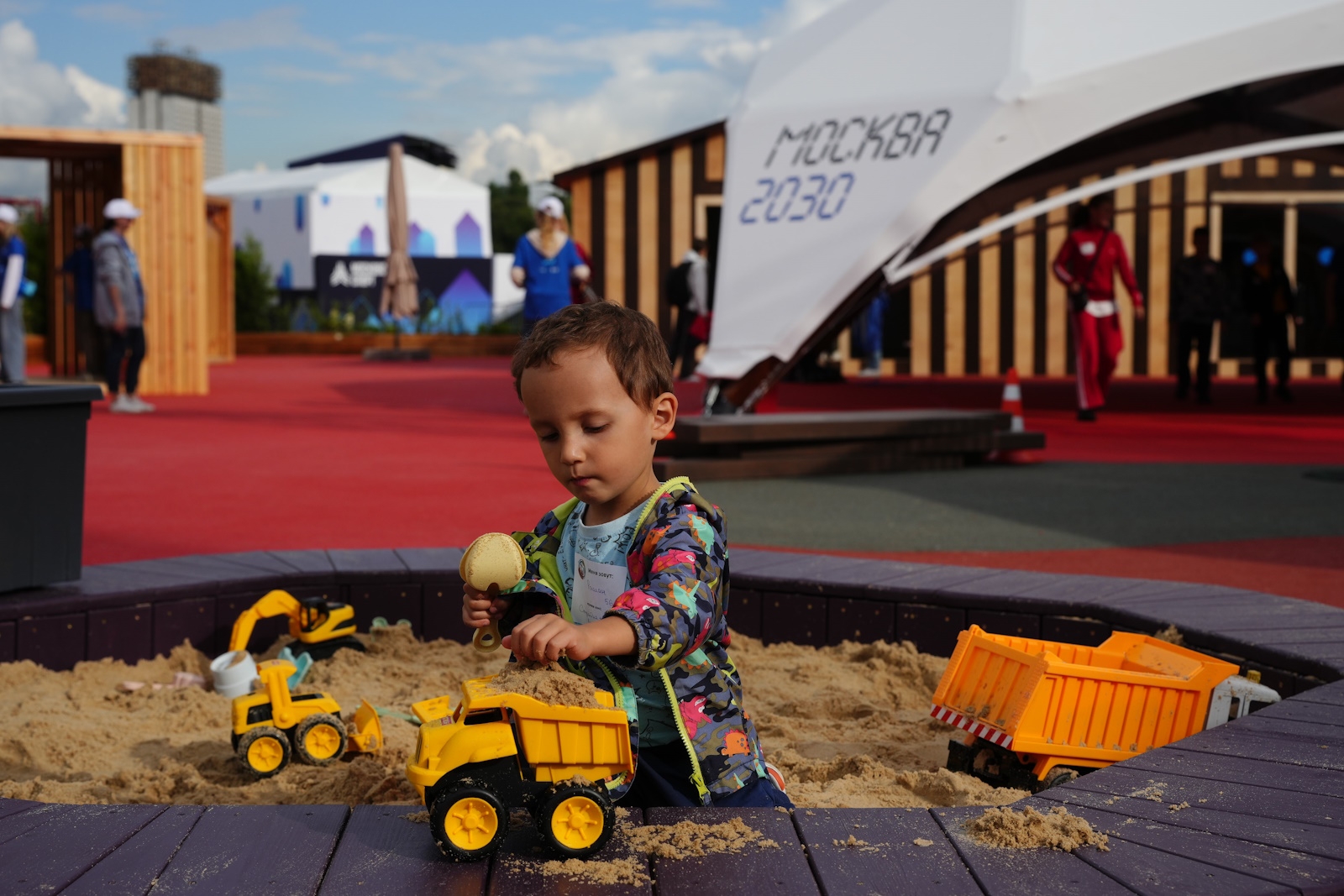 Посетители площадки «Сам себе строитель» в Лужниках на форуме «Территория будущего. Москва 2030». Источник: пресс-служба Градостроительного комплекса Москвы