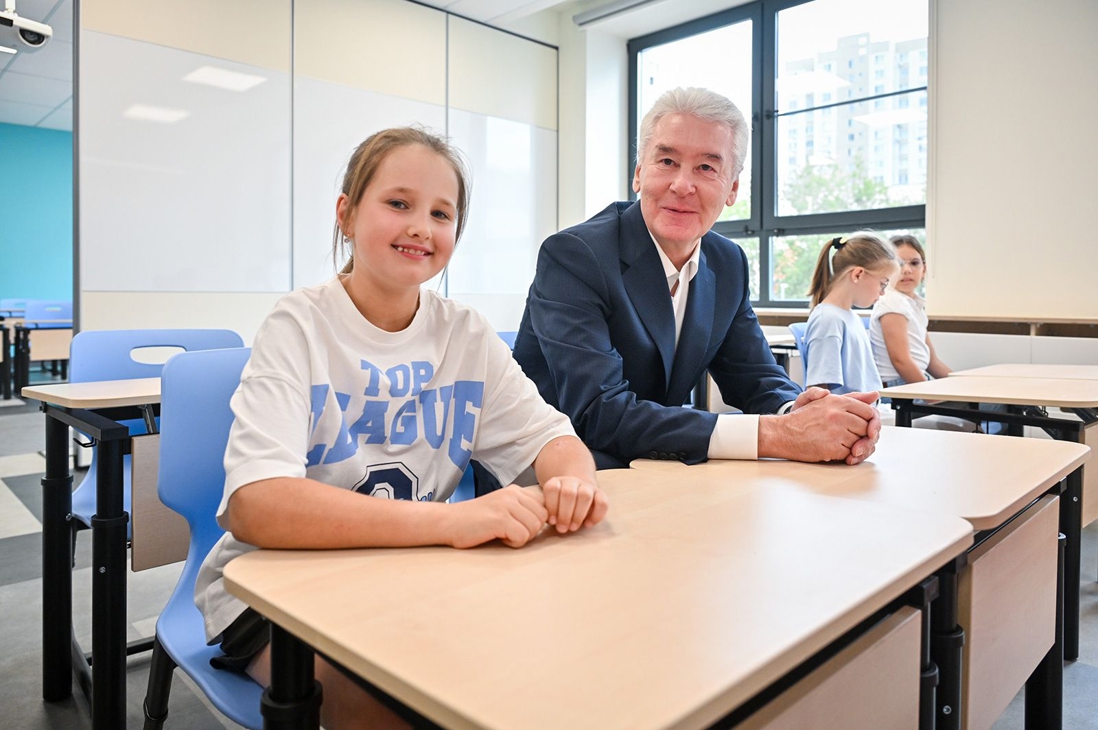 Осмотр школы №1190 в районе Митино (СЗАО) после реконструкции по стандарту «Московская школа». С. Собянин. Фото М. Мишина. Источник: пресс-служба Мэра и Правительства Москвы