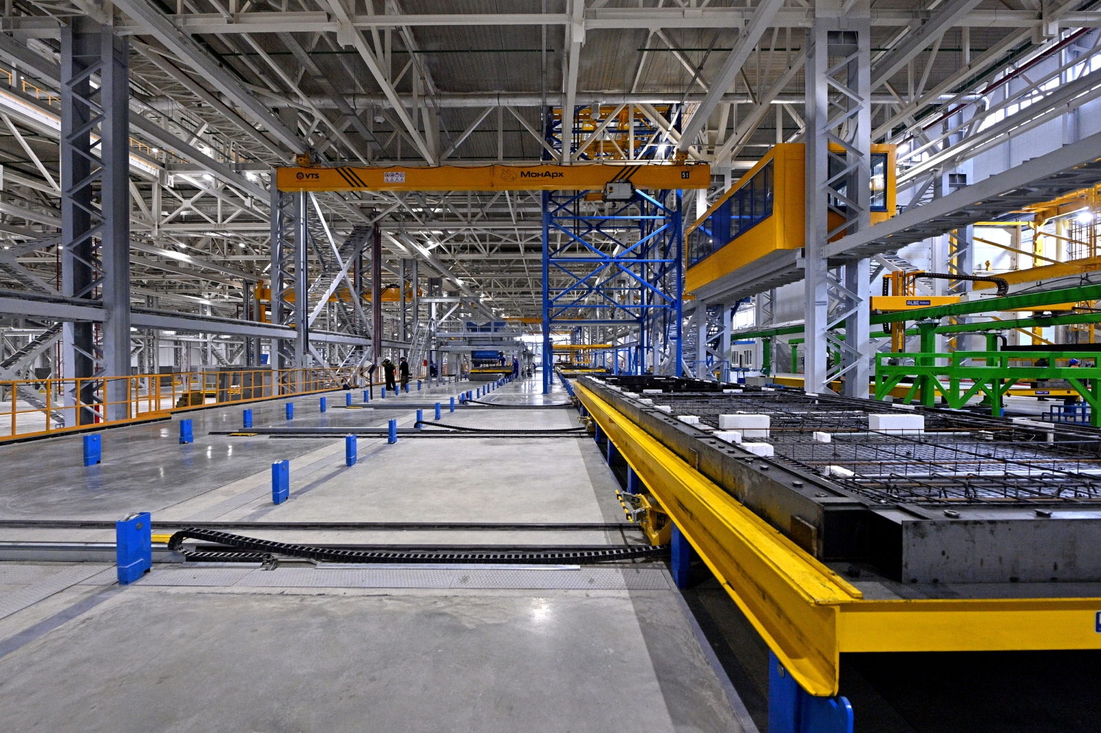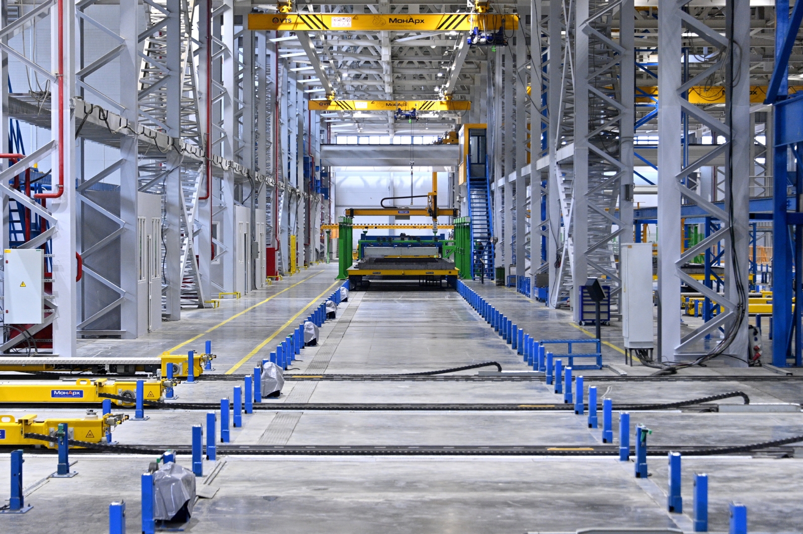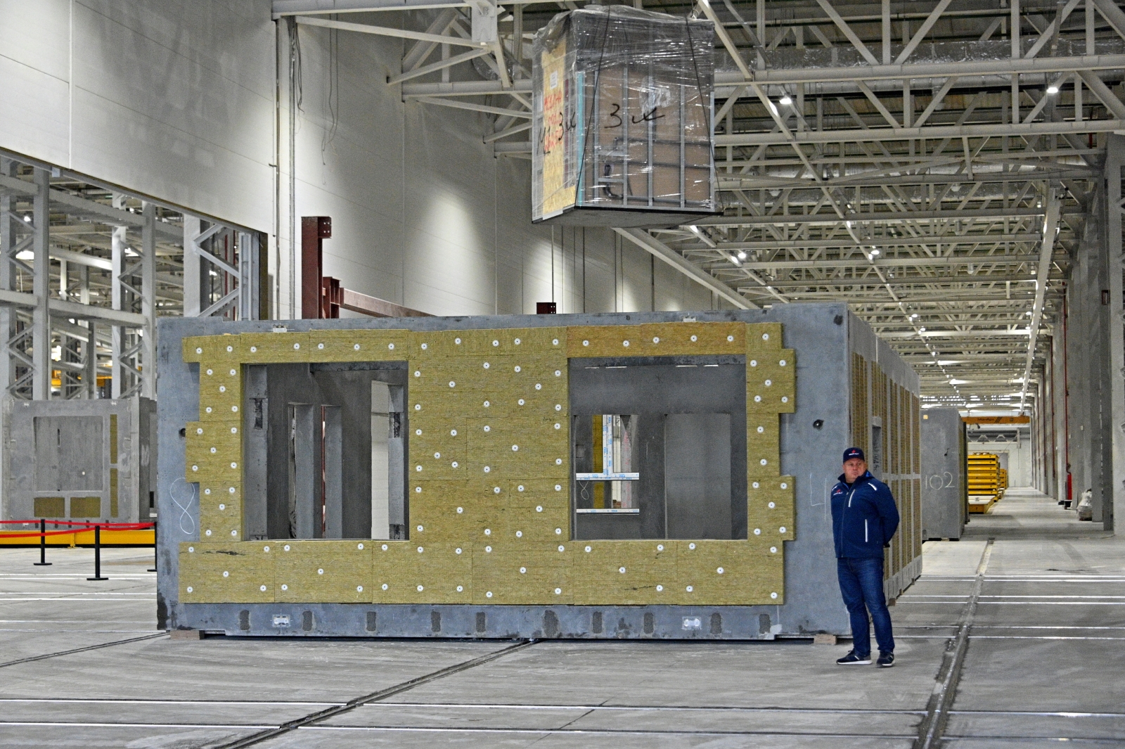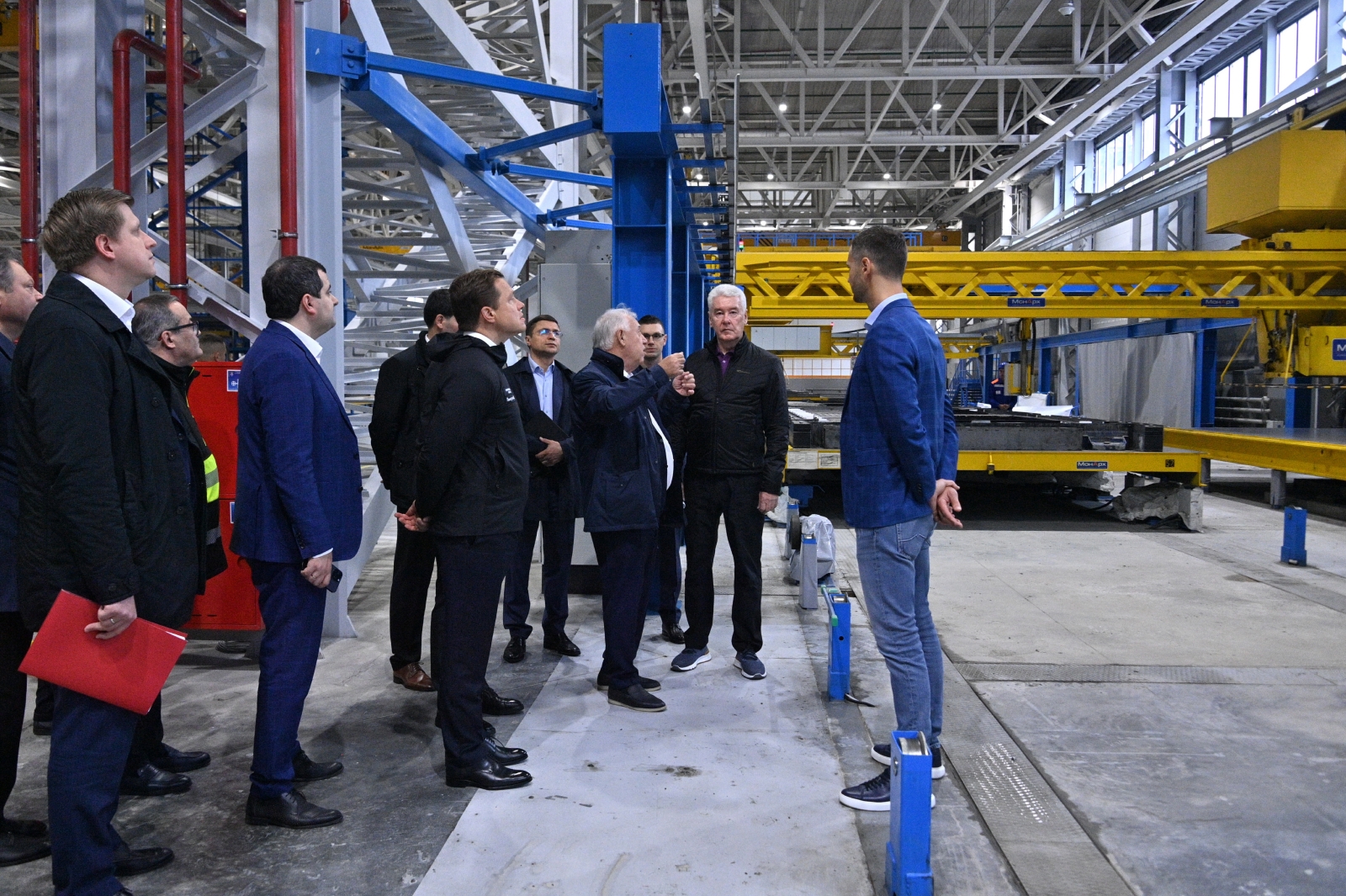 Завод по производству крупногабаритных жилых модулей концерна «МонАрх» в районе Внуково (НАО). С. Собянин. Источник: пресс-служба Градостроительного комплекса Москвы