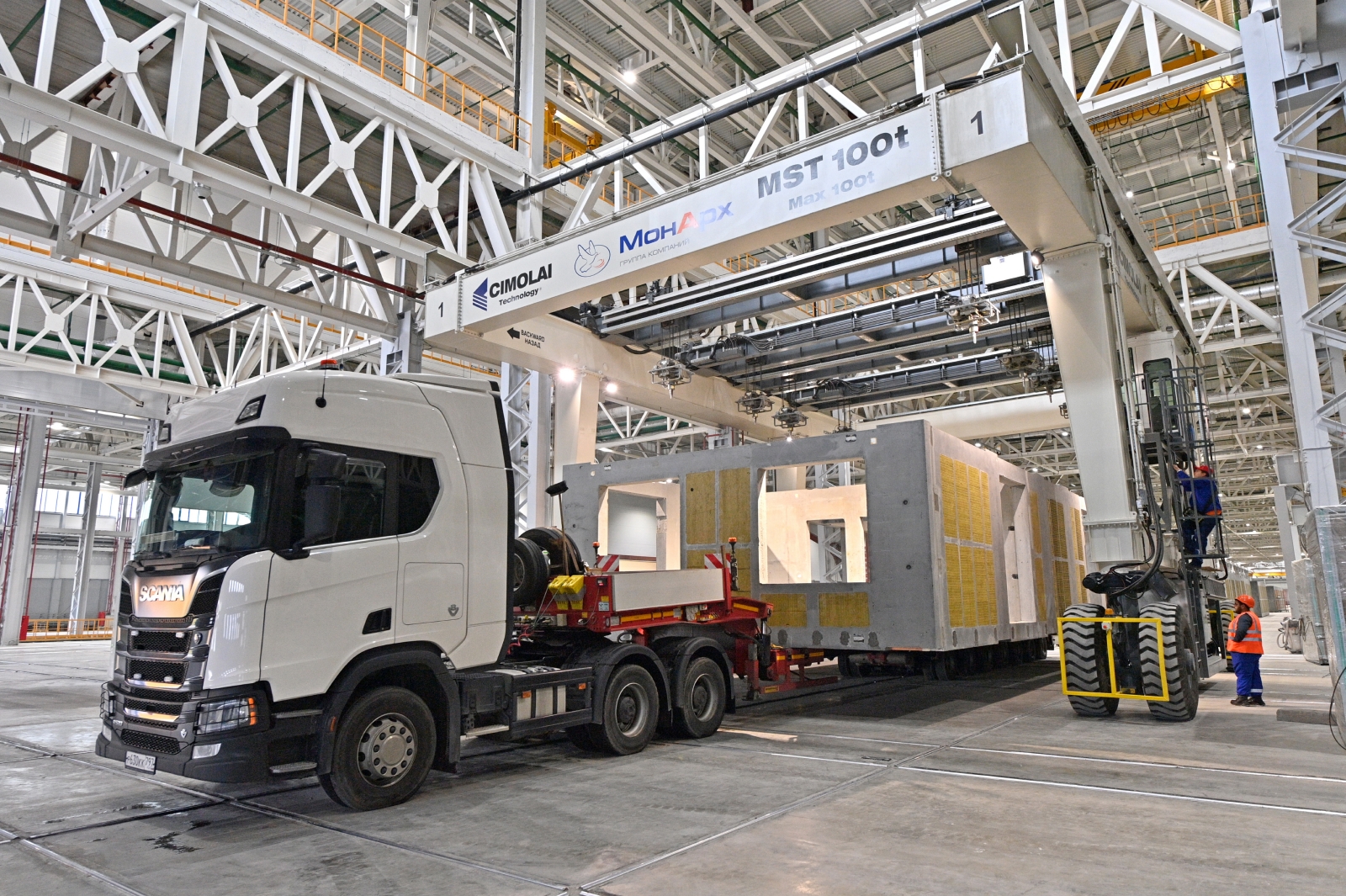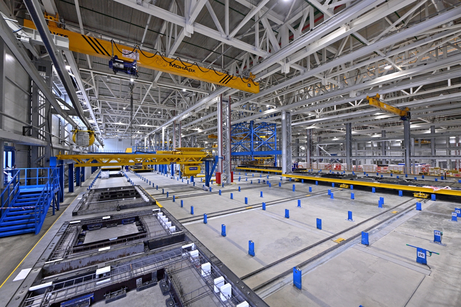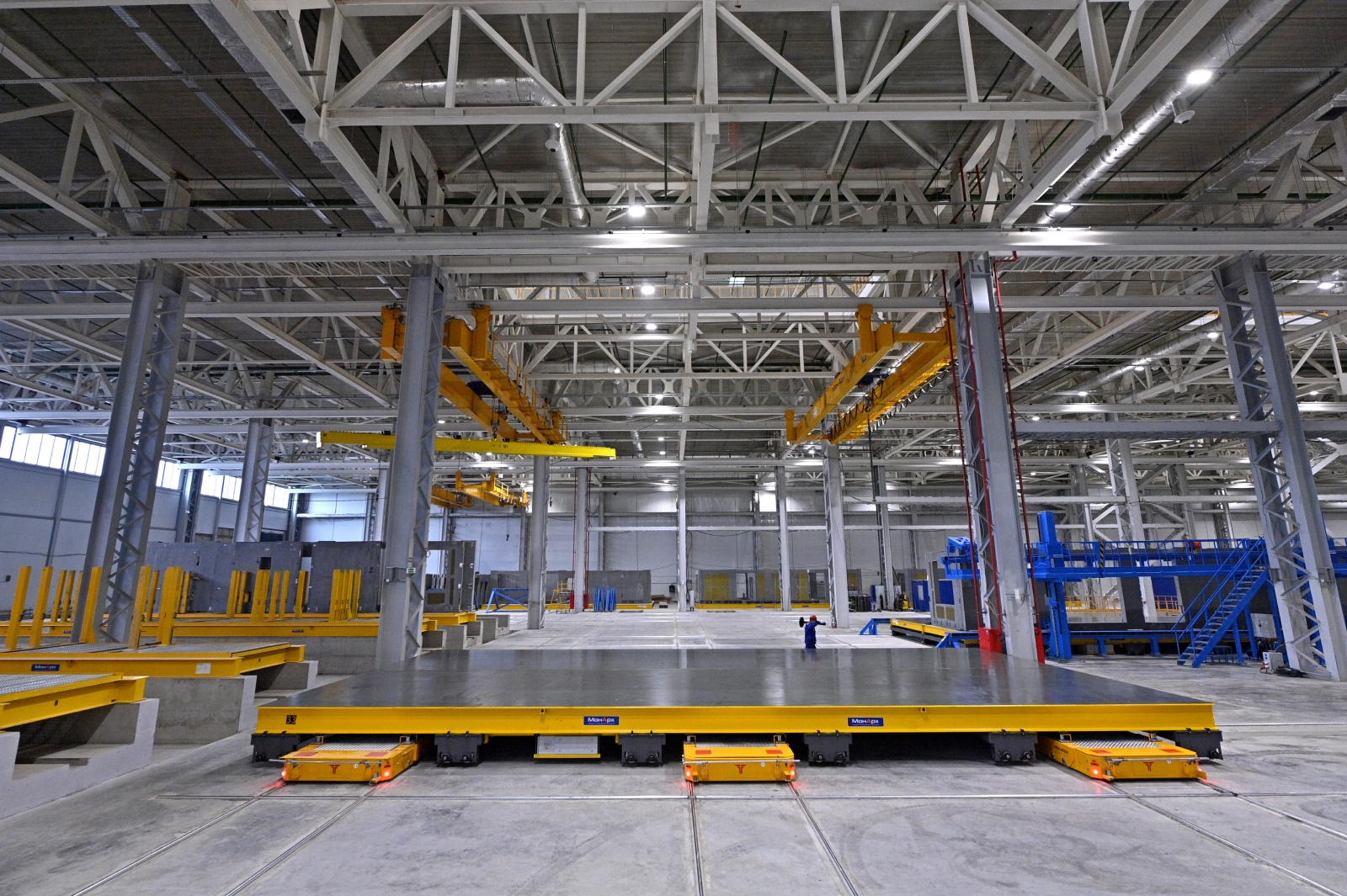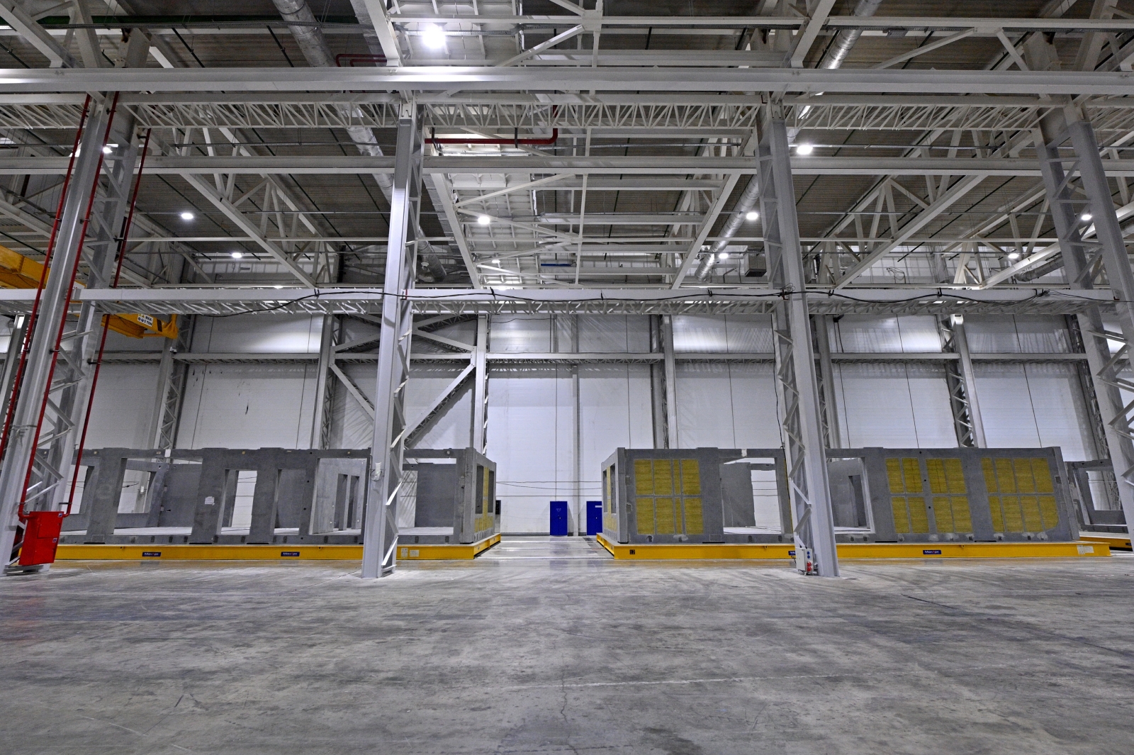 Завод по производству крупногабаритных жилых модулей концерна «МонАрх» в районе Внуково (НАО). С. Собянин. Источник: пресс-служба Градостроительного комплекса Москвы