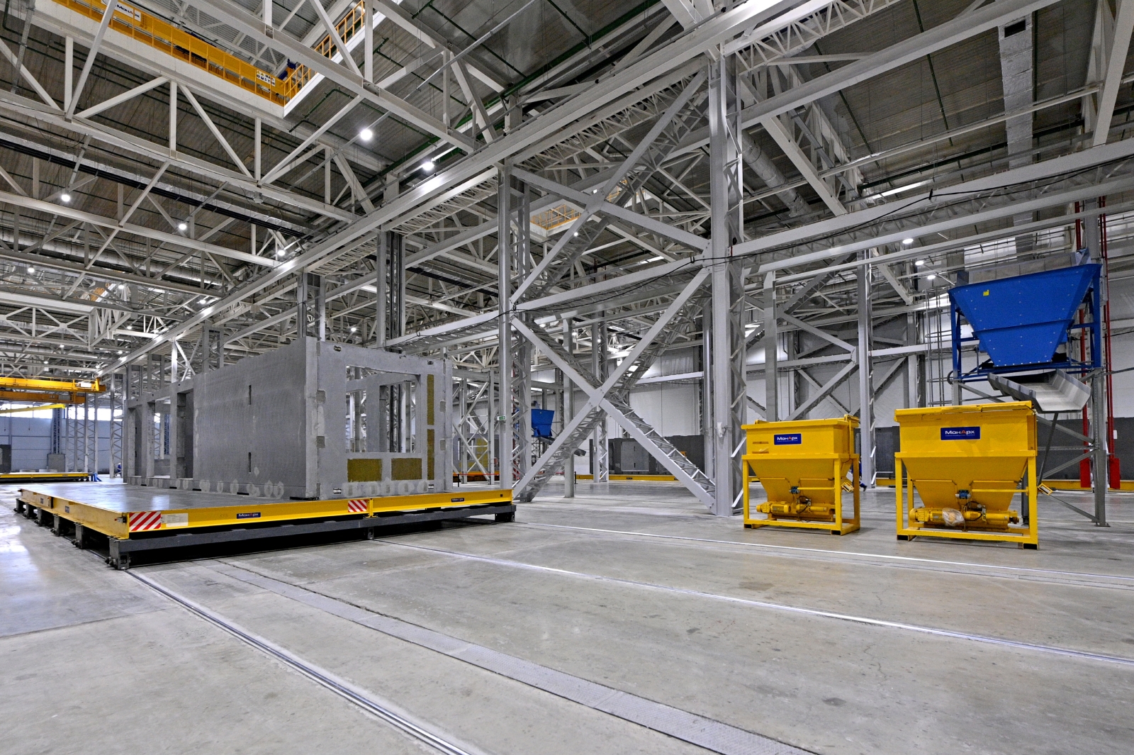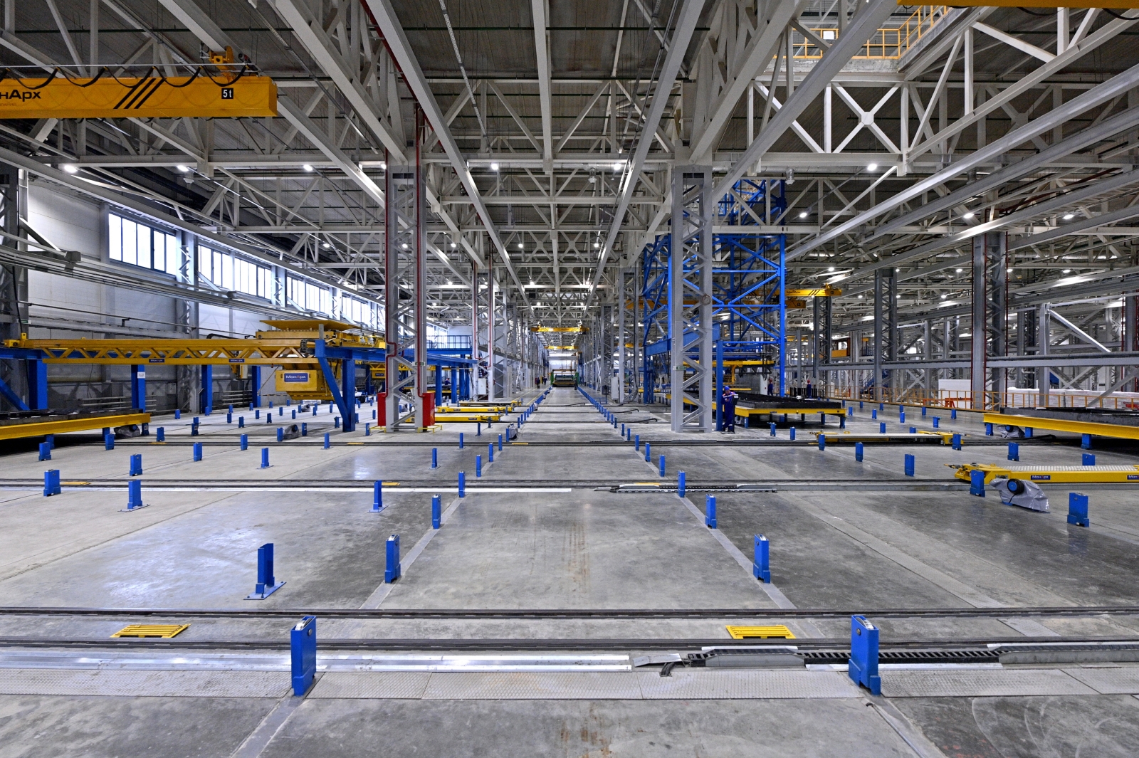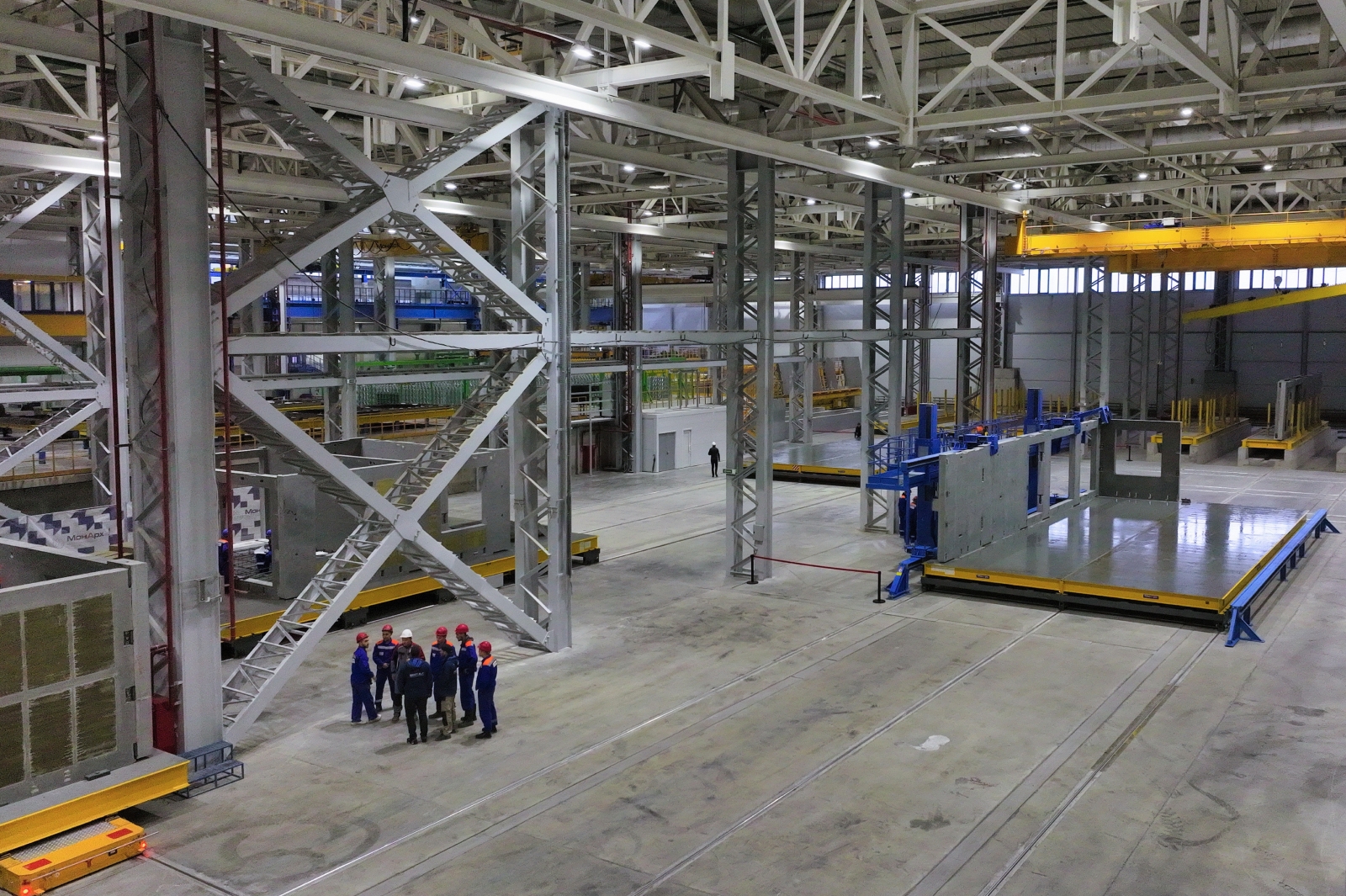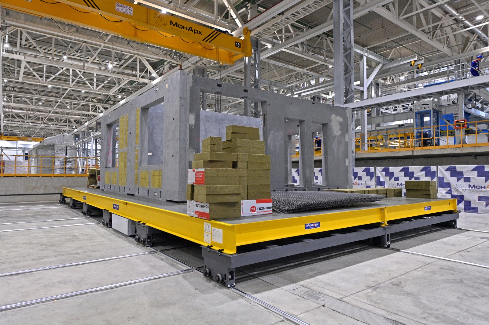 Завод по производству крупногабаритных жилых модулей концерна «МонАрх» в районе Внуково (НАО). С. Собянин. Источник: пресс-служба Градостроительного комплекса Москвы