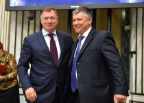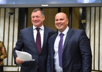 Открытие участка скоростной трассы "Москва - Санкт-Петербург". С. Иванов, С. Собянин, М. Хуснуллин, А. Воробьев, М. Соколов
