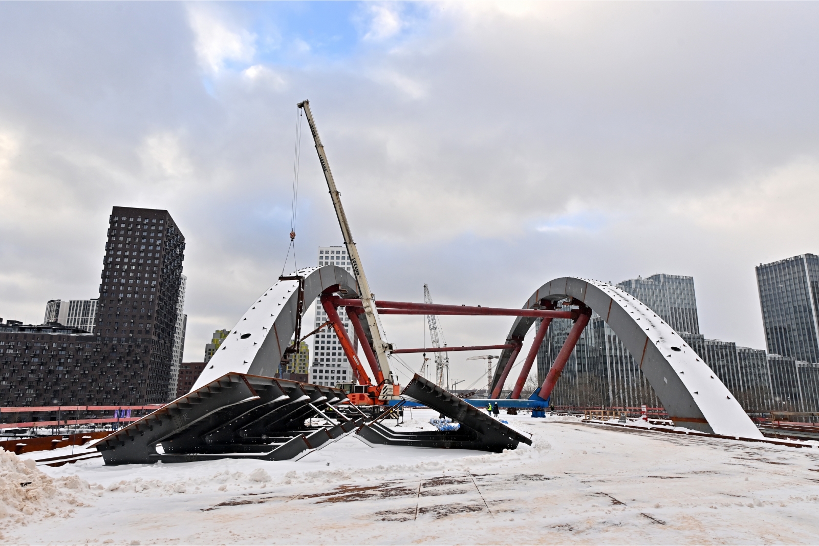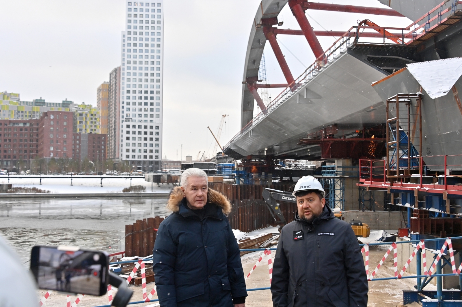 Осмотр строящегося автомобильного моста между Шелепихинской набережной и Филёвской поймой. С. Собянин. Источник: пресс-служба Градостроительного комплекса Москвы