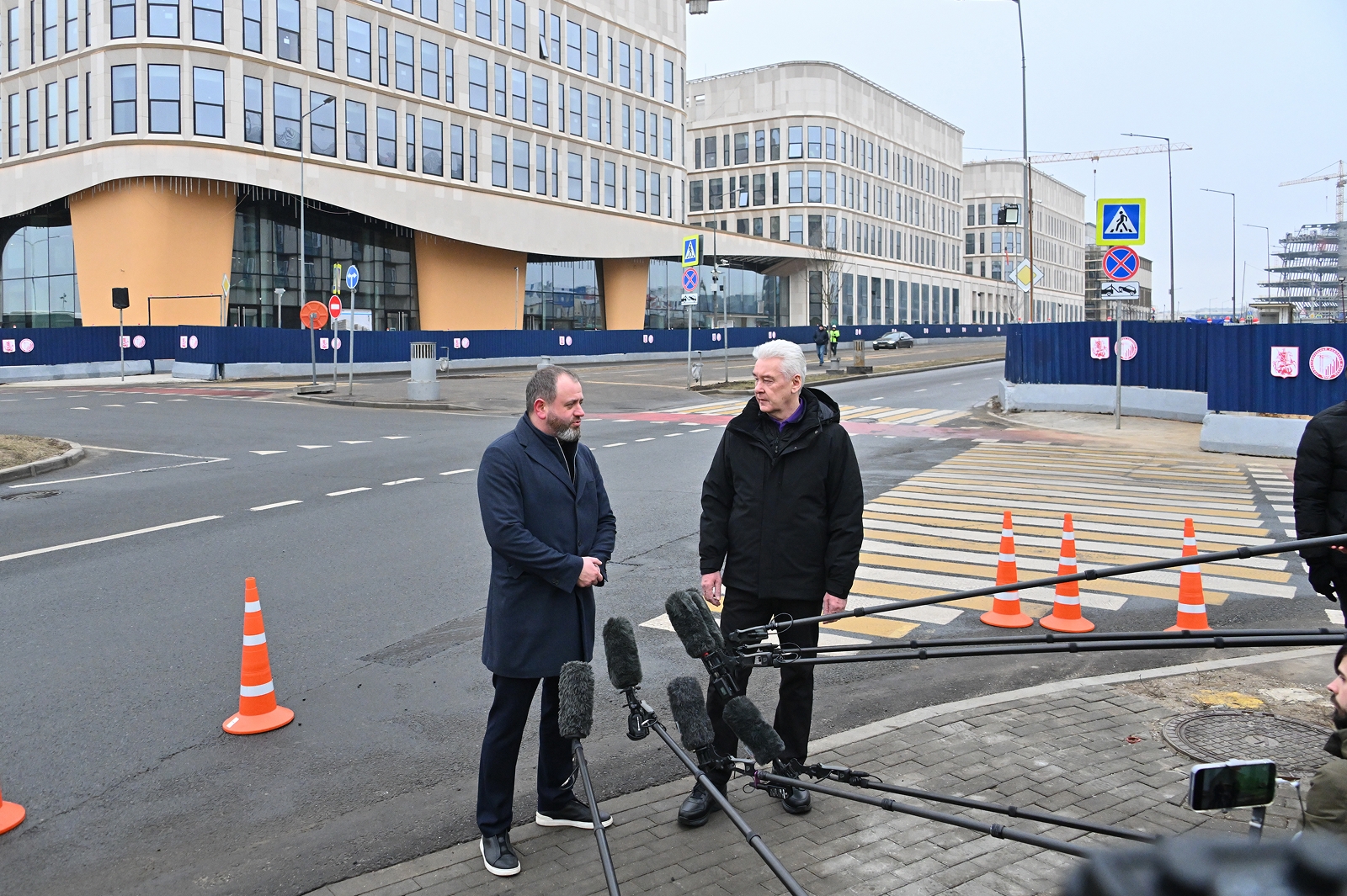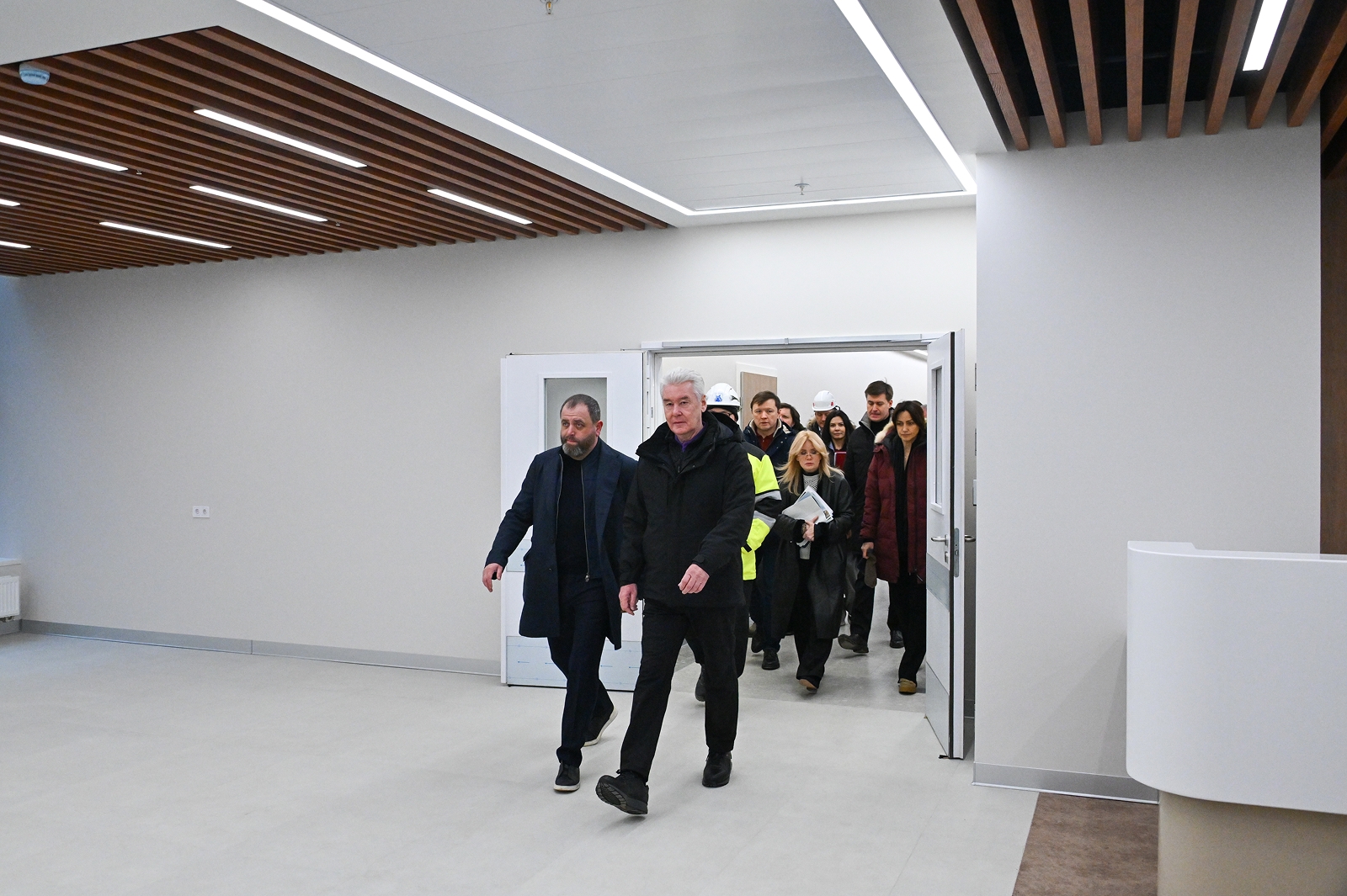 Осмотр строящегося комплекса онкобольницы № 62 в Сколкове. С. Собянин. Источник: пресс-служба Градостроительного комплекса Москвы