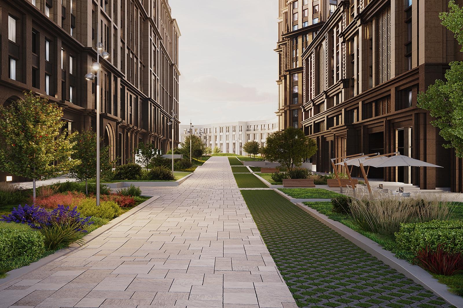 Проект благоустройства территории ЖК в Хорошёвском районе во 2-м Хорошёвском проезде, д. 7 (САО). Источник: пресс-служба Москомархитектуры