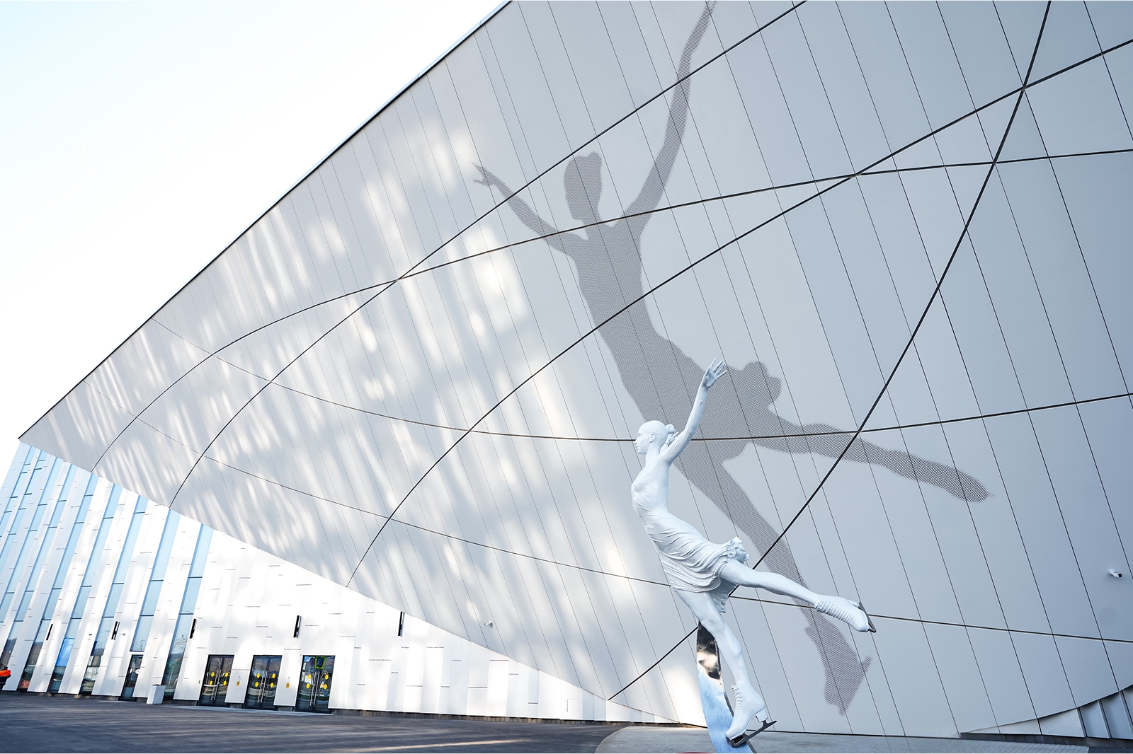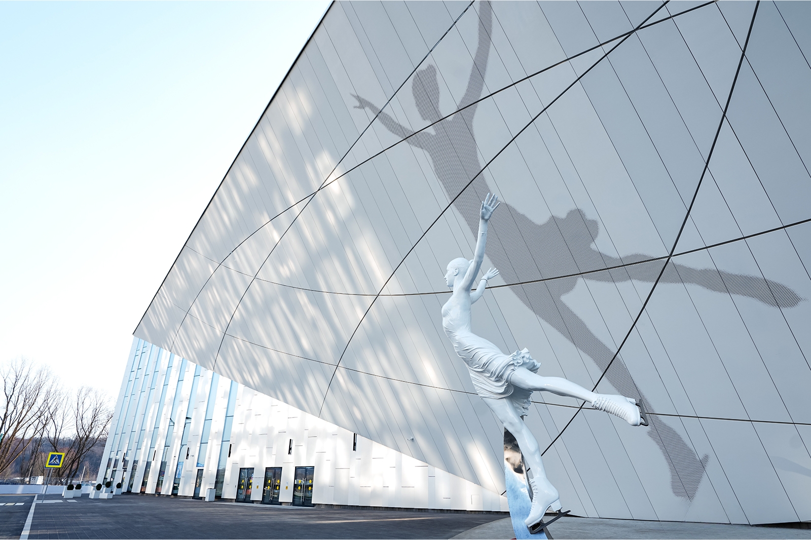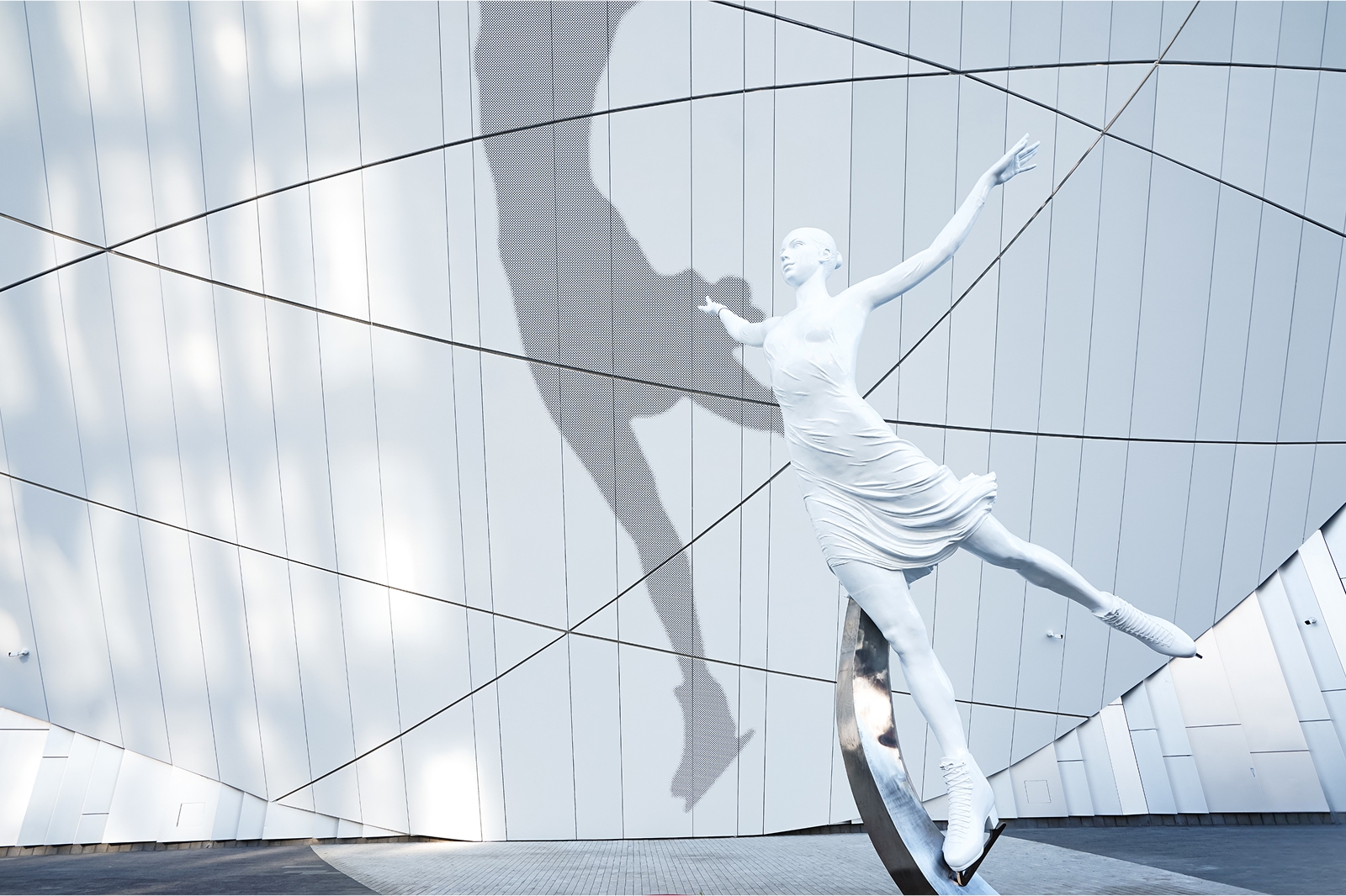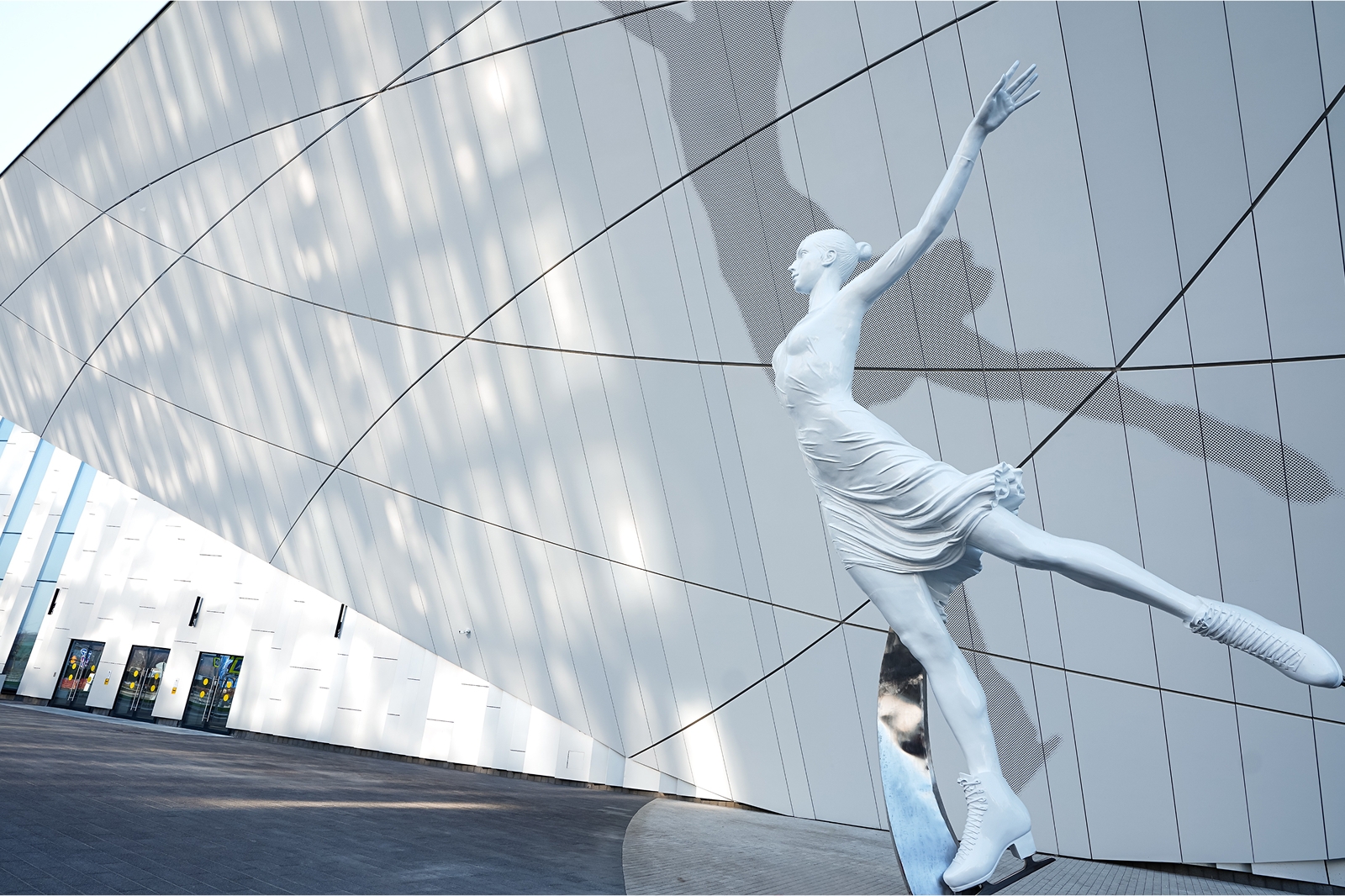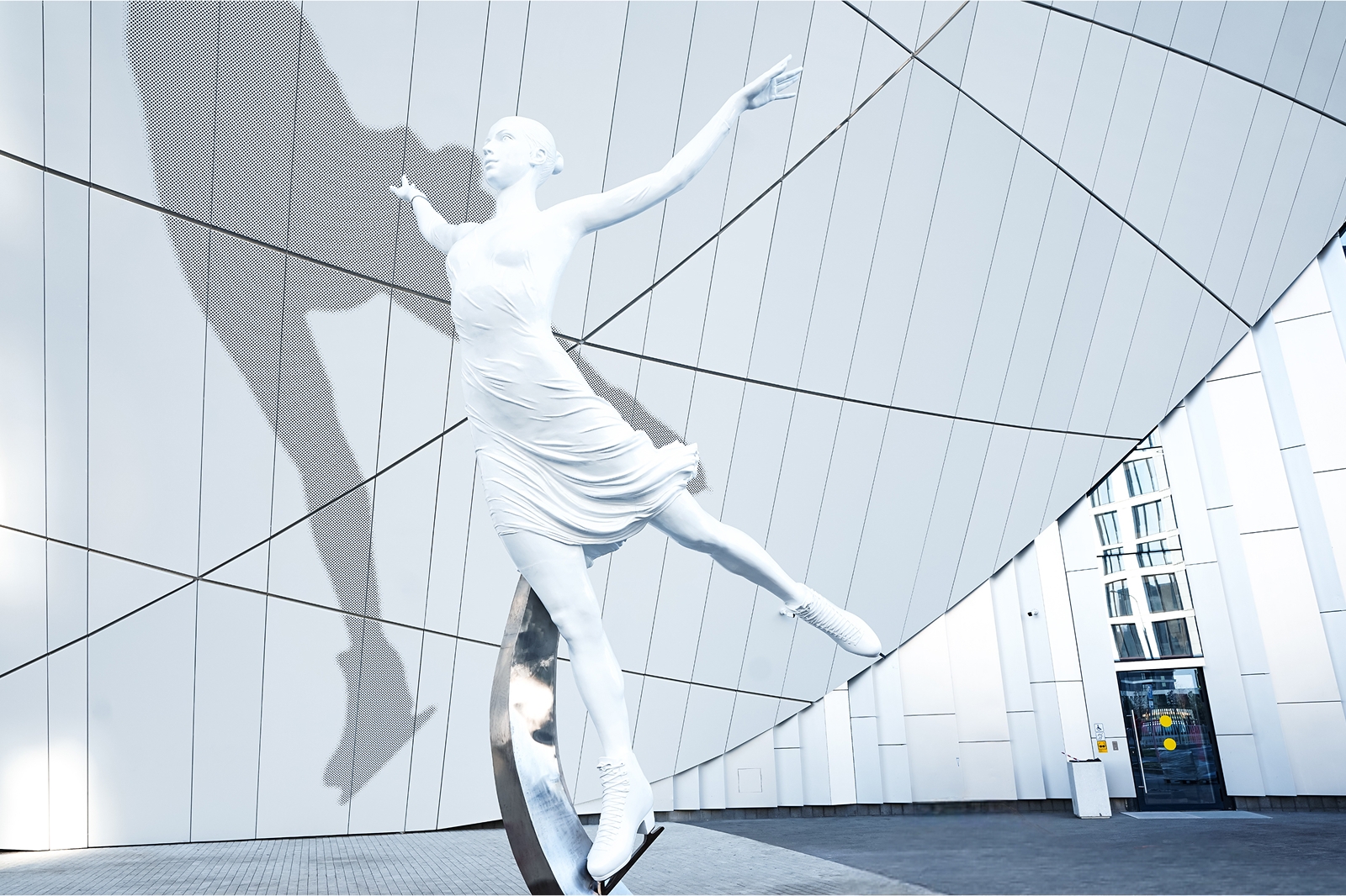 Статуя фигуристки на территории ледового дворца в Мнёвниковской пойме на ул. Нижние Мнёвники, д. 10а (СЗАО). Источник: пресс-служба Департамента гражданского строительства Москвы
