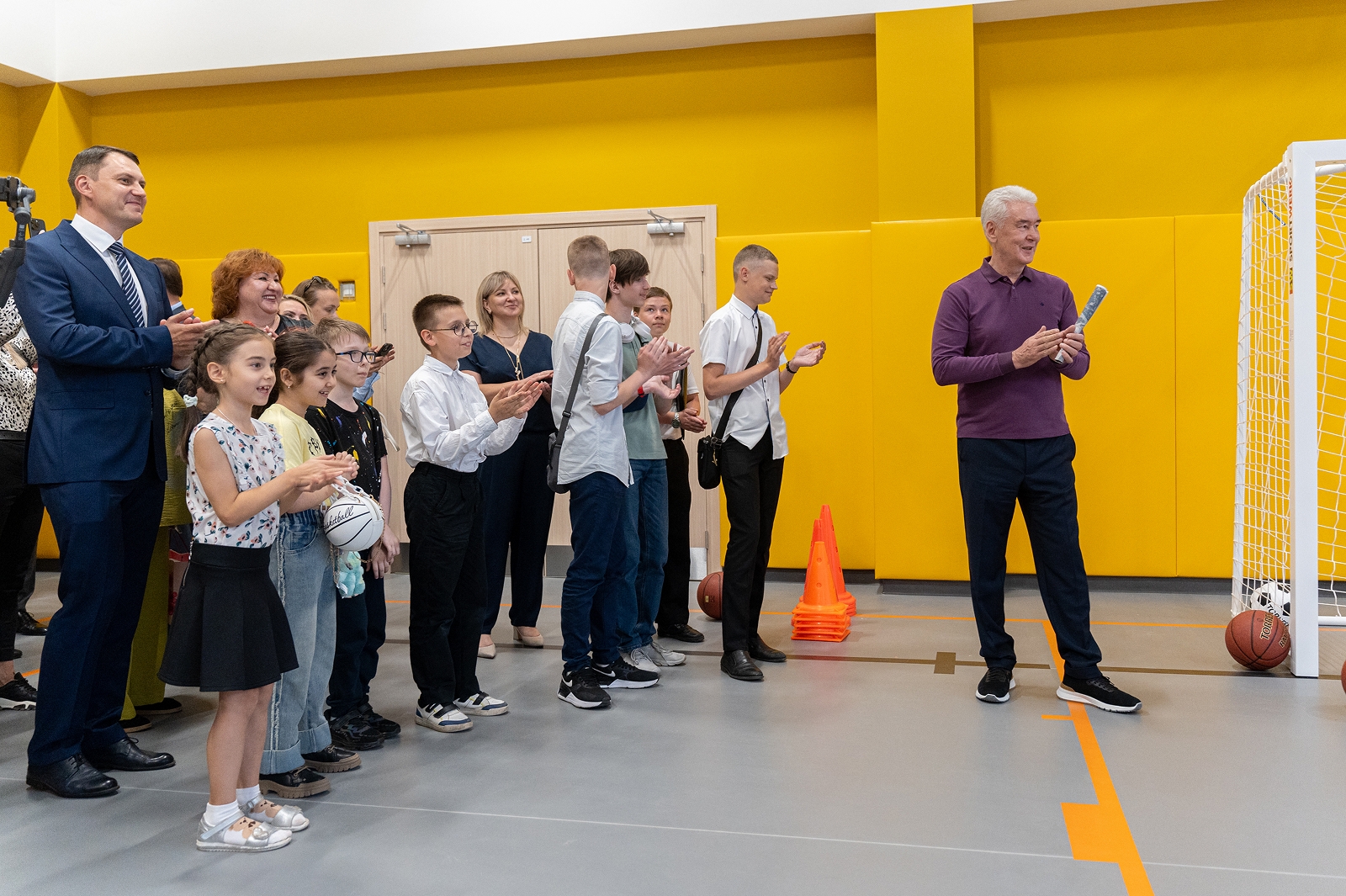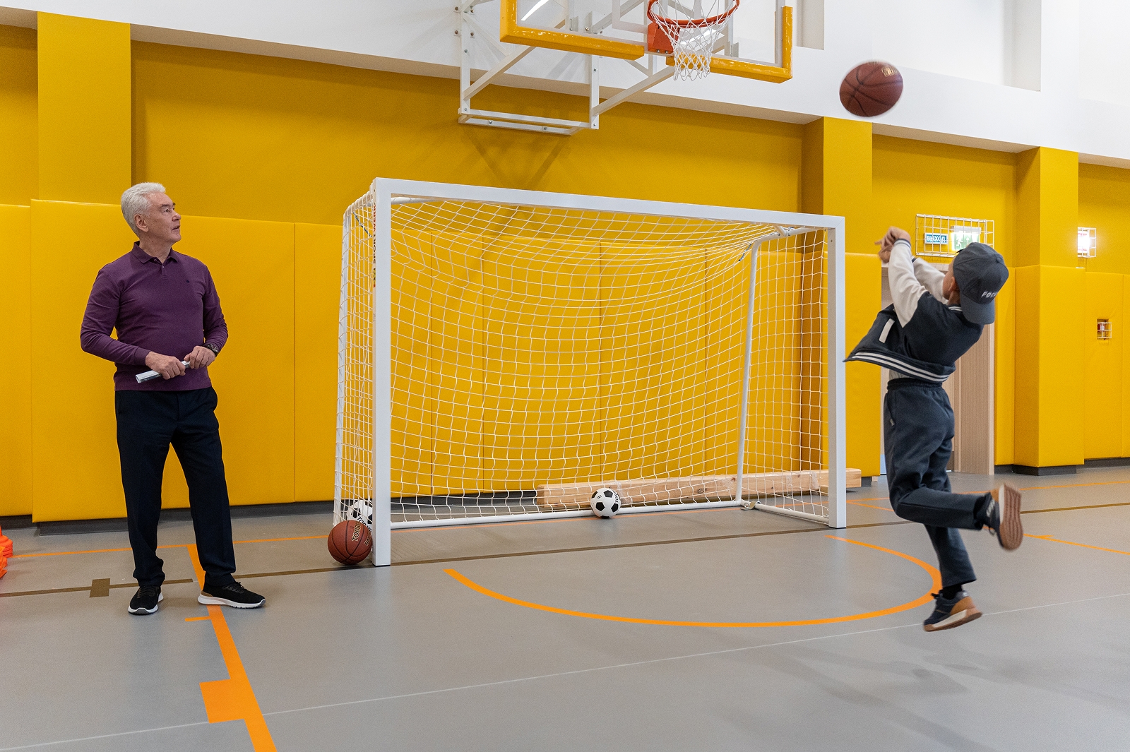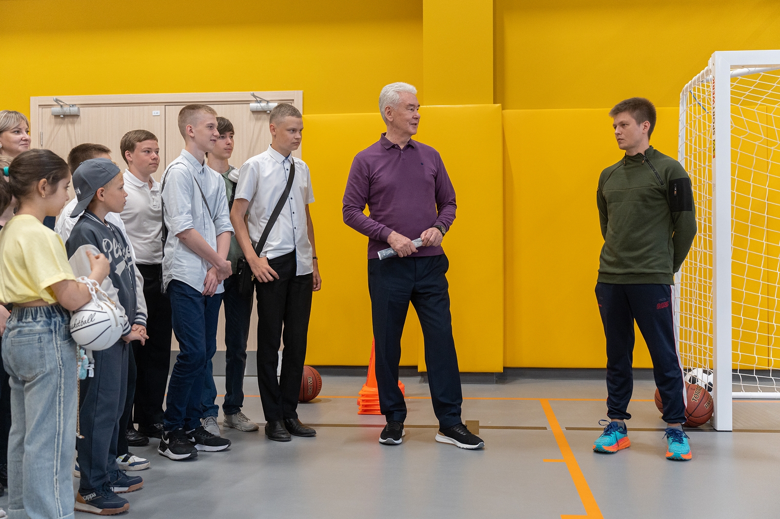 Осмотр нового здания школы на ул. Полярная, д. 27а в районе Южное Медведково (СВАО). С. Собянин. Источник: пресс-служба Градостроительного комплекса Москвы