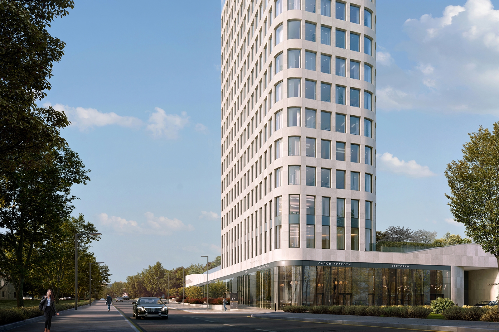 31 июл. 2025 г. Проект L-образной башни в составе офисного комплекса на Ходынском бульваре, з/у 20а, стр. 1 в районе Хорошёвский (САО). Источник: компания-девелопер STONE 3 фото