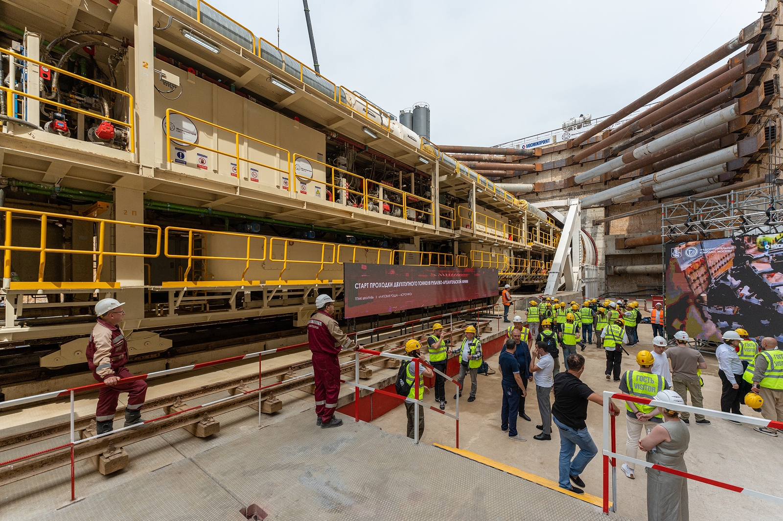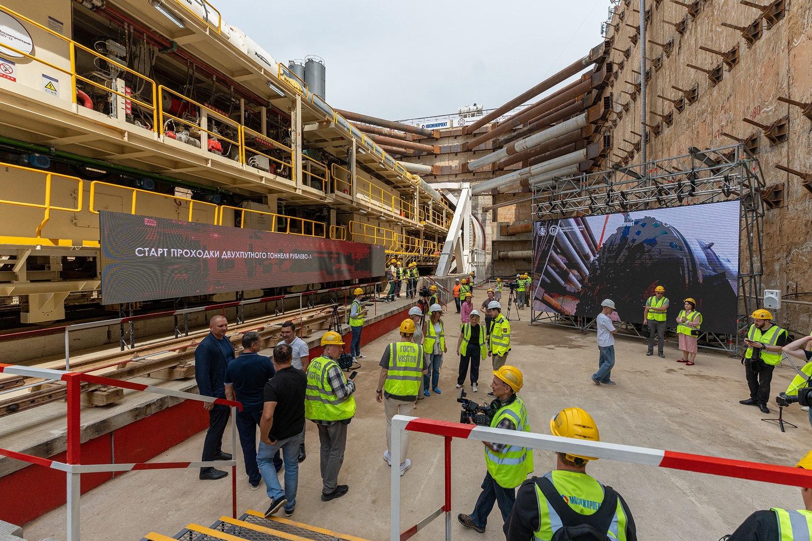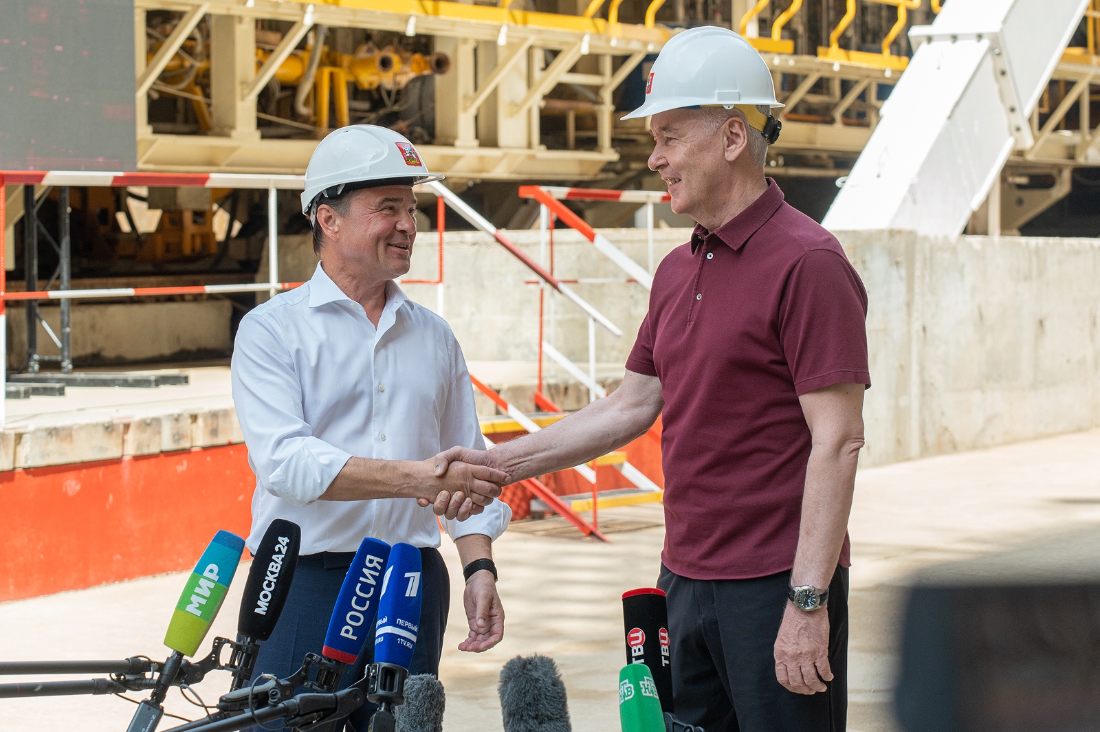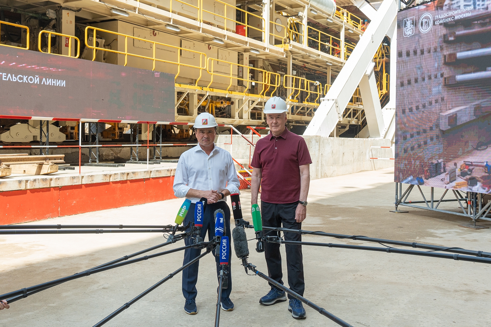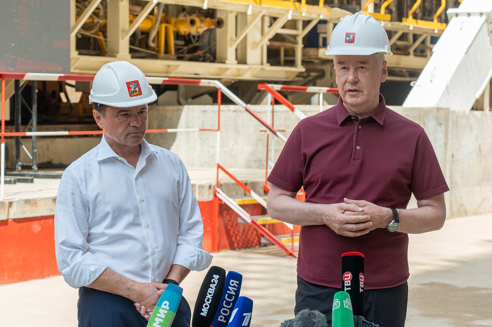 Старт проходки тоннеля Рублёво-Архангельской линии метро от «Липовой Рощи» до «Строгино». С. Собянин, А. Воробьёв. Источник: пресс-служба Градостроительного комплекса Москвы