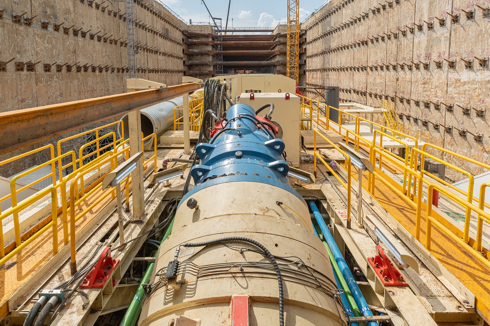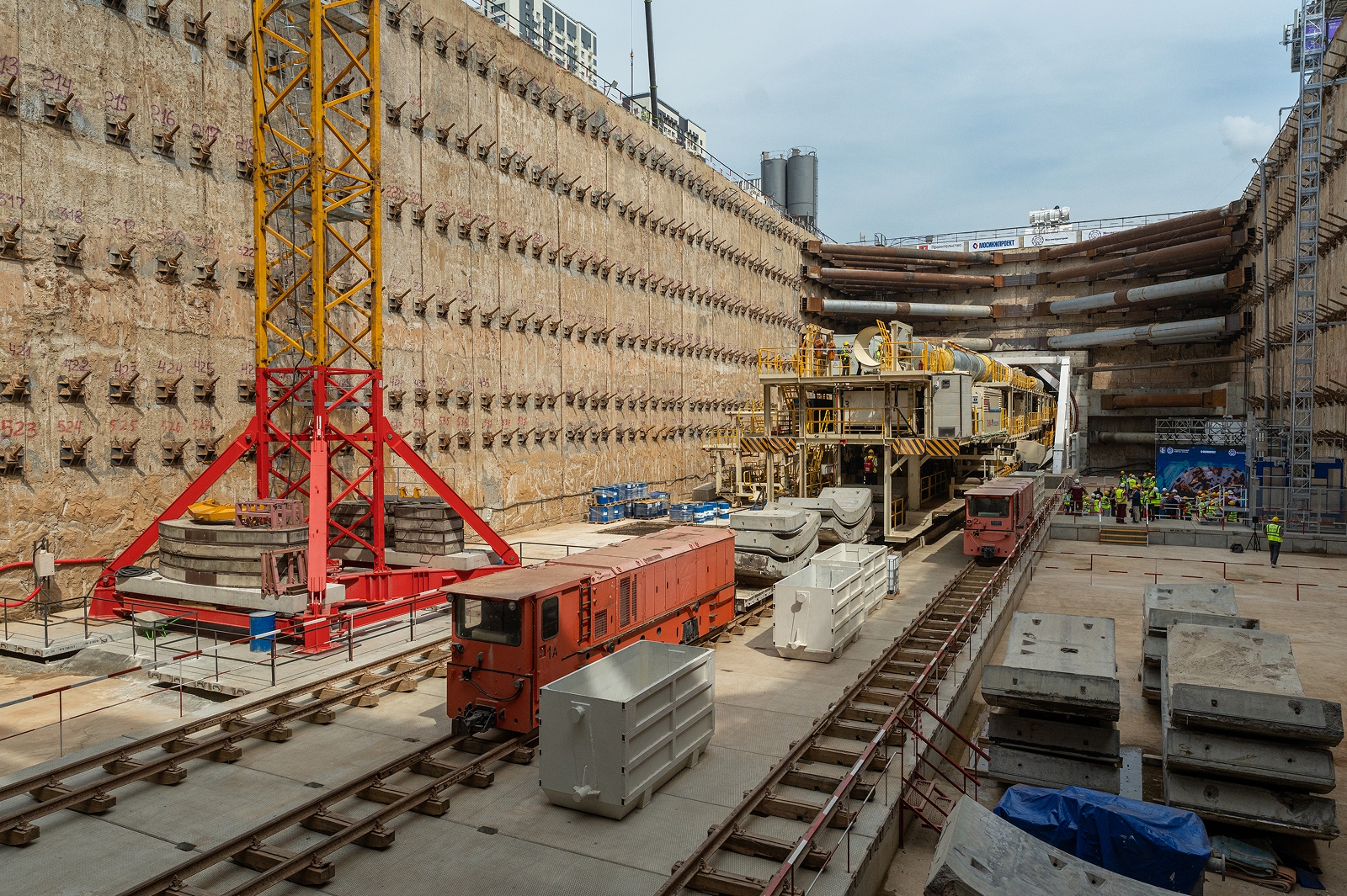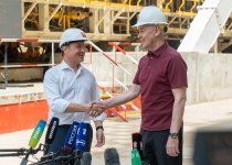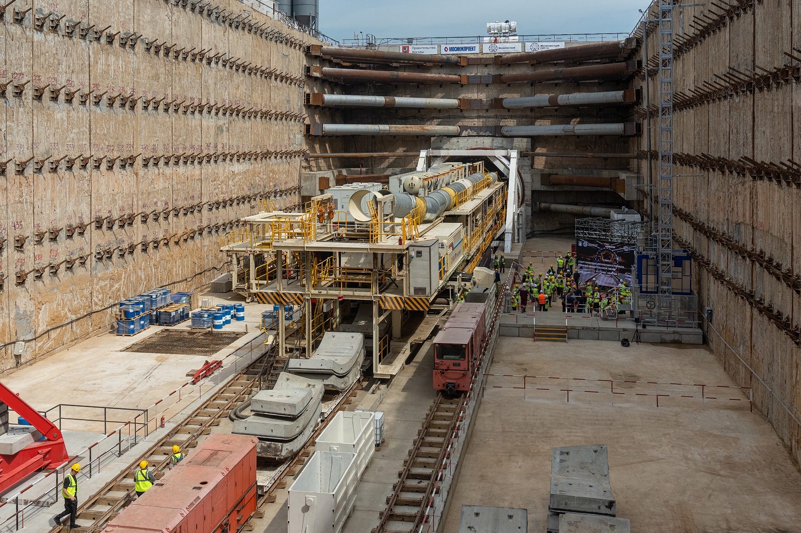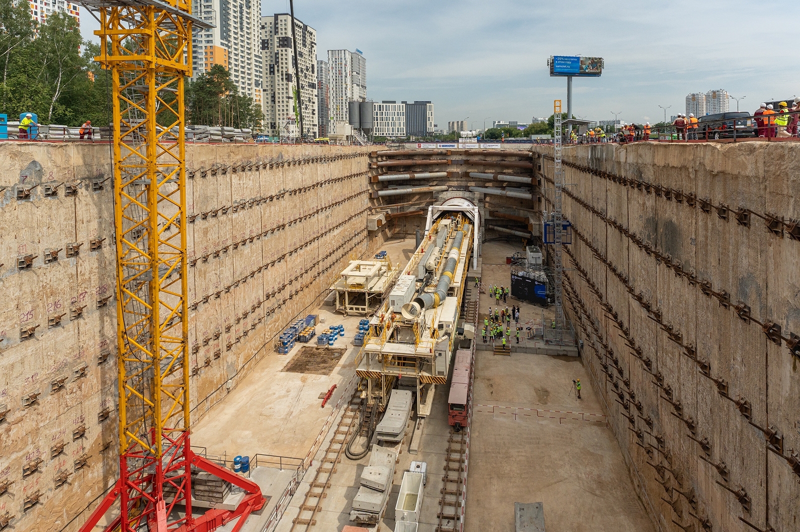 Старт проходки тоннеля Рублёво-Архангельской линии метро от «Липовой Рощи» до «Строгино». С. Собянин, А. Воробьёв. Источник: пресс-служба Градостроительного комплекса Москвы