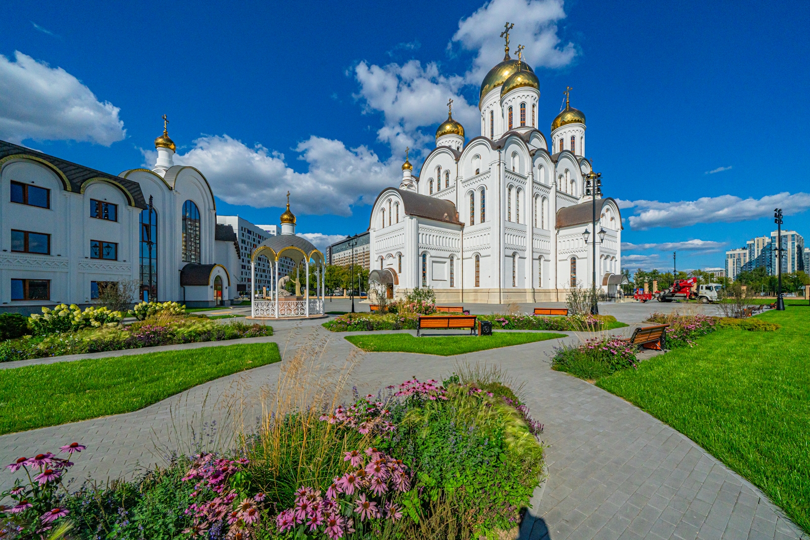 Храм Успения Пресвятой Богородицы на Берёзовой аллее в районе Останкинский (СВАО). Источник: АО «Мосинжпроект» Темы в материале: Градостроительная политика 1 сент. 2025 г. 13:38 Теги строительство храма храм Копировать ссылку Скрыть ссылку Другие материалы по теме 3 сент. 2025 г. Основной крест увенчал купол строящегося храма на Речном вокзале 1 сент. 2025 г. Сооружается наземная часть храма Архистратига Михаила и его чуда в Хонех в СВАО 1 сент. 2025 г. Завершено строительство храма Успения Пресвятой Богородицы на Берёзовой аллее 27 авг. 2025 г. Строительство храма Андрея Первозванного в районе Люблино планируется завершить в 2027 году 19 авг. 2025 г. Духовно-просветительский центр появится при новом храме на Берёзовой аллее 19 авг. 2025 г. Проект духовно-просветительского центра социальной помощи семье и детям при храме на Берёзовой аллее в районе Останкинский (СВАО). Источник: пресс-служба Москомархитектуры 4 фото Храм Успения Пресвятой Богородицы в Останкино Храмовый комплекс Успения Пресвятой Богородицы в Матвеевском. Храм