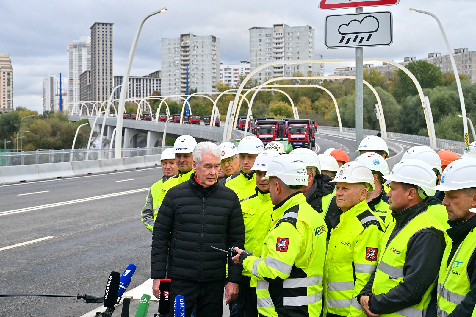 Открытие участка продления ул. Мосфильмовская от Раменского бульвара до ул. Гайдая и Алексея Баталова в Раменках (ЗАО). С. Собянин. Источник: пресс-служба Градостроительного комплекса Москвы