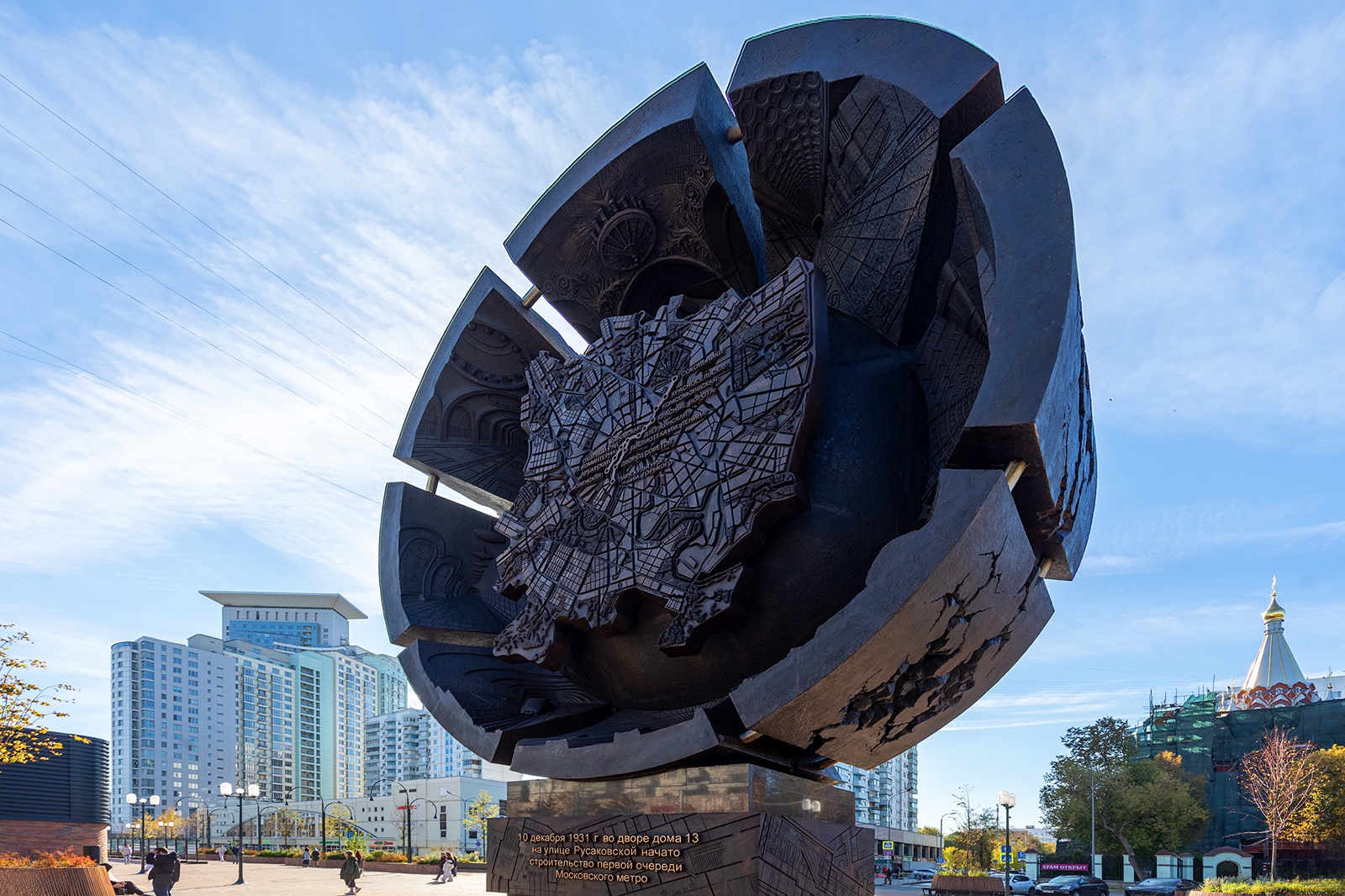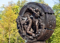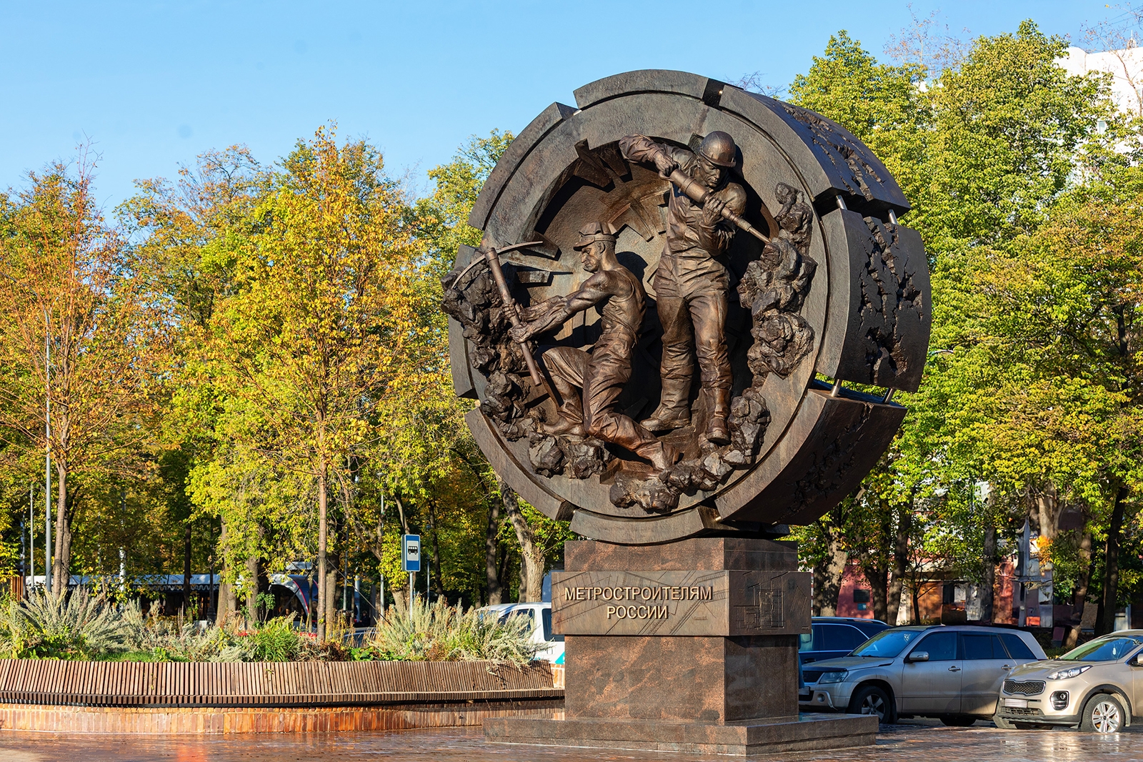 Монумент «Метростроителям России» в сквере Московского Метро на Сокольнической площади (ВАО). Источник: АО «Мосметрострой»