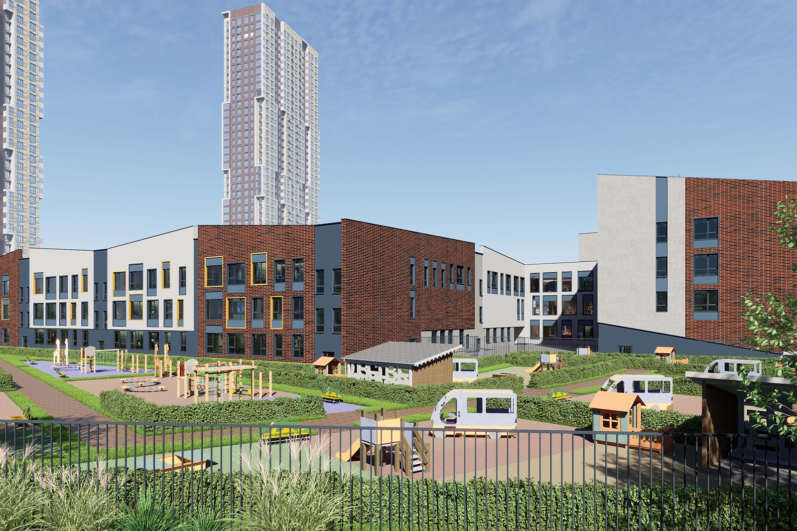 Проект образовательного комплекса на 2050 мест на ул. Лобачевского в Раменках (ЗАО). Источник: пресс-служба Москомархитектуры
