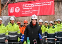Старт проходки двухпутного тоннеля между станциями «Серебряный Бор» и «Строгино» Рублево-Архангельской линии метро. С. Собянин. Источник: пресс-служба Градостроительного комплекса Москвы, пресс-служба Мэра и Правительства Москвы