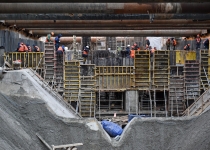 Осмотр хода строительства станции метро "Петровско-Разумовская" Люблинско-Дмитровской линии. С. Собянин, М. Хуснуллин, А. Бочкарев
