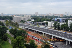 Открытие эстакады на Ярославском шоссе в районе улицы Вешних Вод. С. Собянин, М. Хуснуллин, А. Бочкарев