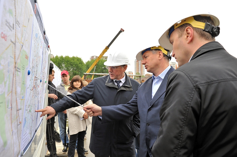 11 мая 2012 г. Осмотр реконструкции транспортной развязки на пересечении Ленинградского шоссе с МКАД. С. Собянин, М. Хуснуллин, А. Бочкарев 18 фото