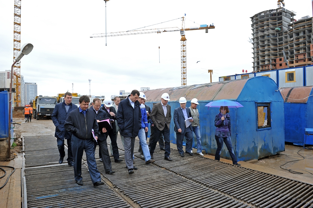 13 июн. 2012 г. Осмотр хода строительства станции "Новокосино" Калининской линии метрополитена. С. Собянин, М. Хуснуллин, А. Бочкарев 20 фото