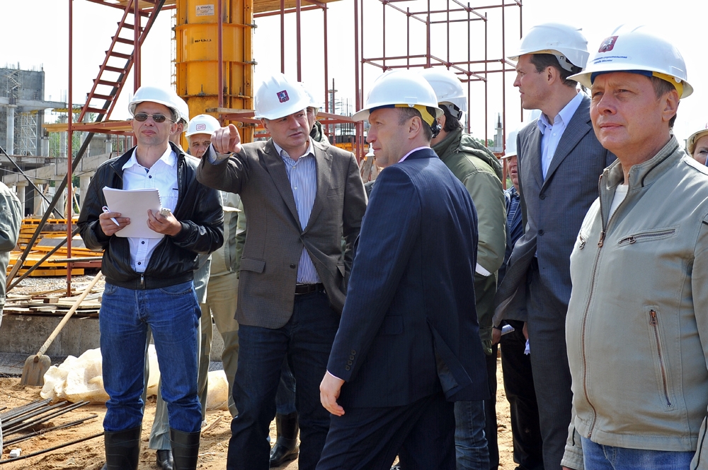 4 июн. 2012 г. Осмотр хода строительства станции "Пятницкое шоссе" Арбатско-Покровской линии метрополитена. С. Собянин, М. Хуснуллин, А. Бочкарев 23 фото